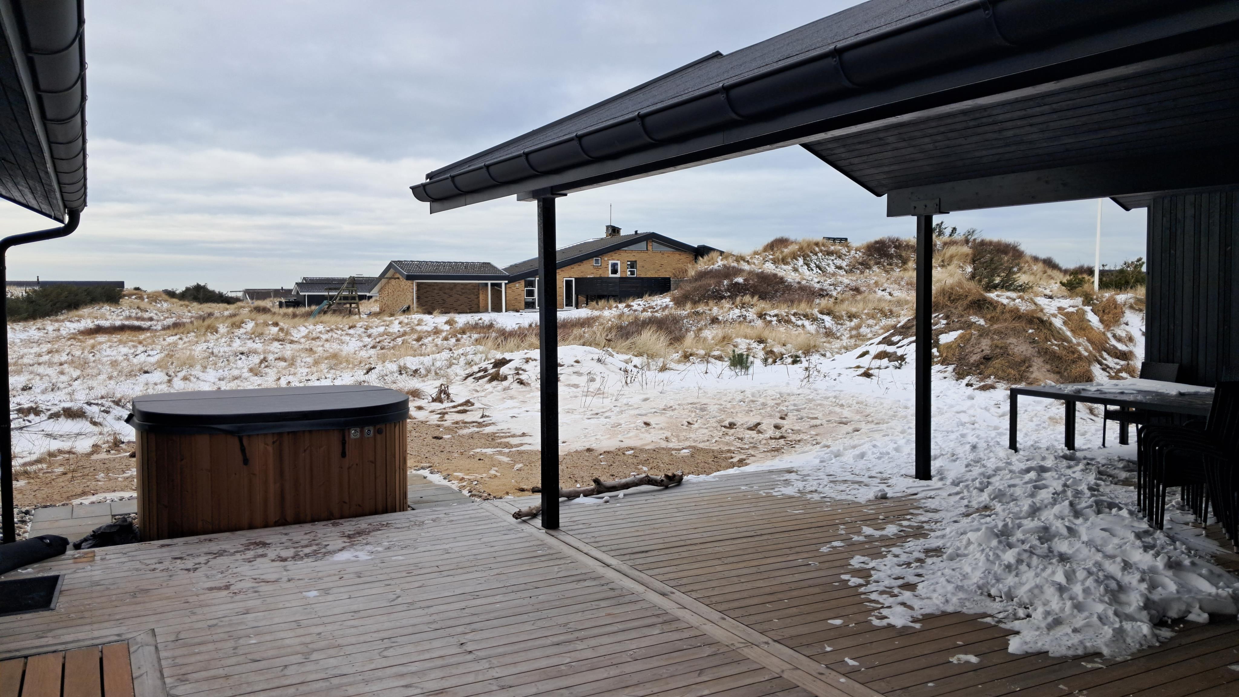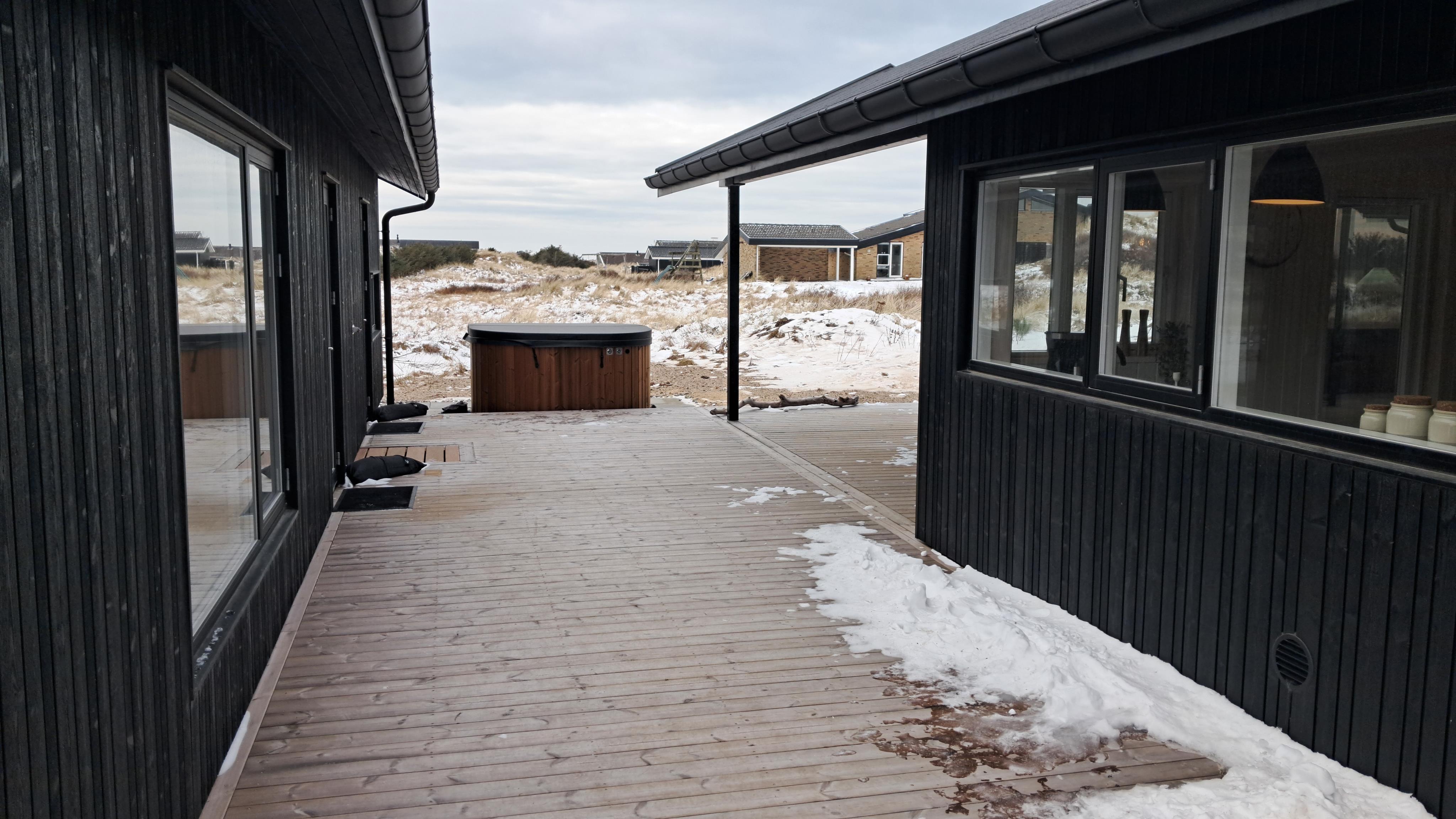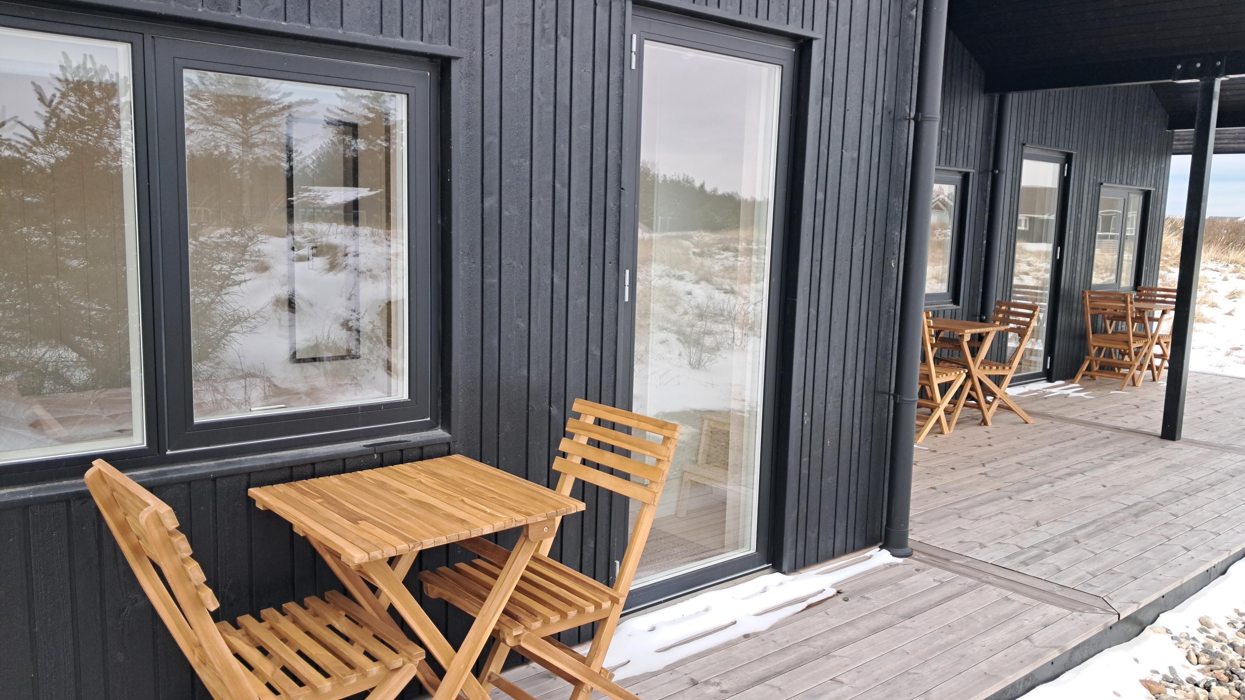 Sommerhuset er omgivet af store terrasser, hvor du kan finde både sol og læ afhængigt af tidspunkt på dagen. Her er god plads til udeliv, grill og afslapning i den friske luft. Den korte afstand på kun 375 meter til stranden gør det nemt at tage en tur til vandet flere gange om dagen.