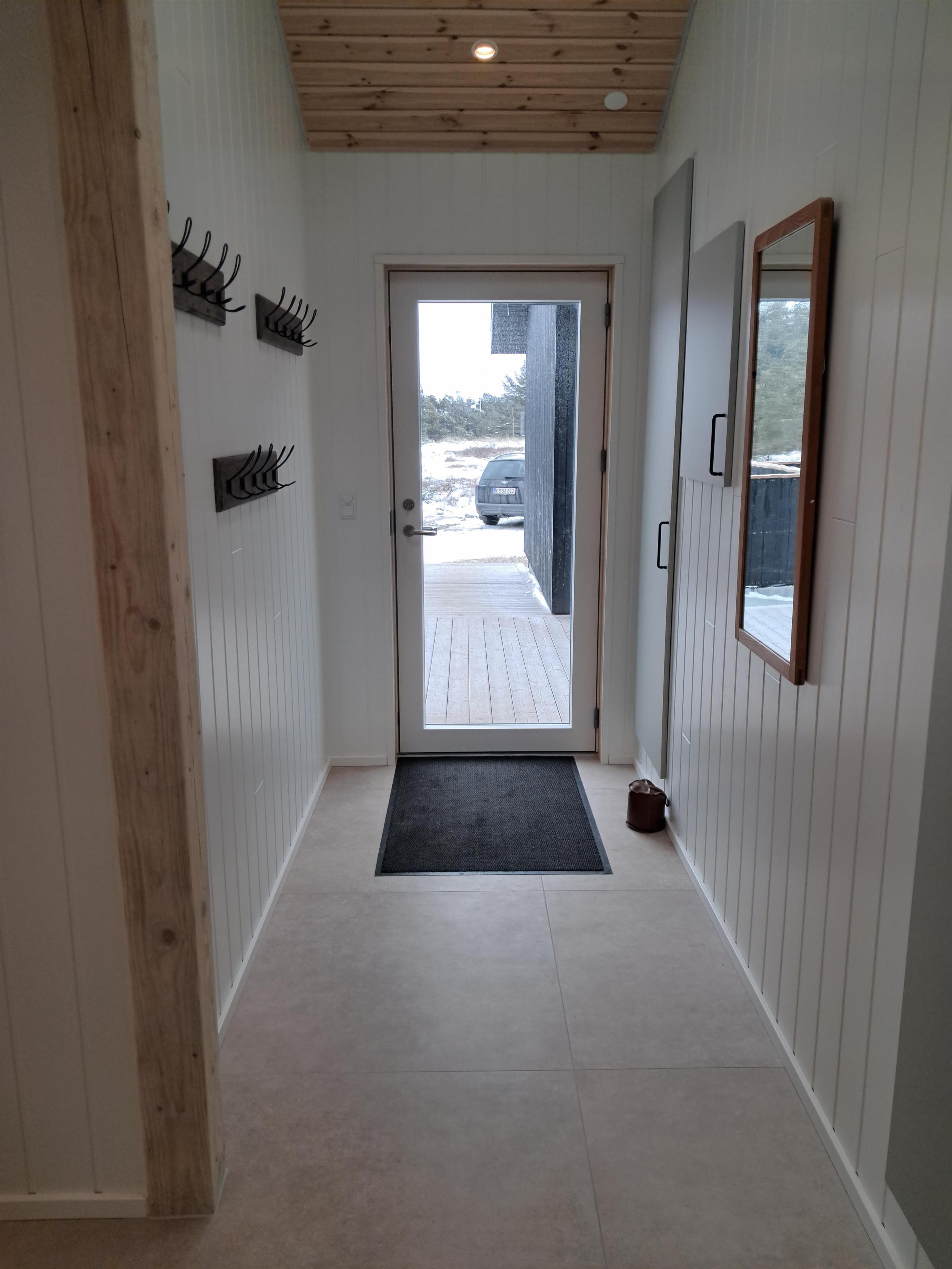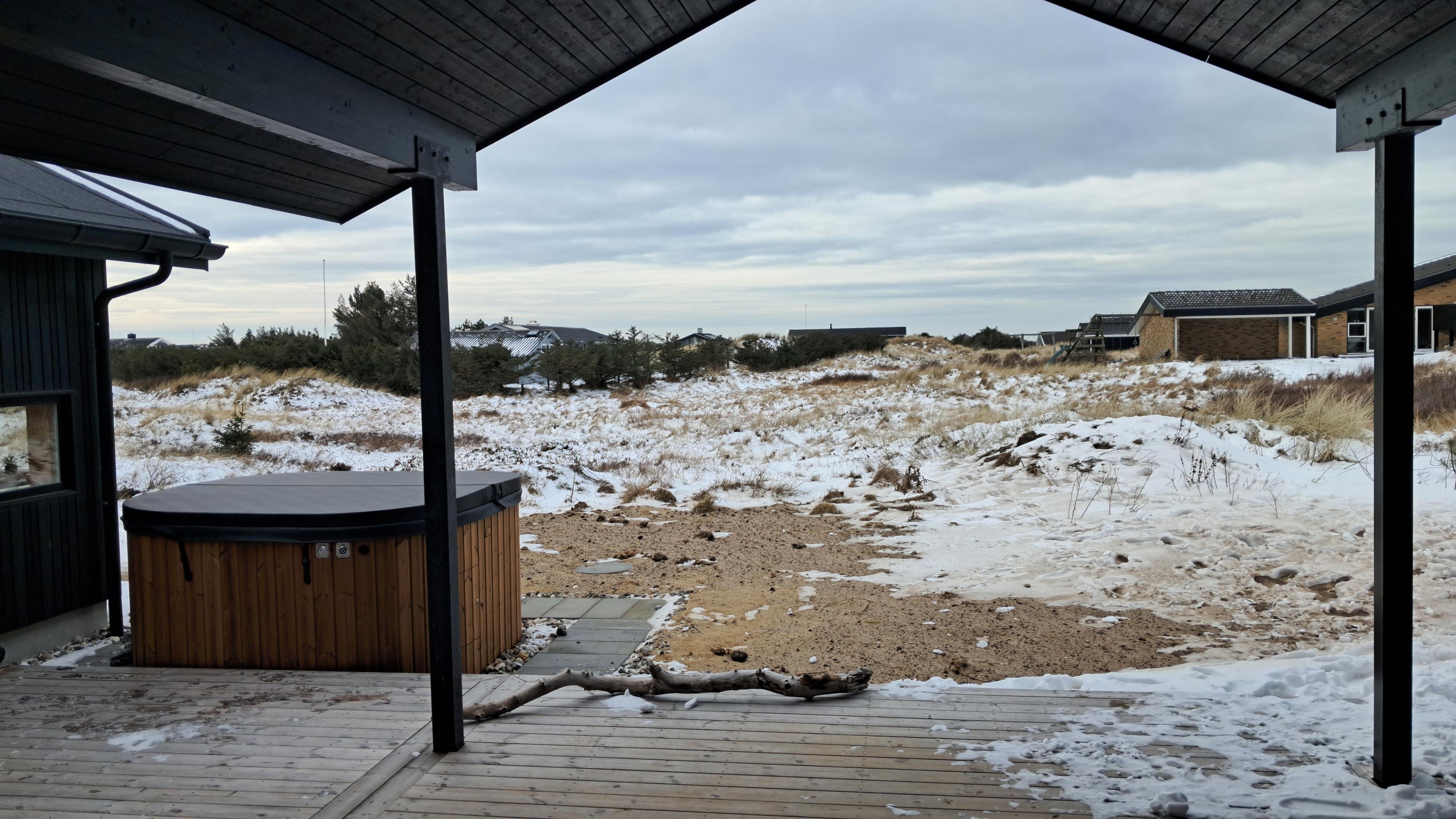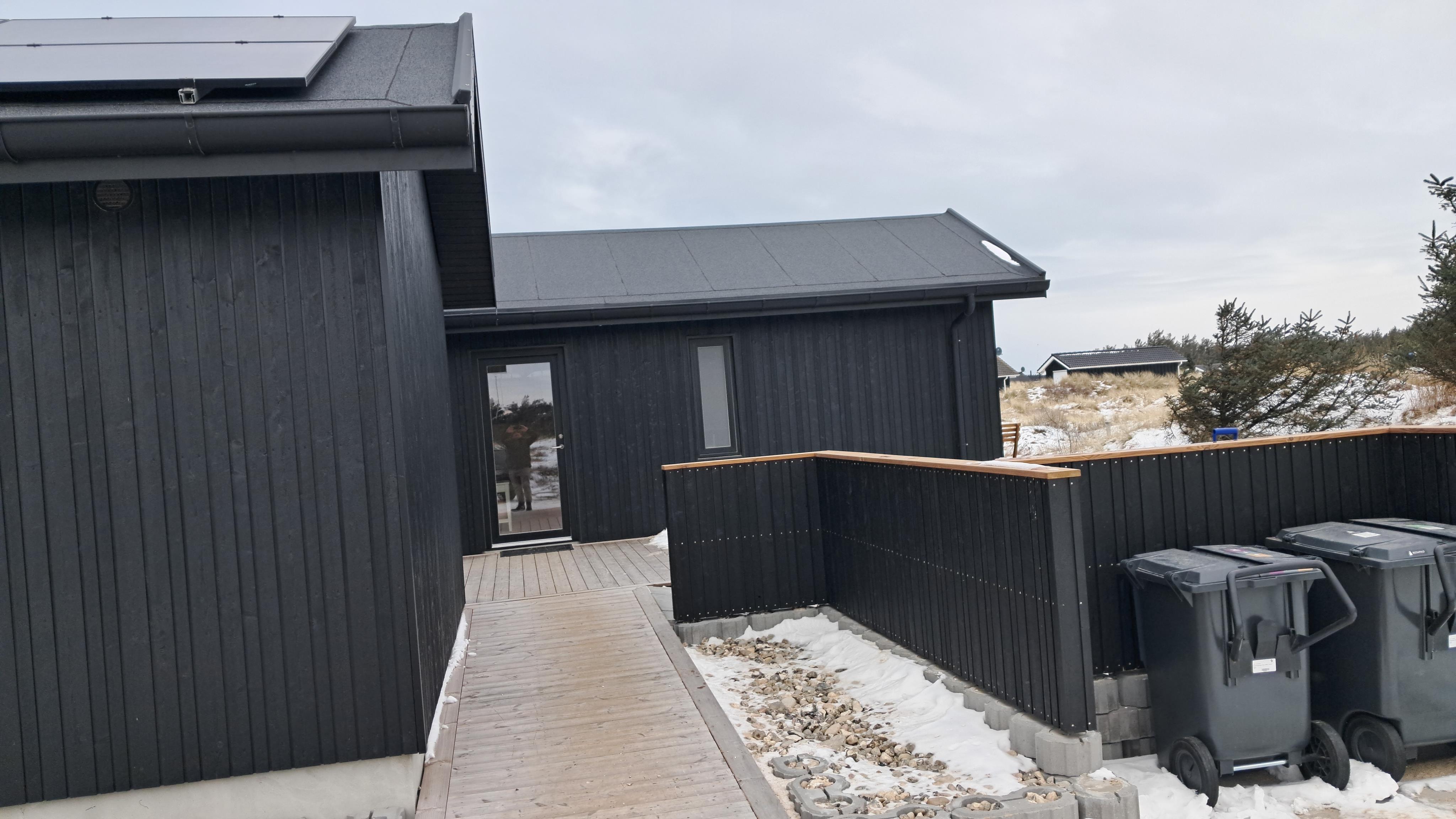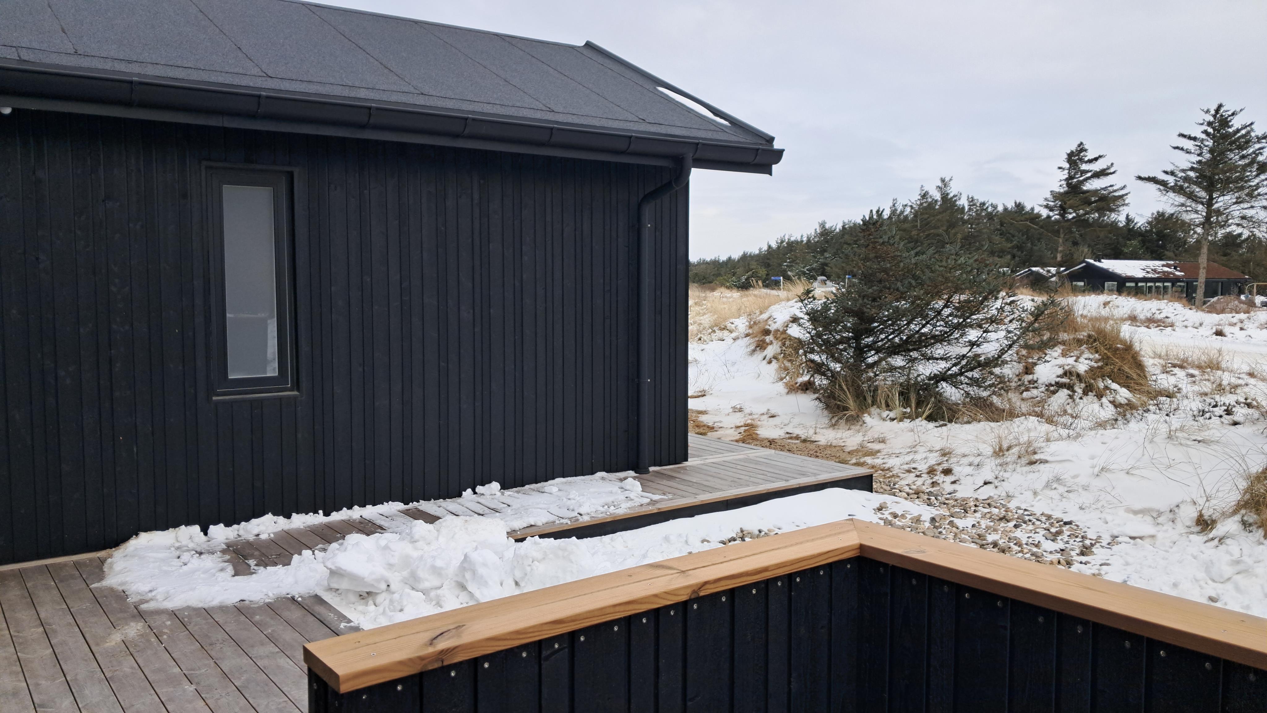 Sommerhuset er omgivet af store terrasser, hvor du kan finde både sol og læ afhængigt af tidspunkt på dagen. Her er god plads til udeliv, grill og afslapning i den friske luft. Den korte afstand på kun 375 meter til stranden gør det nemt at tage en tur til vandet flere gange om dagen.