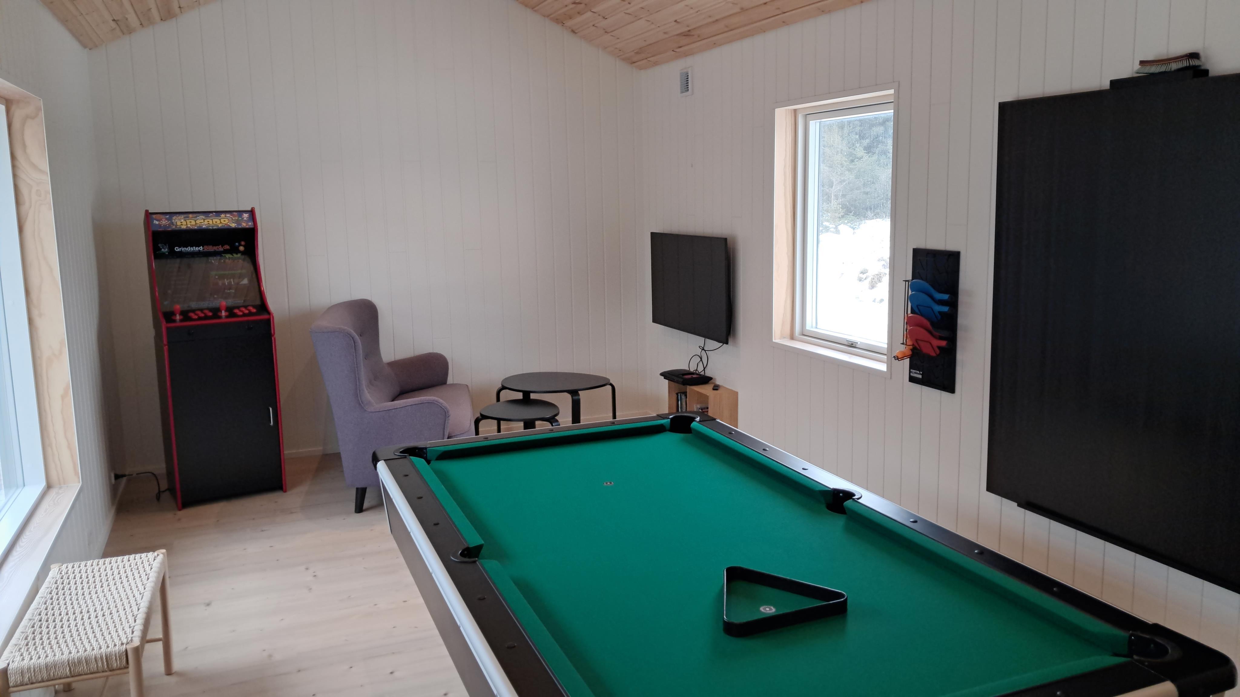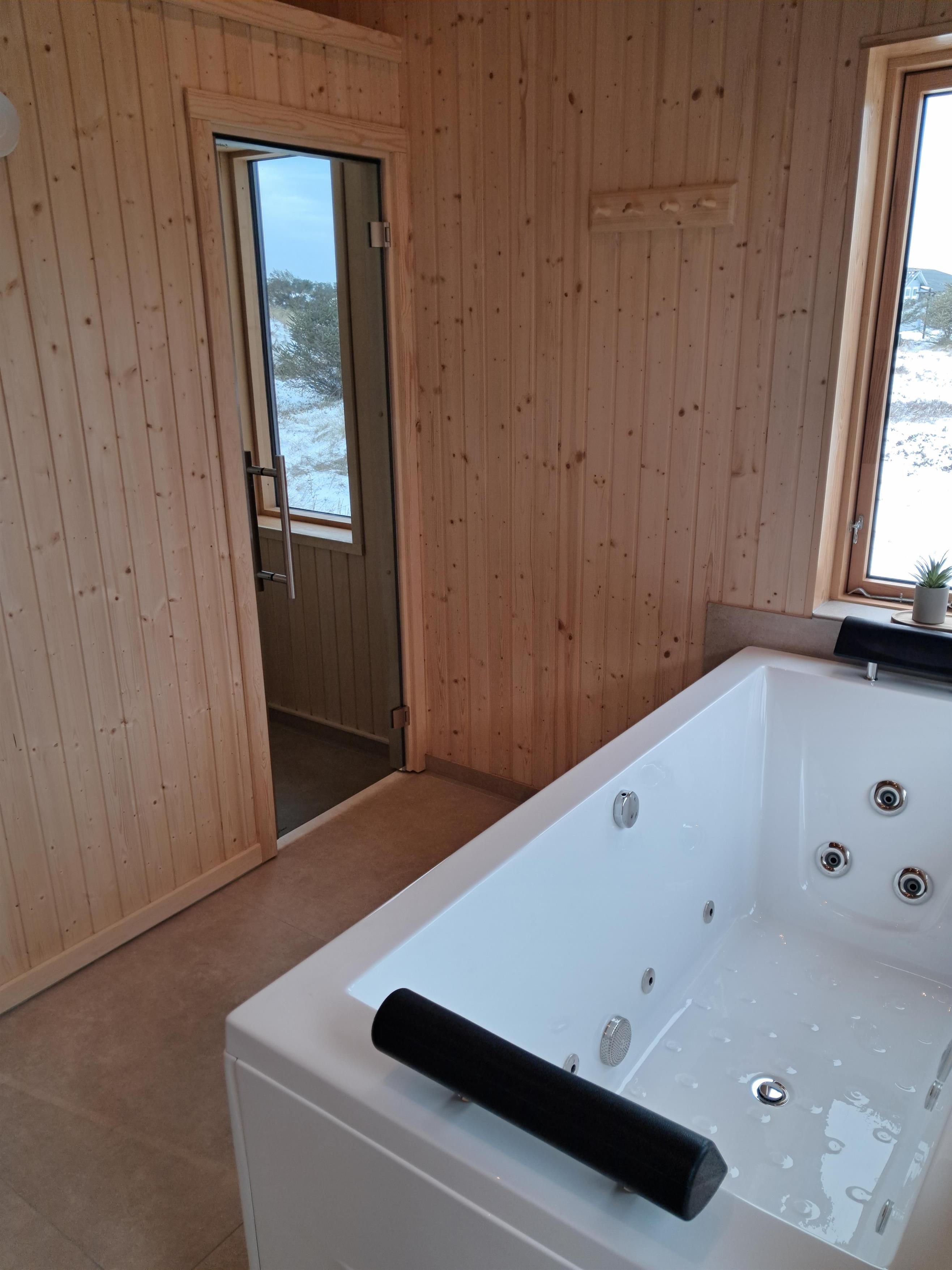 Der er tre badeværelser, hvilket gør det velegnet til større familier eller flere generationer på ferie sammen. Efter en dag ved stranden kan du slappe af i saunaen eller nyde inde-eller udespaen. Til de aktive dage og hyggelige aftener findes der i annekset både poolbord, bordtennis og en spillemaskine, så der er underholdning uanset vejret.