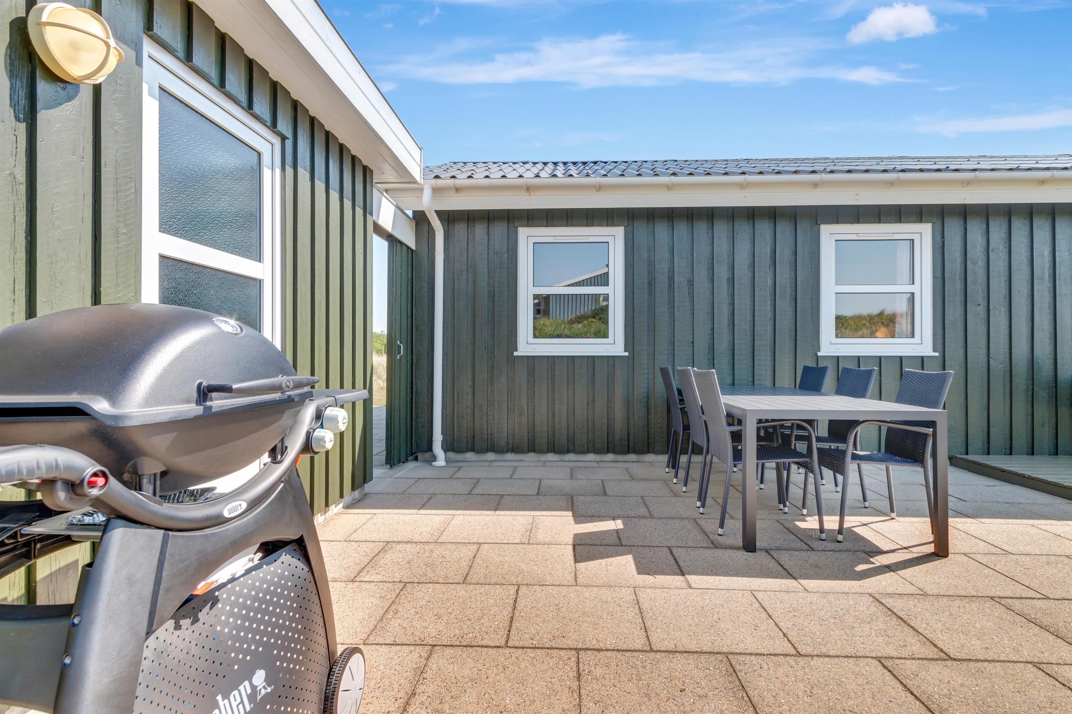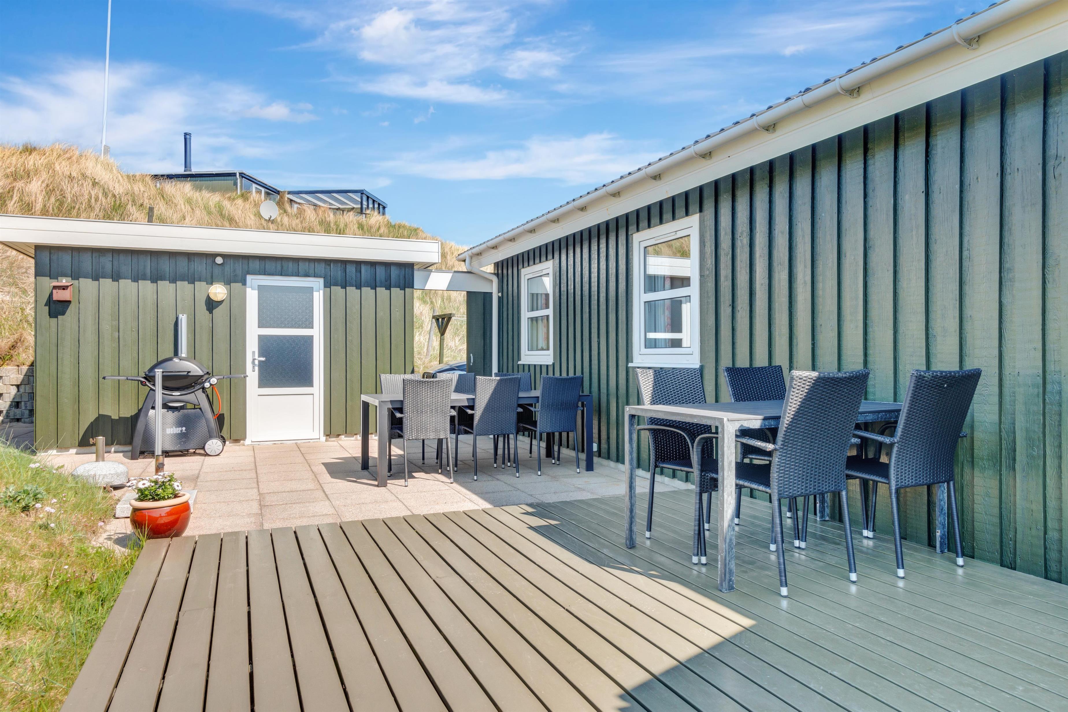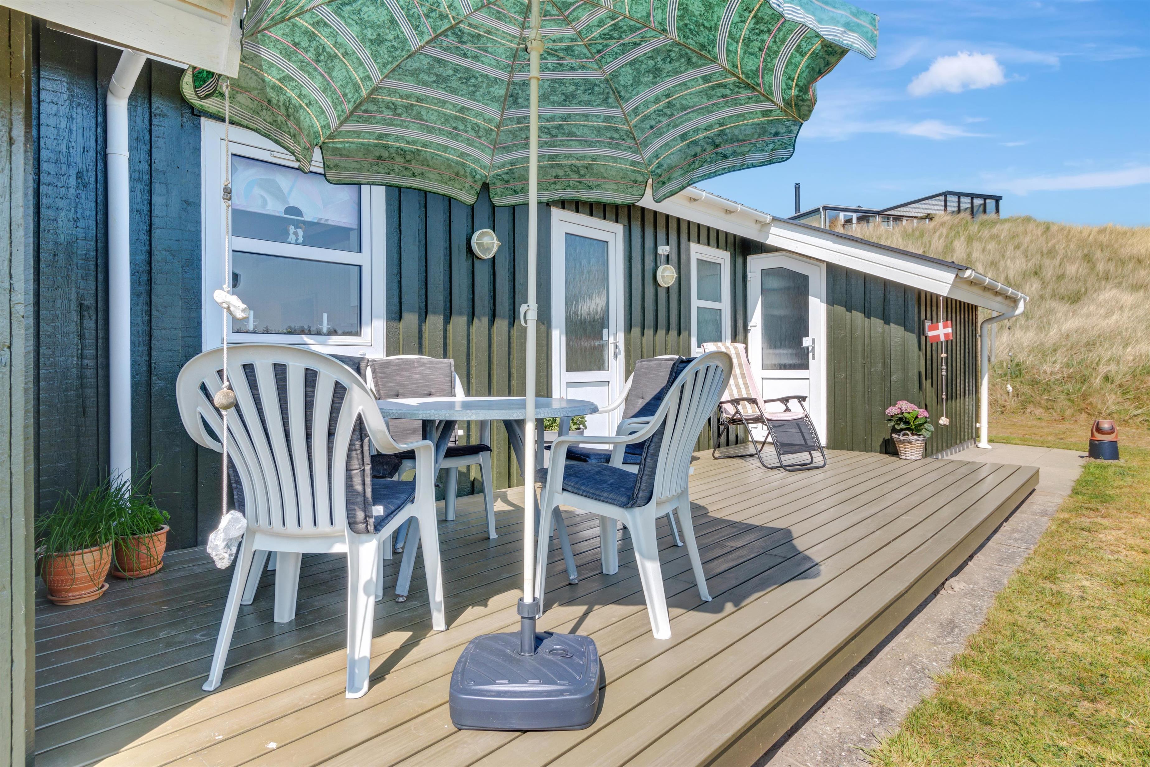 Fra køkken og stue er der udgang til en dejlig stor terrasse samt plæne, hvor man kan nyde det danske sommervejr fuldt ud. Husets beliggenhed tæt på Løkken centrum og Vesterhavet gør, at man er dejlig tæt på alting, og alligevel i god afstand fra trafik og larm fra byens liv. Der er naturligvis havemøbler og grill til rådighed. Og selve Løkken by er stedet, hvor der er masser af plads, uanset om man ønsker outdoor aktiviteter, wellness og forkælelse eller ro og fordybelse.