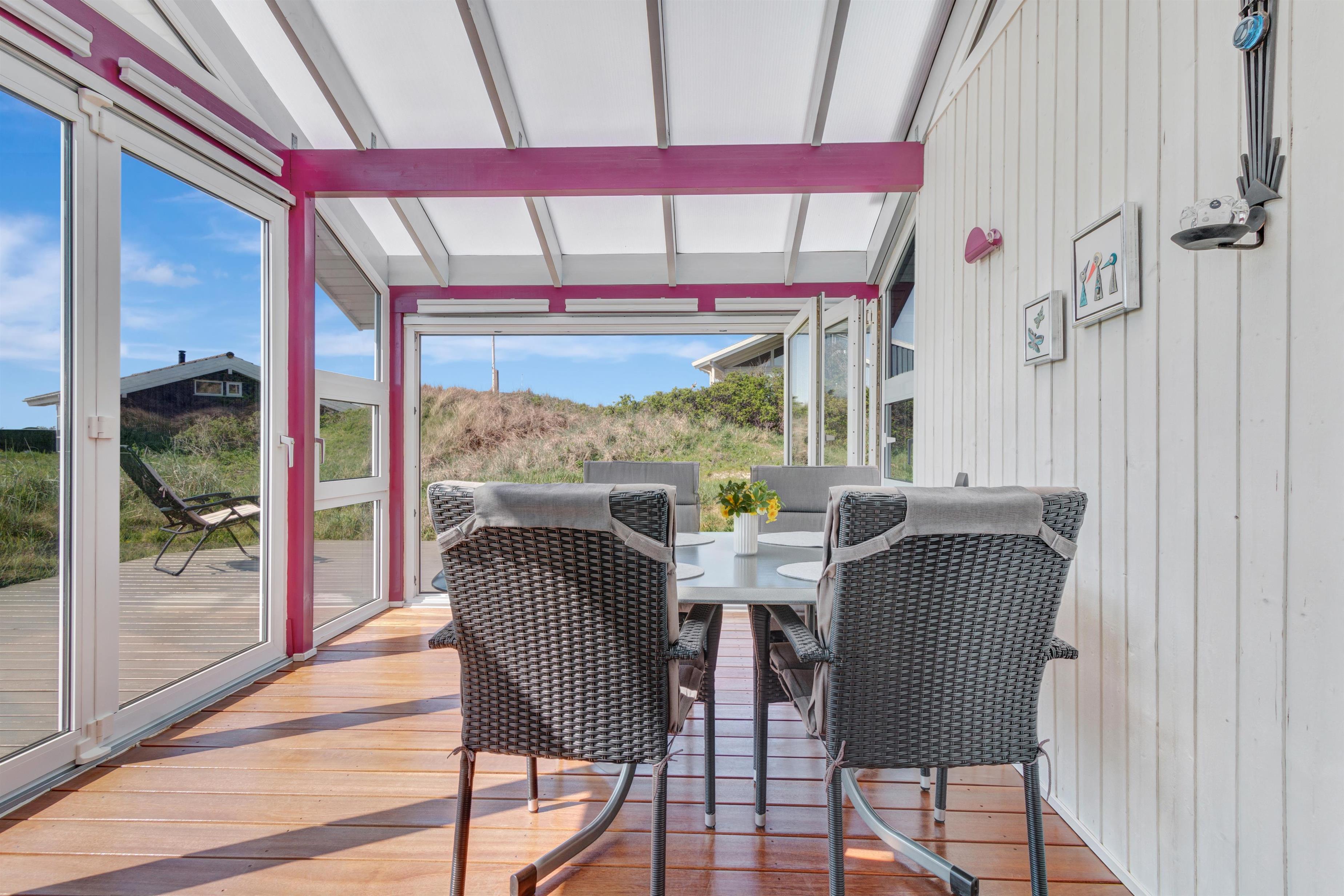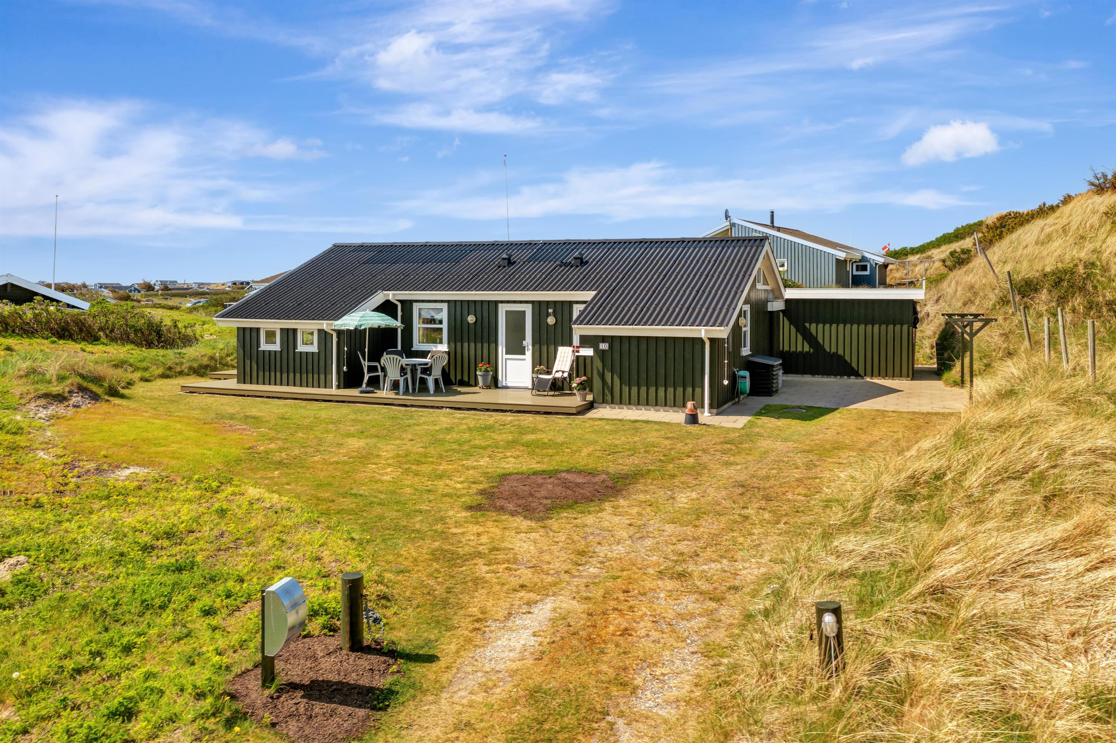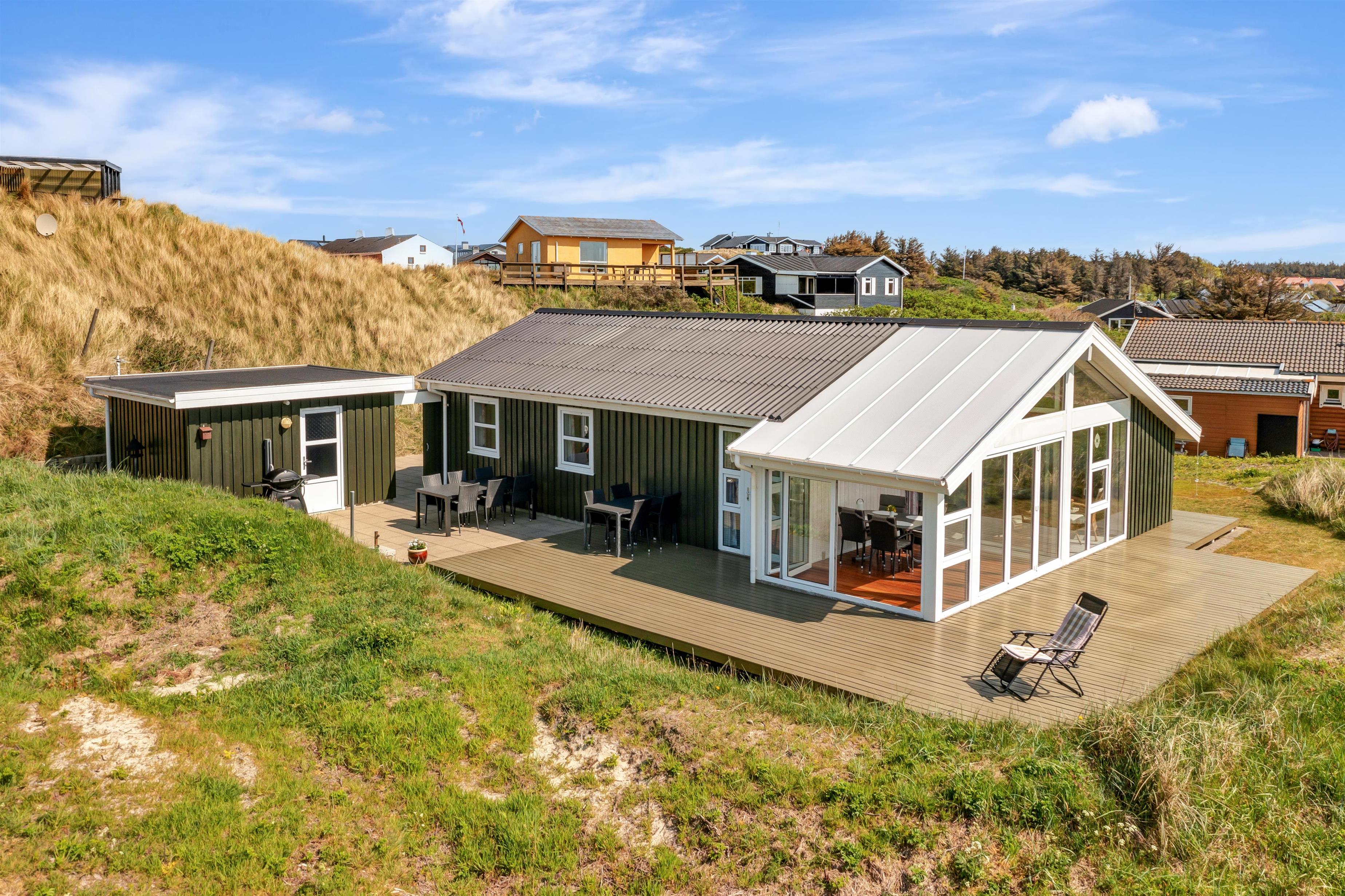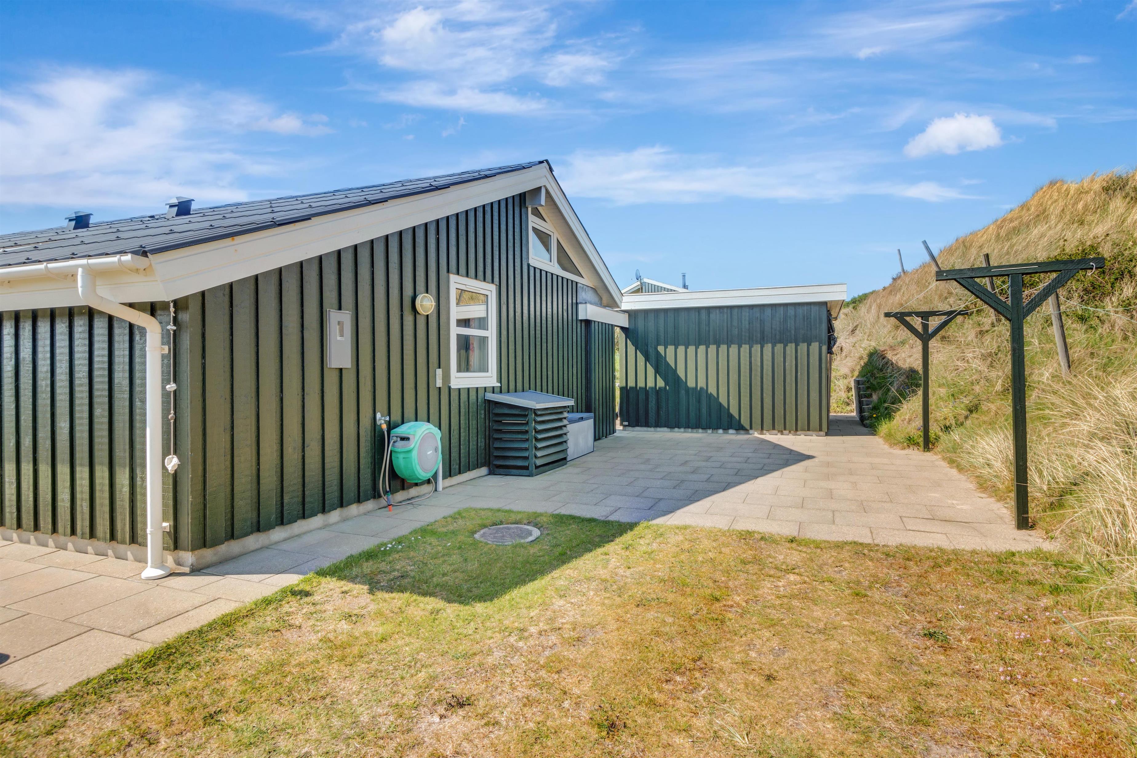 Fra køkken og stue er der udgang til en dejlig stor terrasse samt plæne, hvor man kan nyde det danske sommervejr fuldt ud. Husets beliggenhed tæt på Løkken centrum og Vesterhavet gør, at man er dejlig tæt på alting, og alligevel i god afstand fra trafik og larm fra byens liv. Der er naturligvis havemøbler og grill til rådighed. Og selve Løkken by er stedet, hvor der er masser af plads, uanset om man ønsker outdoor aktiviteter, wellness og forkælelse eller ro og fordybelse.