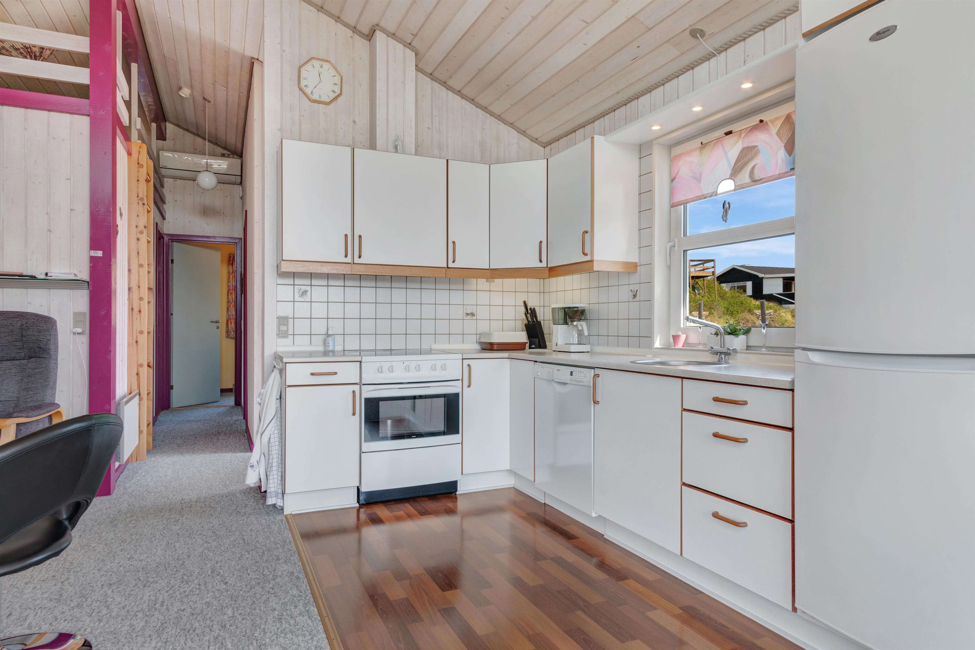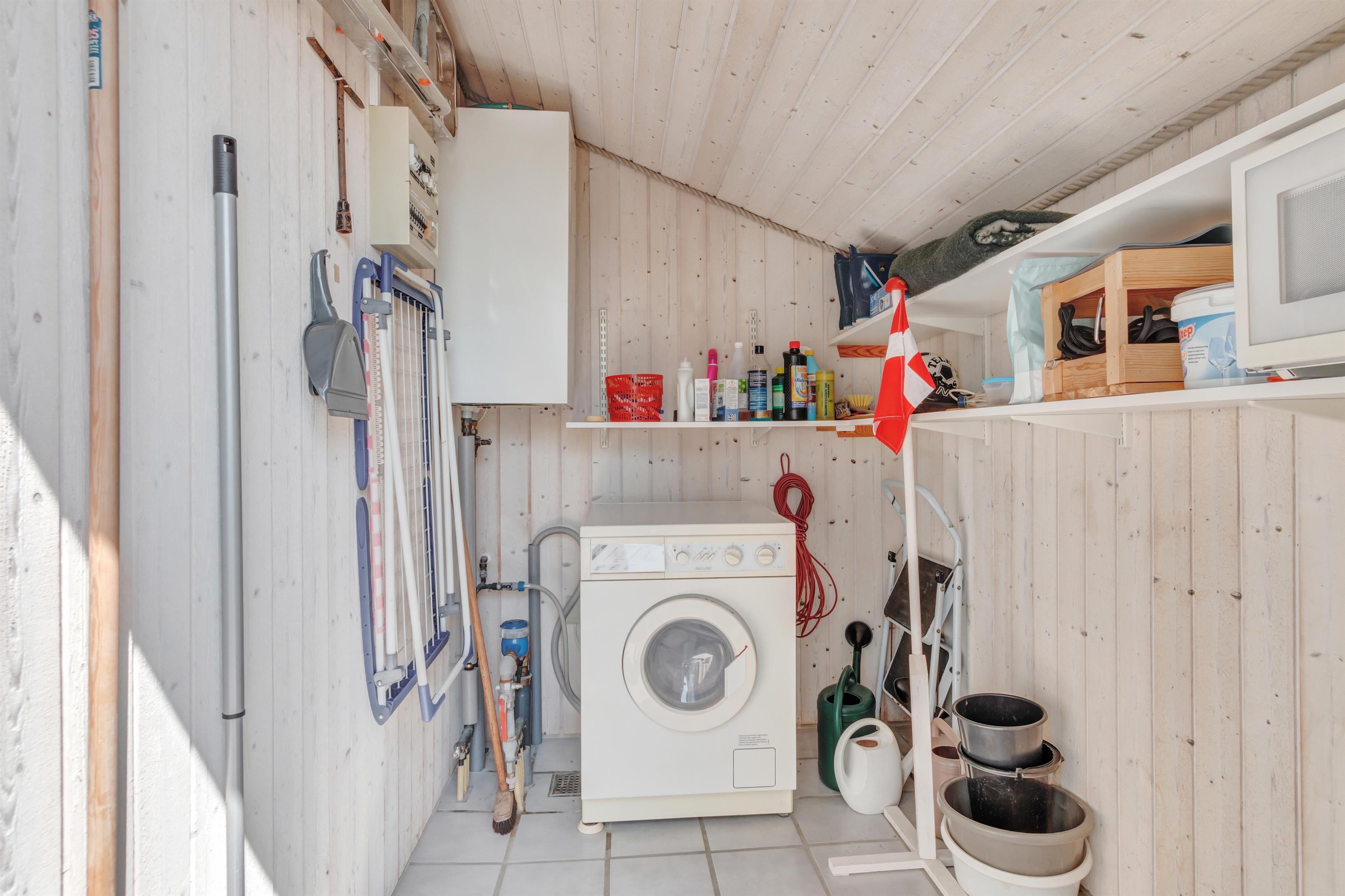 Huset er indrettet med fokus på hygge og behagelighed. Hyggeligt, lyst køkken med opvaskemaskine. Møblementet er behagelige møbler, hvor man sagtens kan forestille sig at slappe af efter en god travetur. Der er et aflåseligt skur uden for huset og der er kombineret vaskemaskine og tørretumbler.