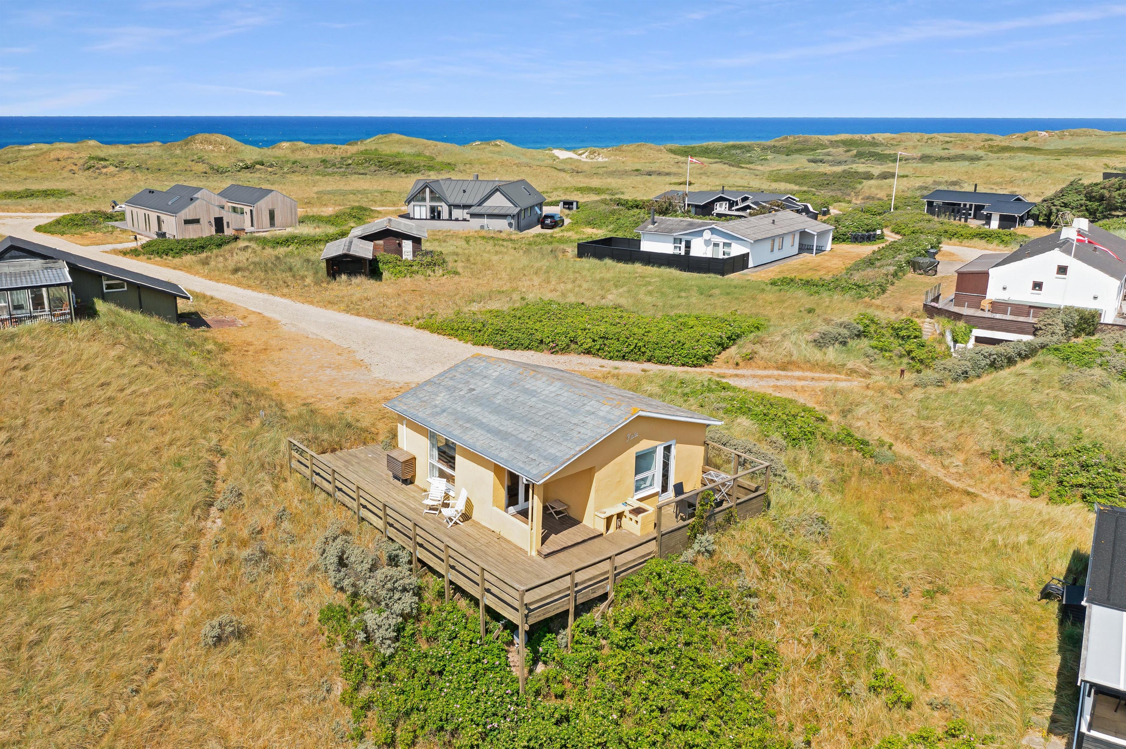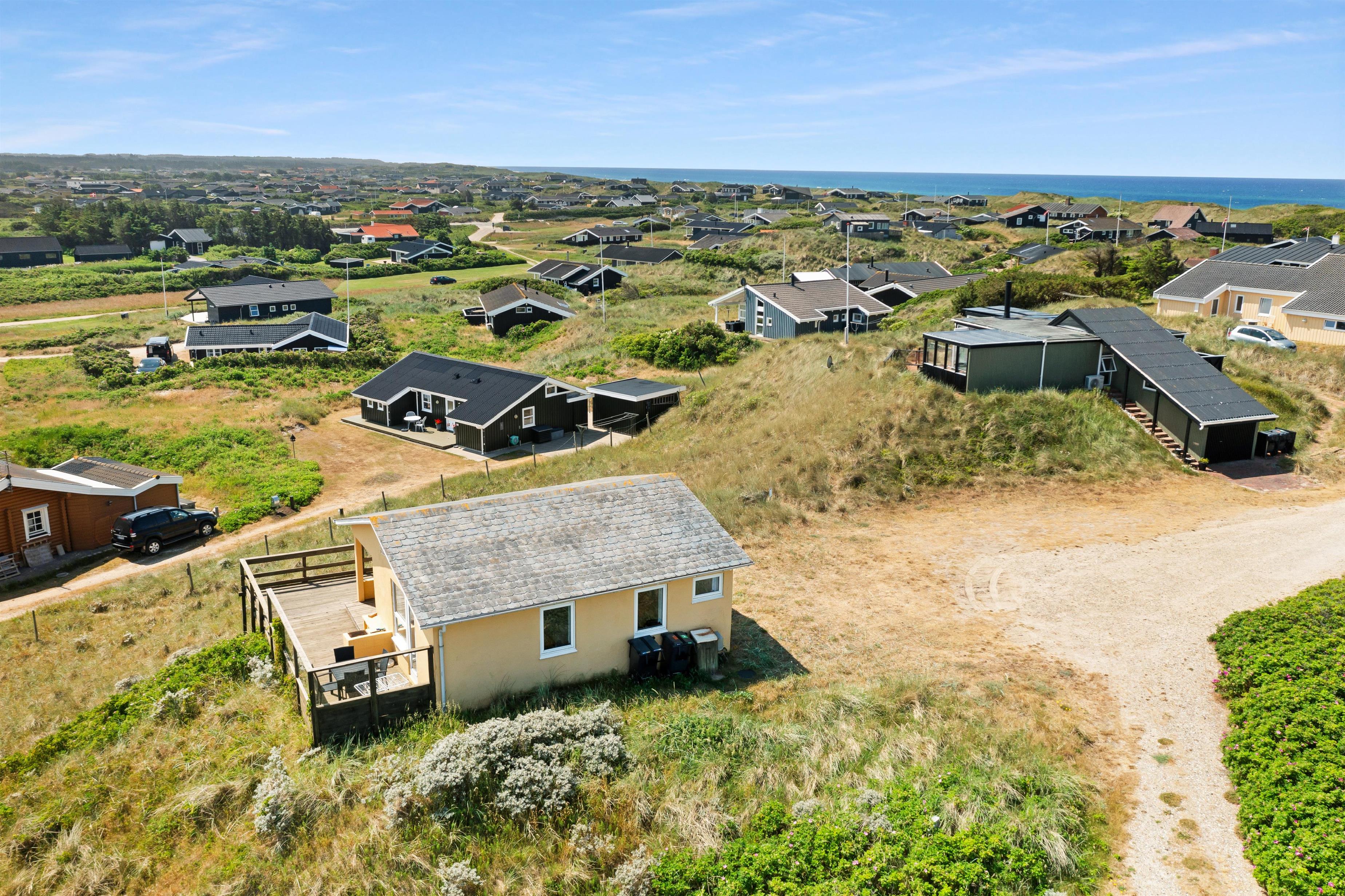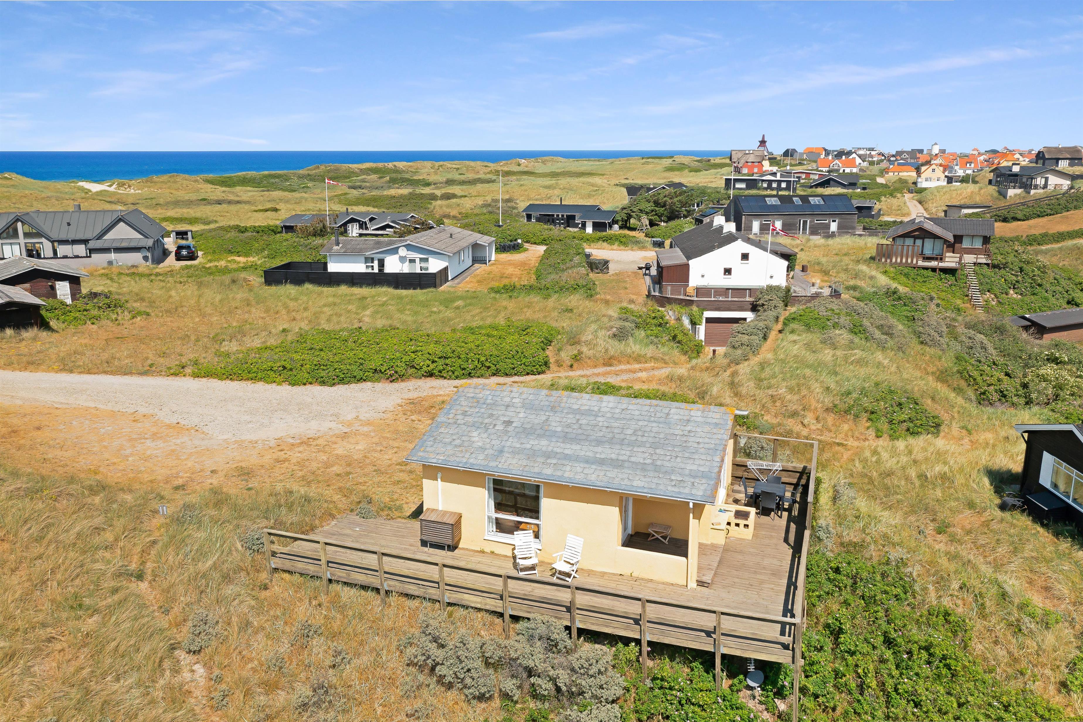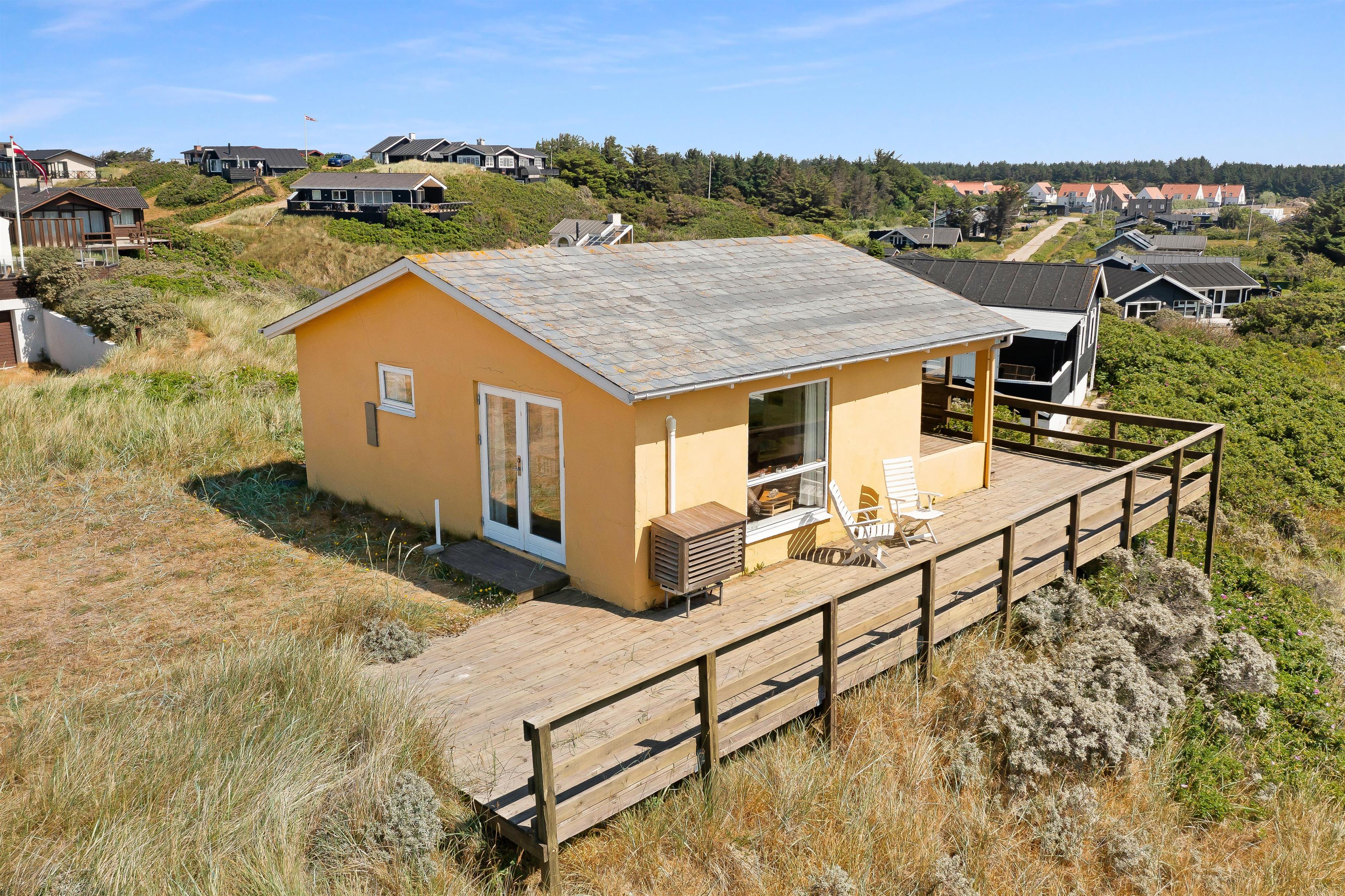 Hyggeligt sommerhus i Løkken med 3 soveværelser, terrasse og panoramaudsigt tæt på strand og by.