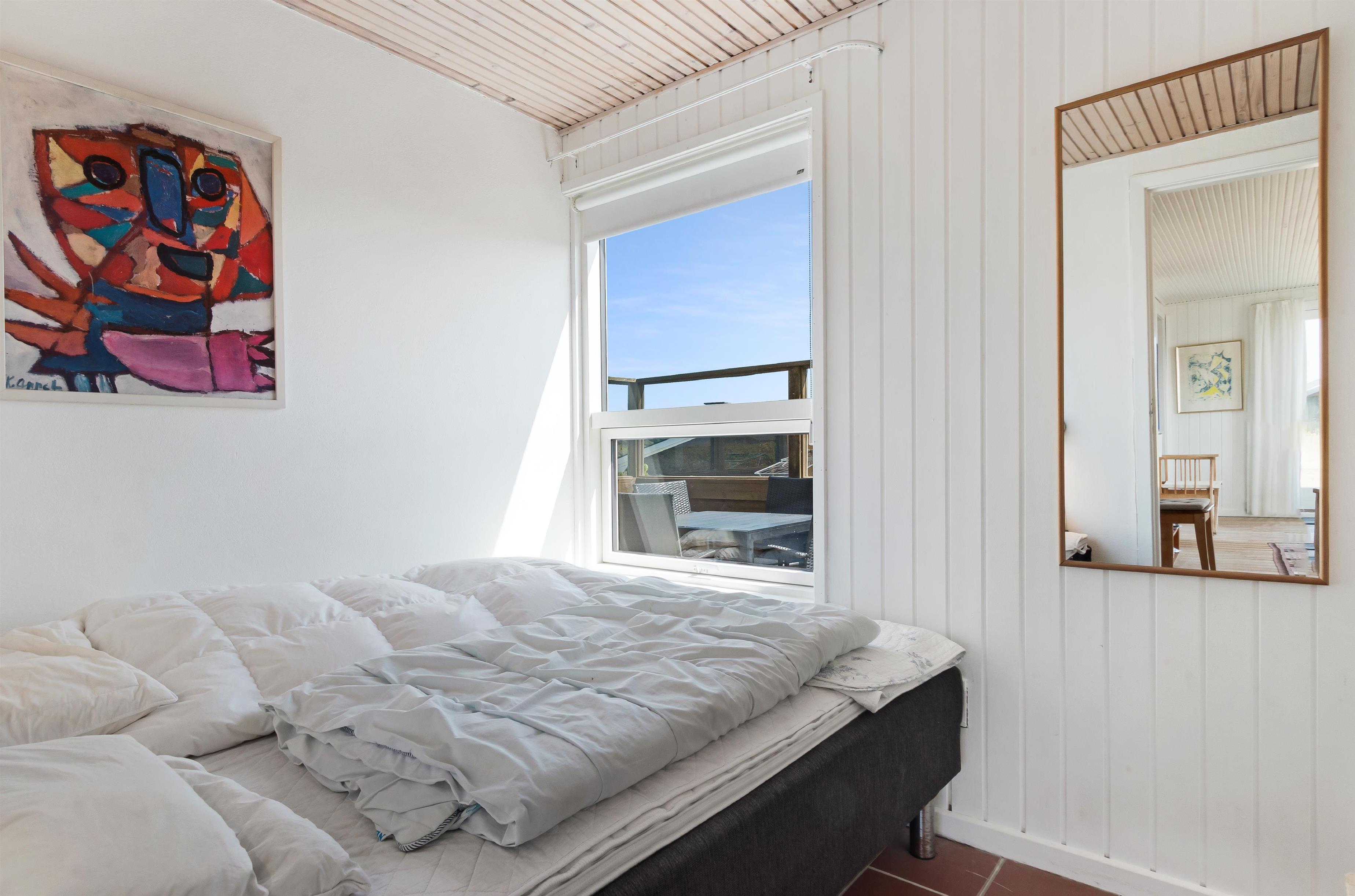 Det skønne sommerhus er ikke en moderne mastodont, det er et rigtigt sommerhus, med plads til 5 personer fordelt på 3 soverum. Det er et traditionelt og rigtig hyggeligt hus, og udsigten er som nævnt intet mindre end imponerende, og beliggenheden er tæt på såvel by som strand. Foruden de tre soverum er de resterende rum super sommerhus-charmerende - køkken, stue/alrum og toilet med bad. Der er terrasse næsten hele vejen rundt om huset, hvor du kan nyde den storslåede natur i Jomfrubakkerne.