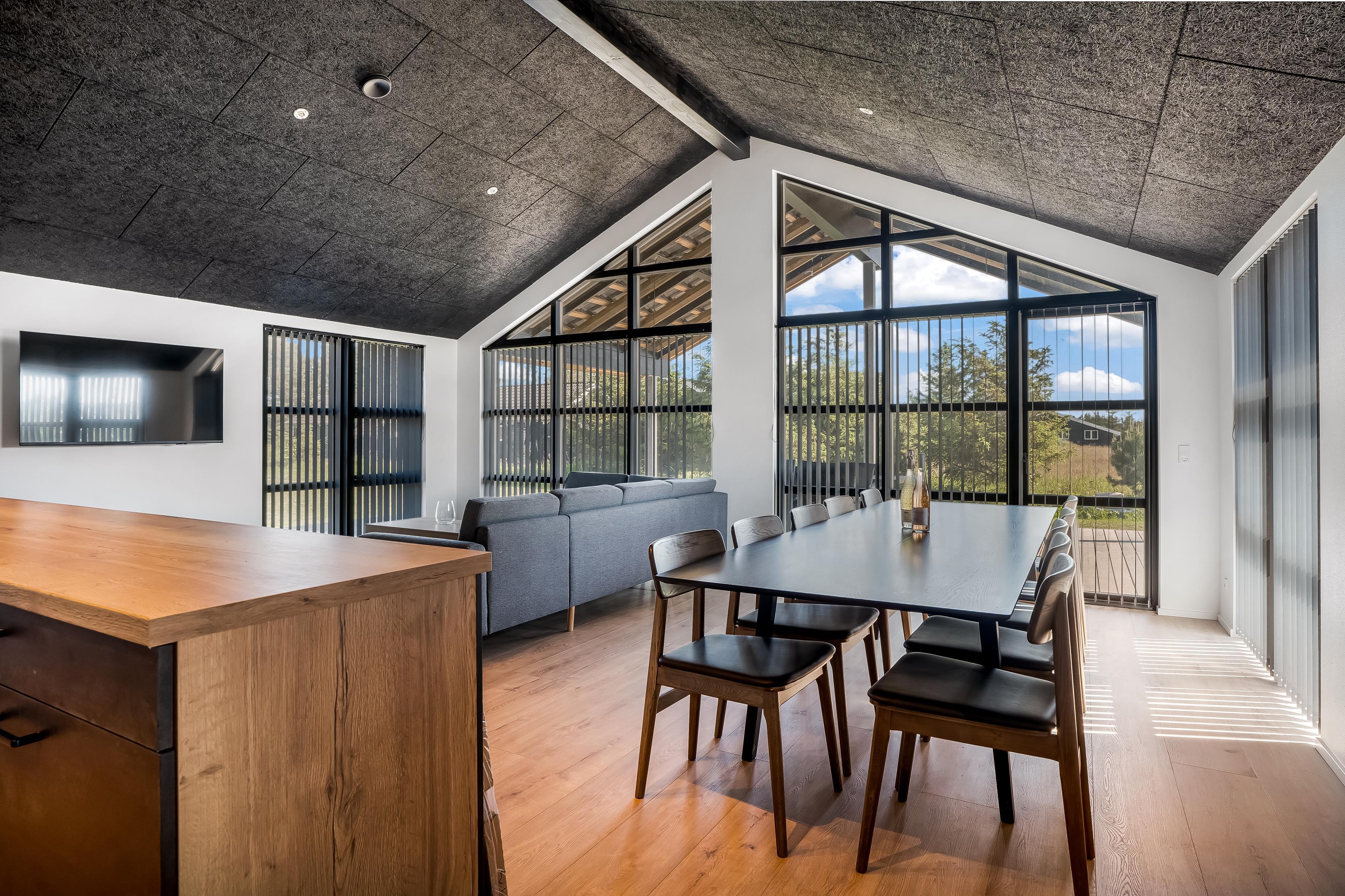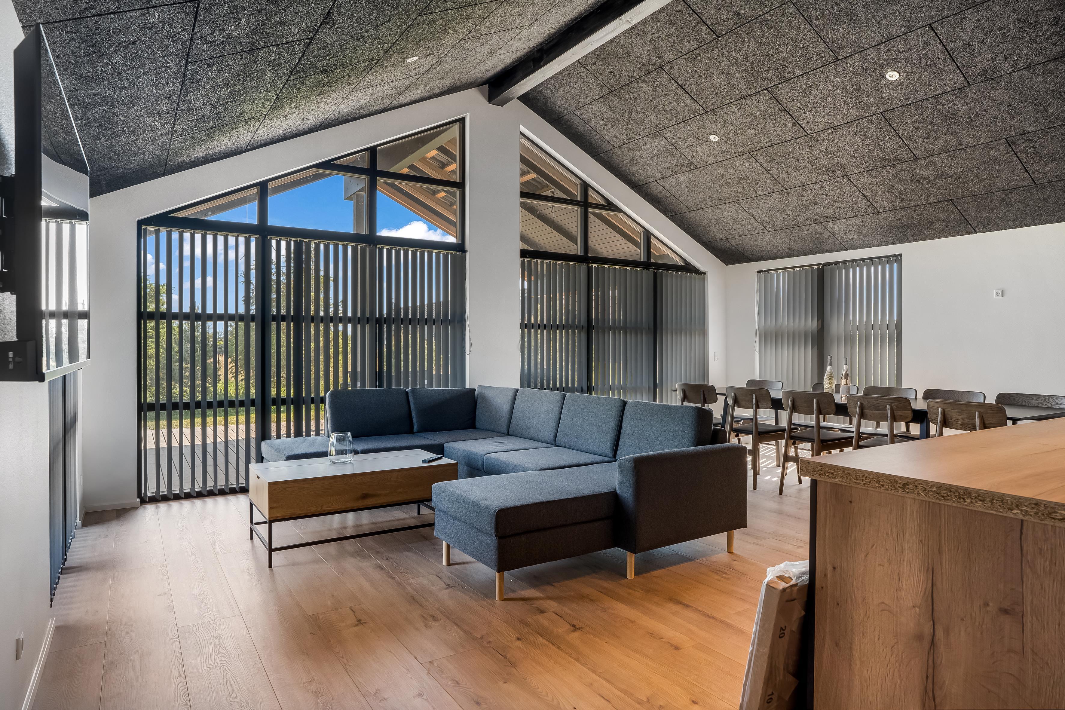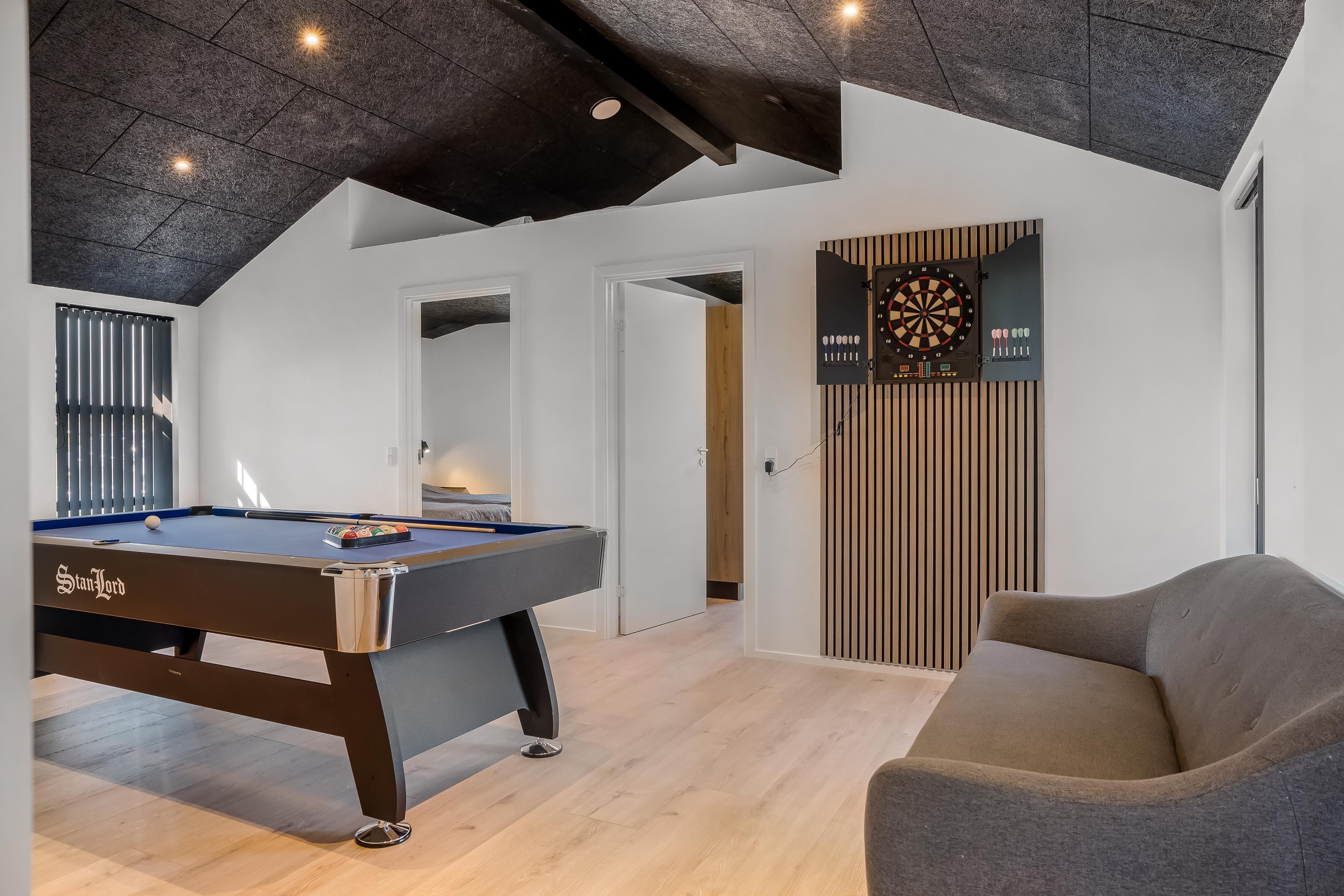 Her får du alt, hvad der skal til for en vellykket ferie – fra stort aktivitetsrum og rummeligt køkken/alrum til kæmpe terrasseområder med wellness og god plads til leg i haven. De kølige aftener nydes bedst i det centrale opholdsrum, hvor du kan slappe af i sofaen, spille spil eller se film, mens andre dyster i aktivitetsrummet lige ved siden af.