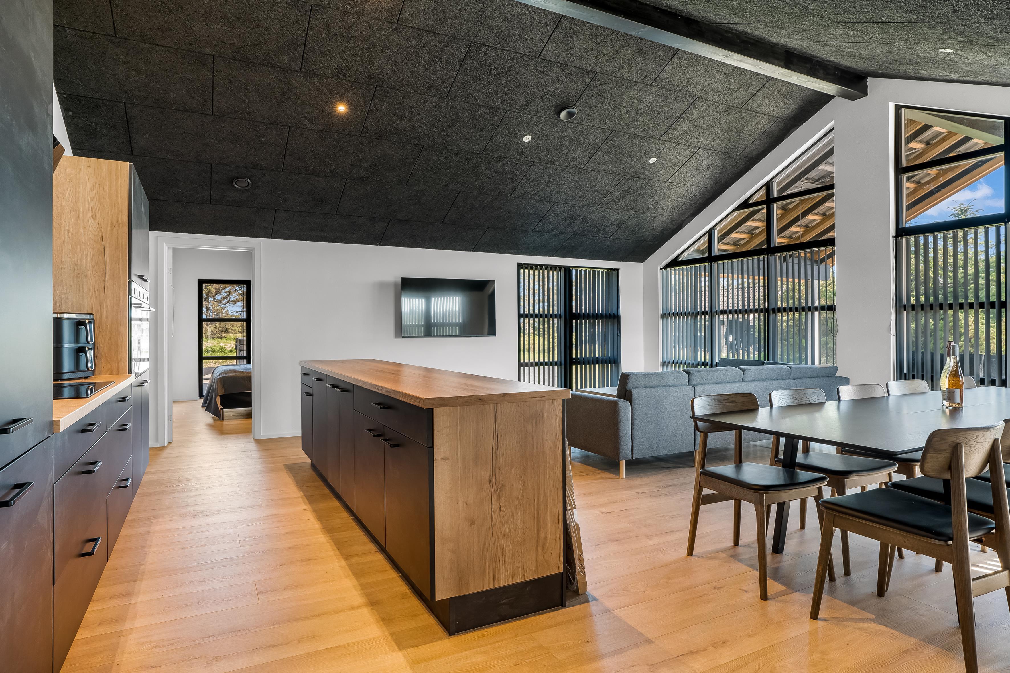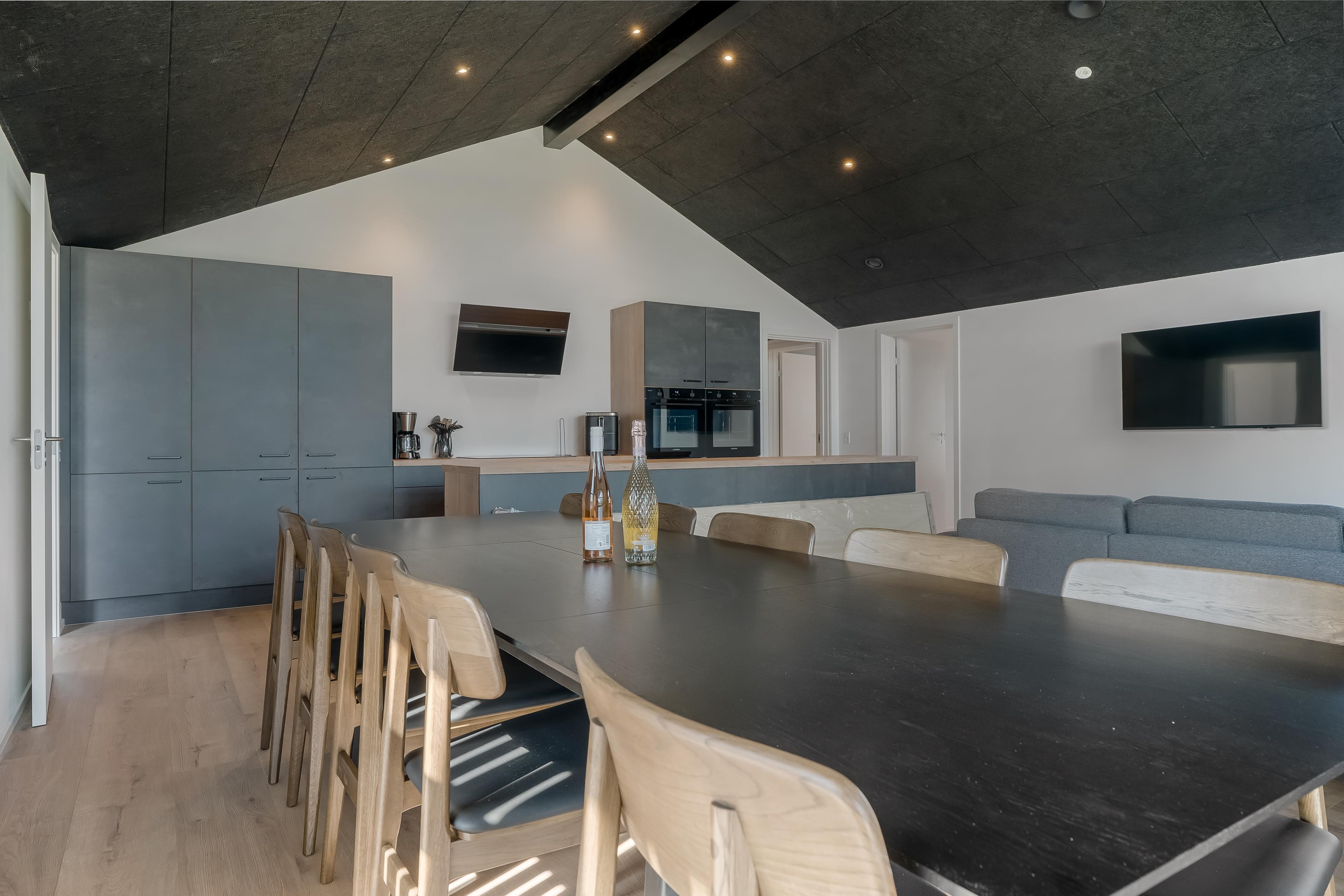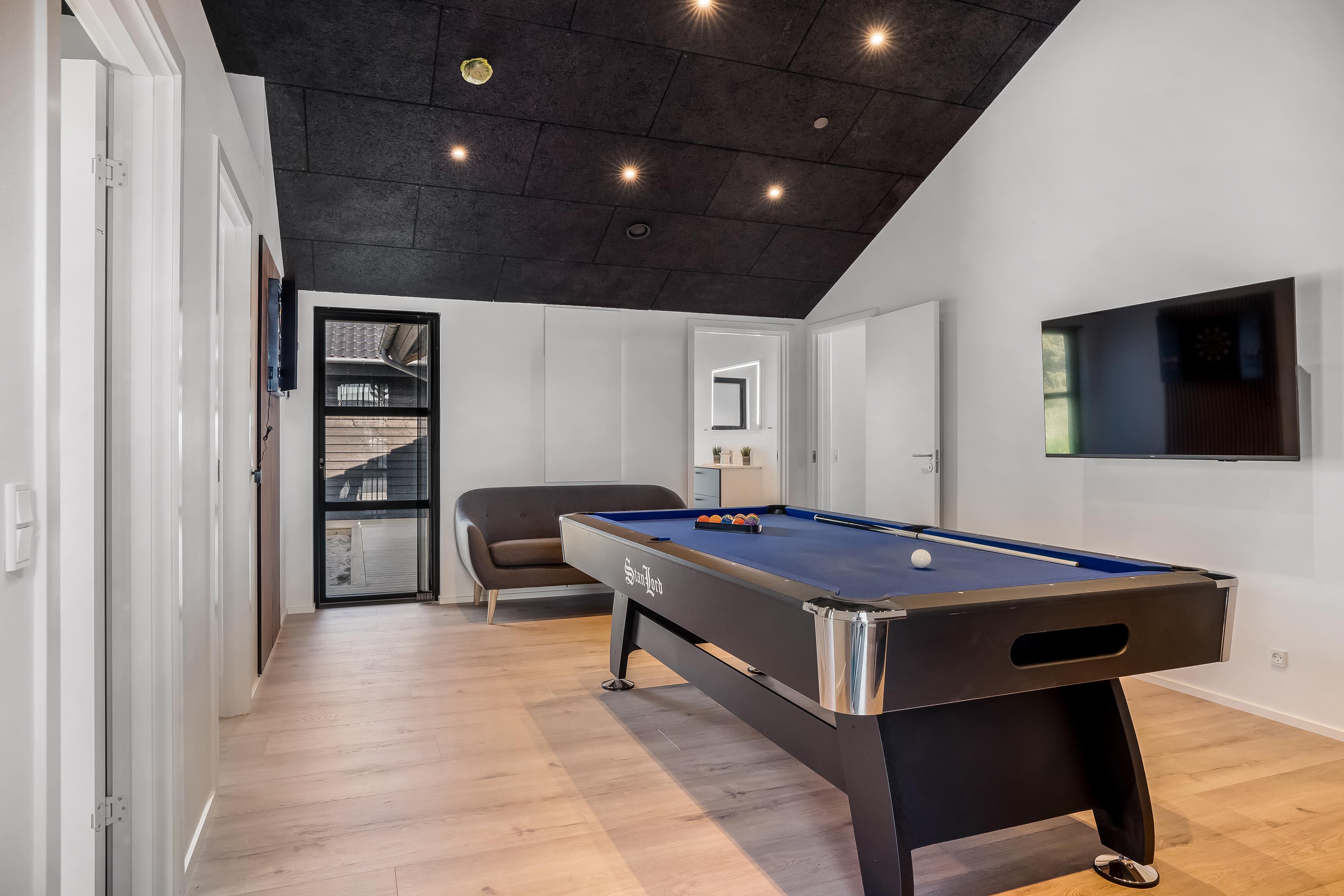 Her får du alt, hvad der skal til for en vellykket ferie – fra stort aktivitetsrum og rummeligt køkken/alrum til kæmpe terrasseområder med wellness og god plads til leg i haven. De kølige aftener nydes bedst i det centrale opholdsrum, hvor du kan slappe af i sofaen, spille spil eller se film, mens andre dyster i aktivitetsrummet lige ved siden af.
