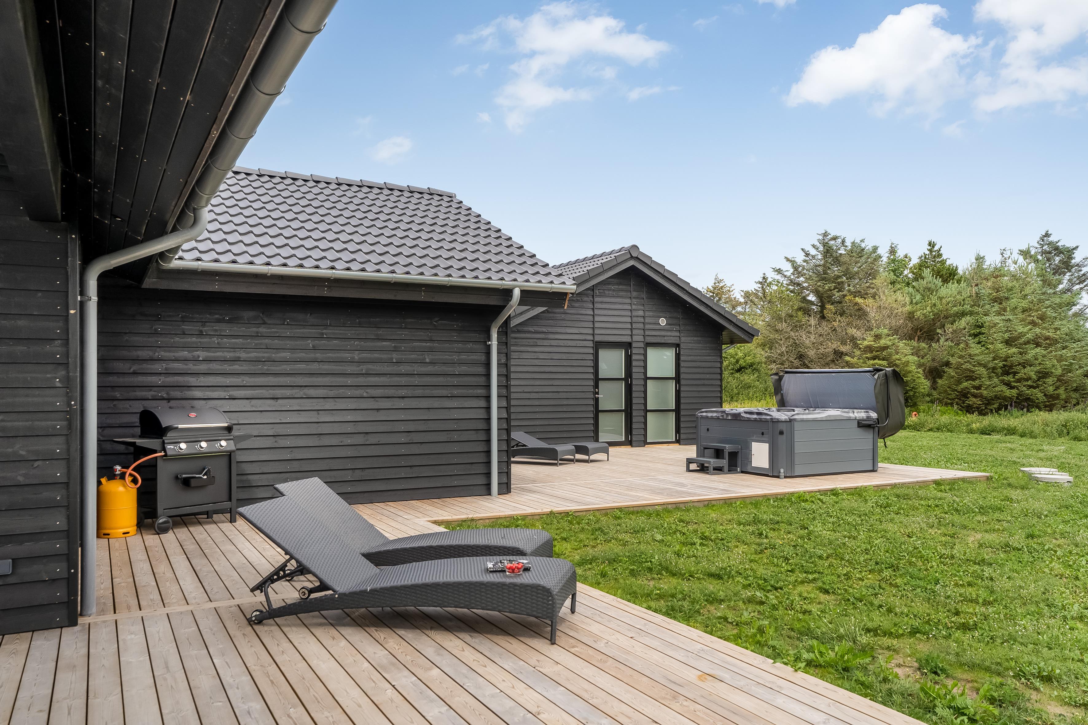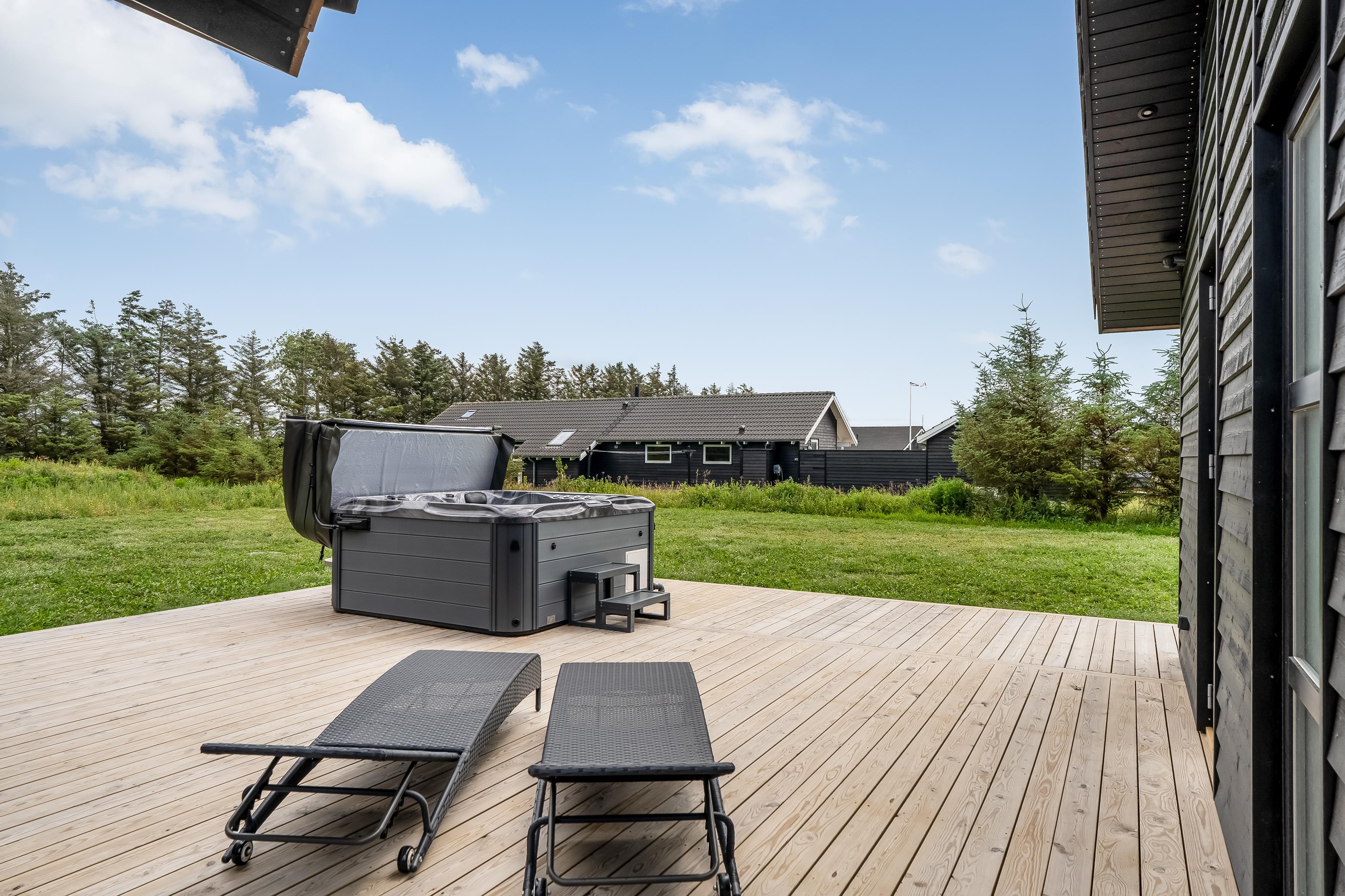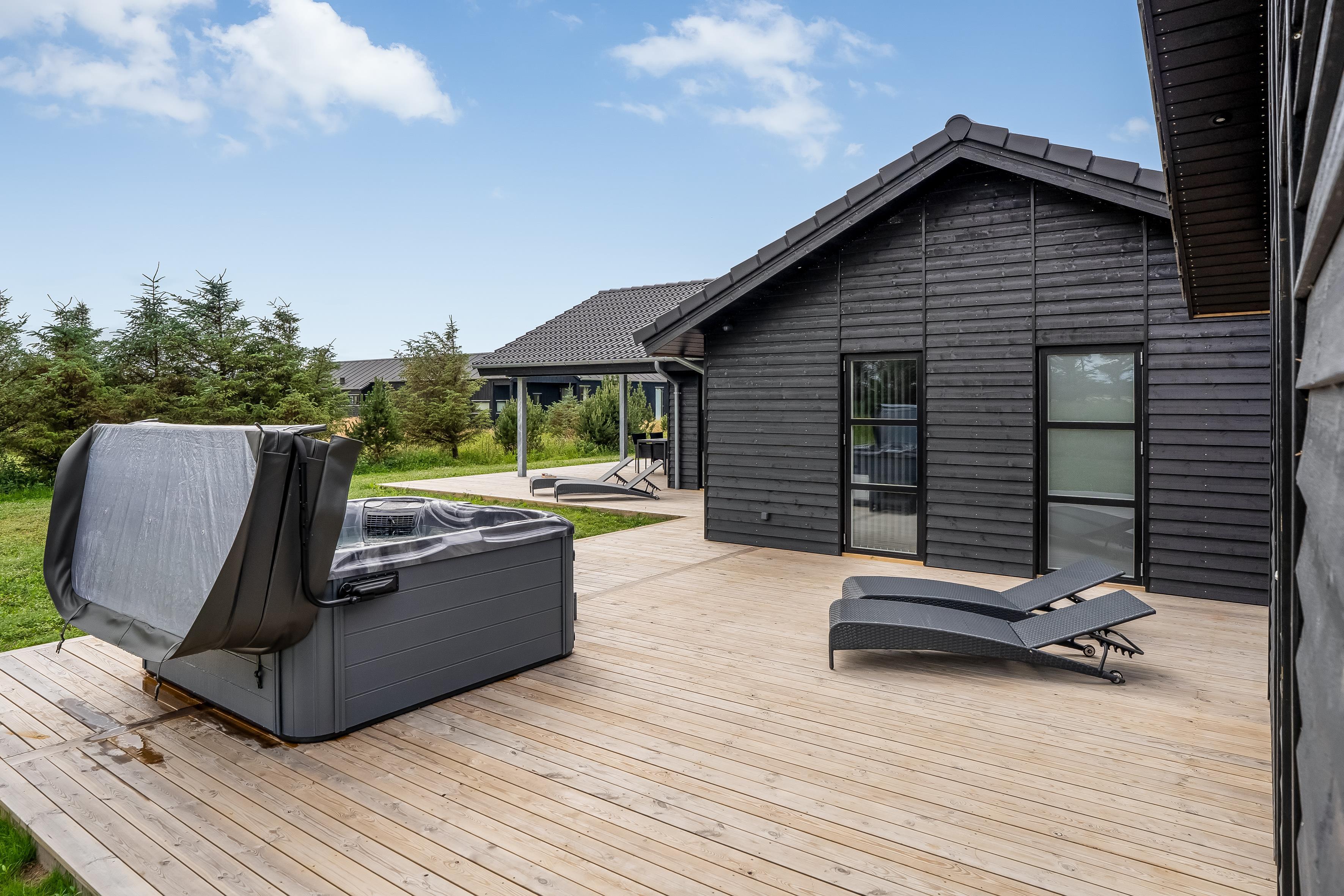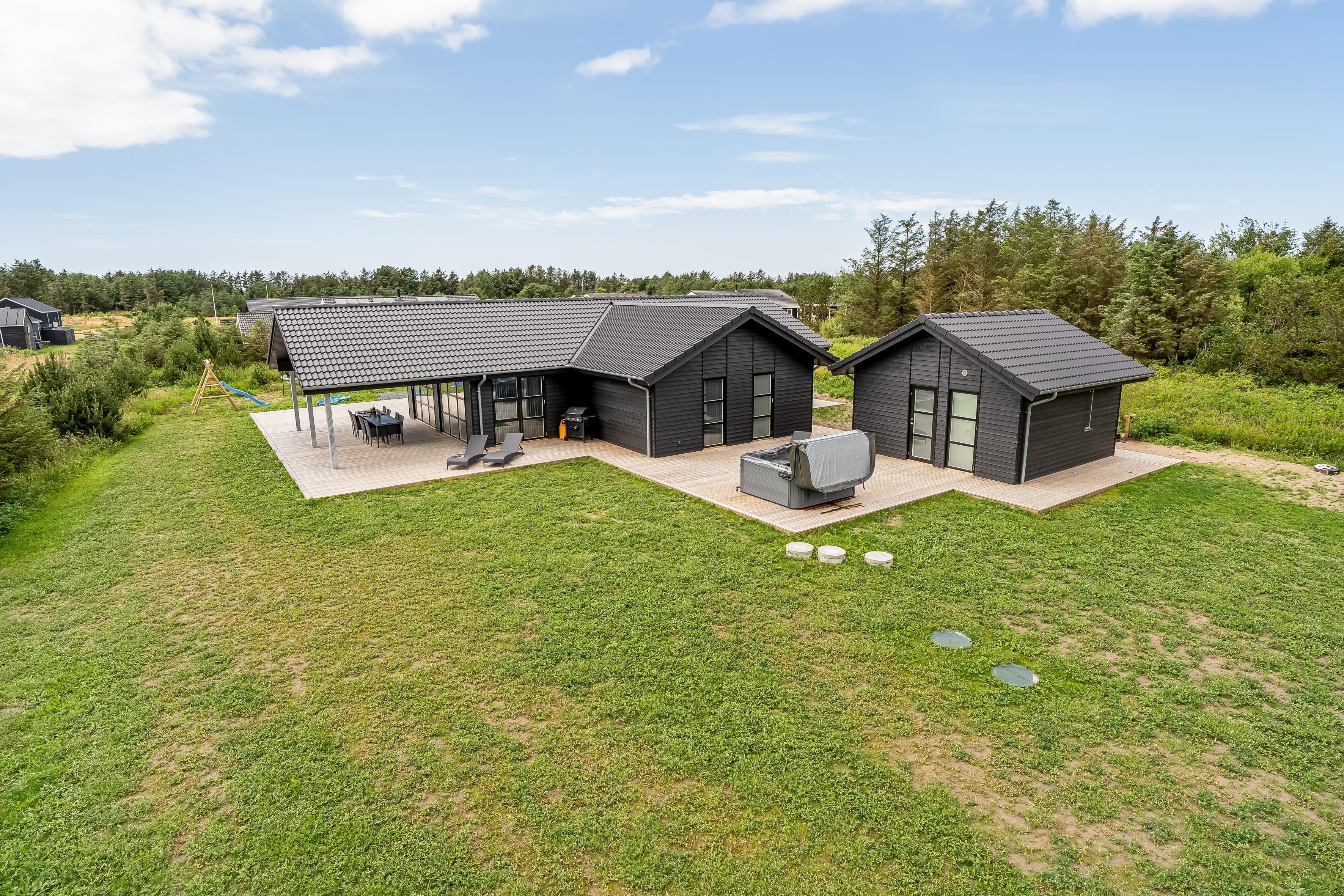 Nybygget sommerhus i Løkken med wellness, aktivitetsrum og stor terrasse for hele familien.