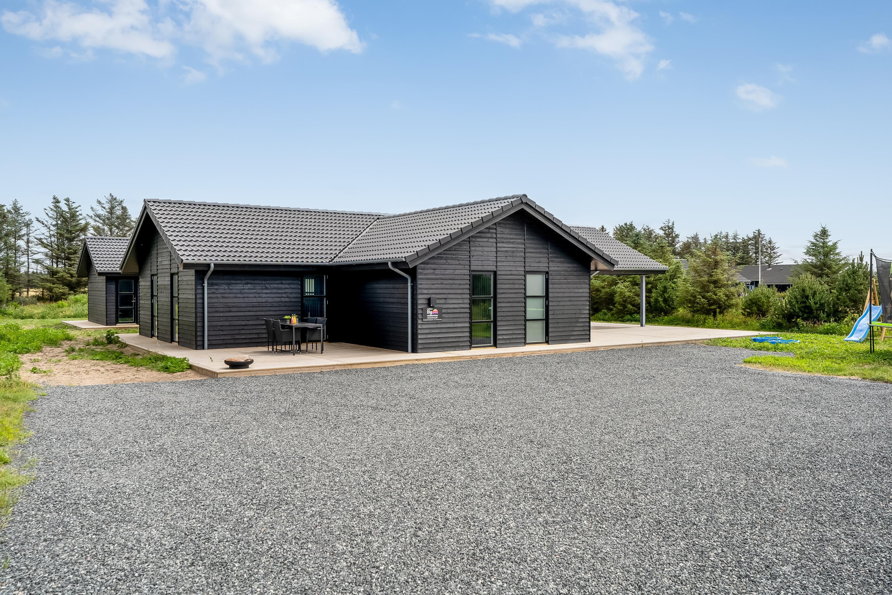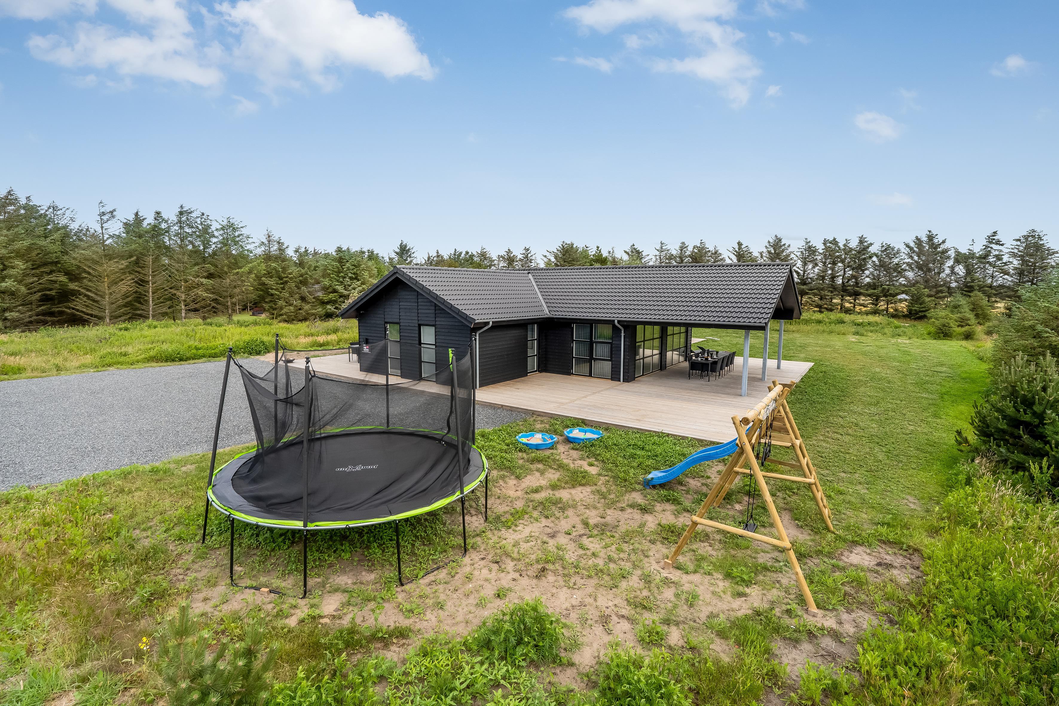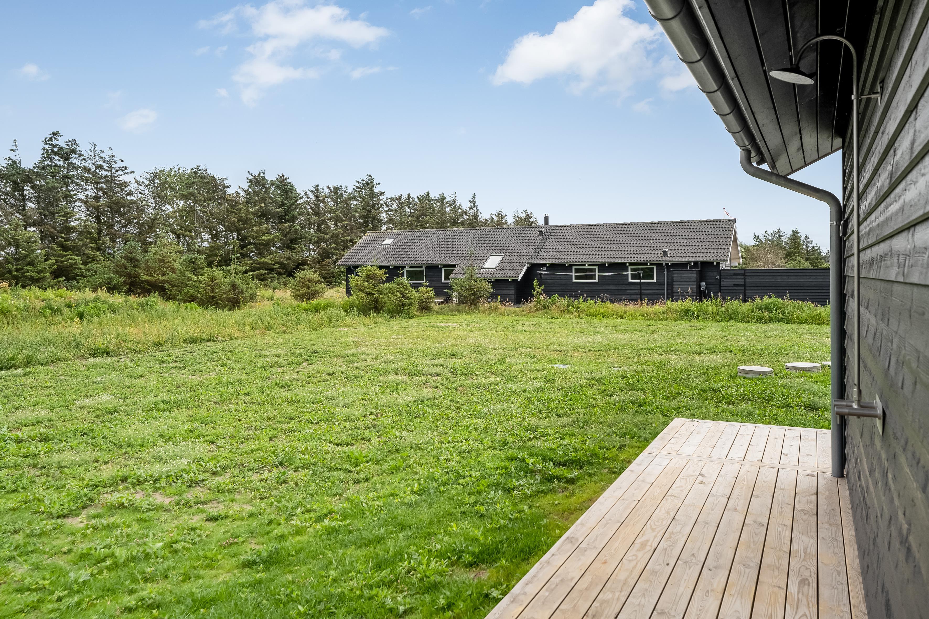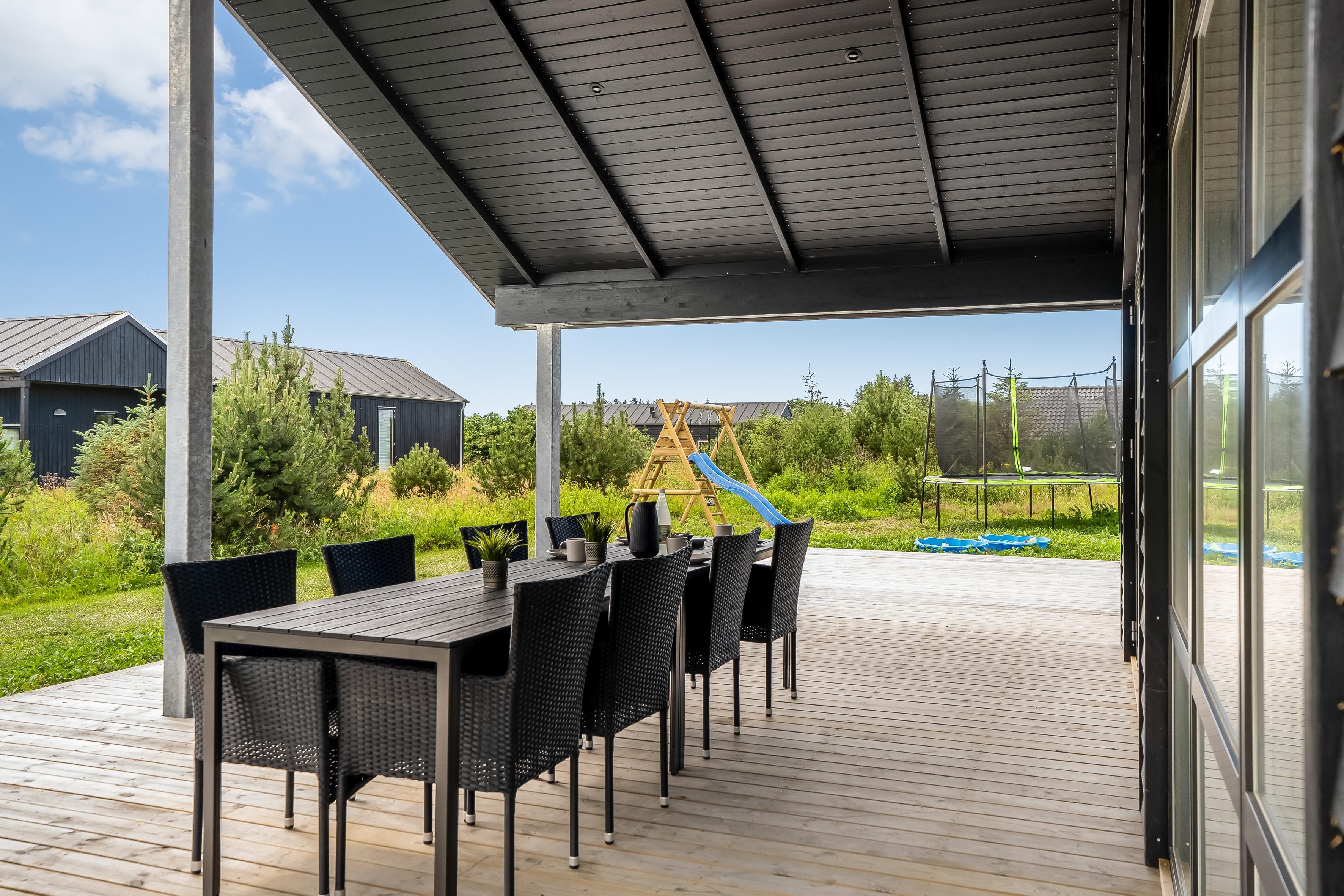 Nybygget sommerhus i Løkken med wellness, aktivitetsrum og stor terrasse for hele familien.