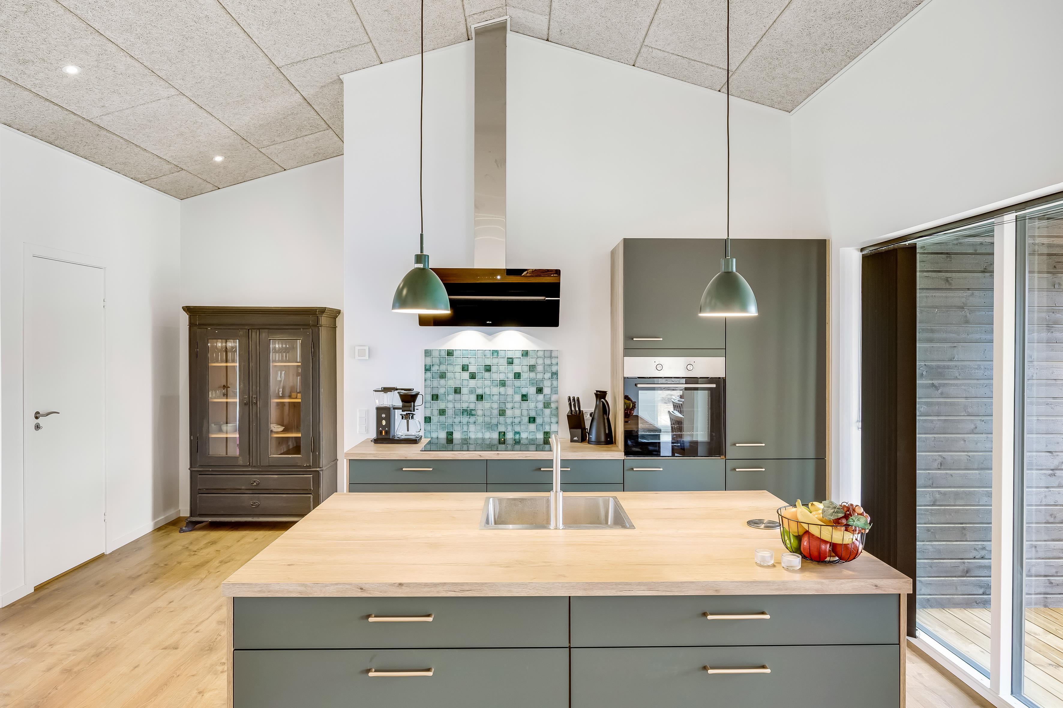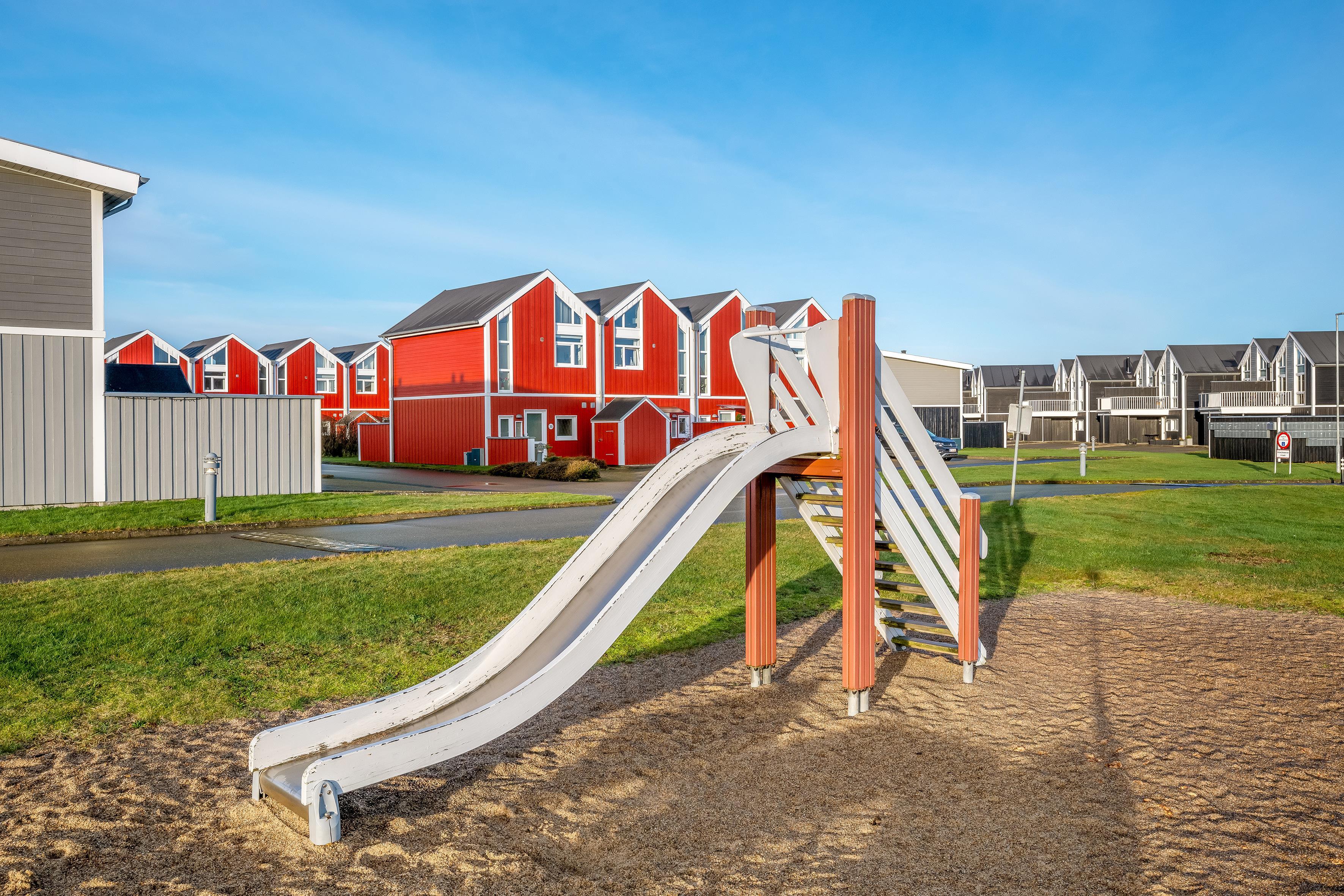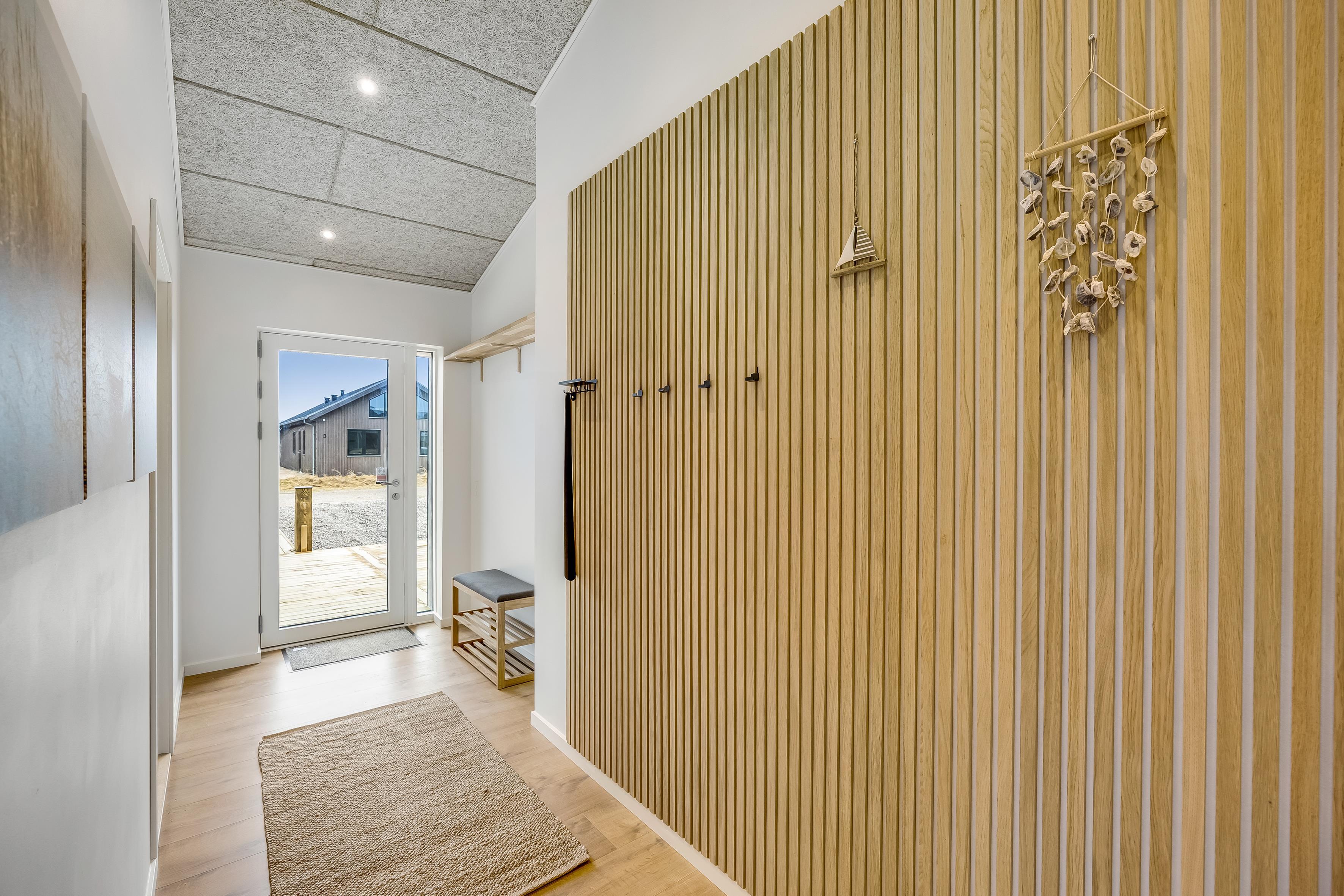 Haven og terrassen inviterer til både afslapning og aktivitet uanset tidspunktet på dagen. Med det store terrasseområde, herunder en overdækket del, er det let at finde læ og sol. Der er en skøn udespa samt udebruser, og der er en strategisk placeret vold ved huset, så man kan solbade i fred. Her er god plads til leg og hygge, og fra huset er der kort afstand til både strand, by og indkøb – alt ligger inden for cirka en kilometers radius.