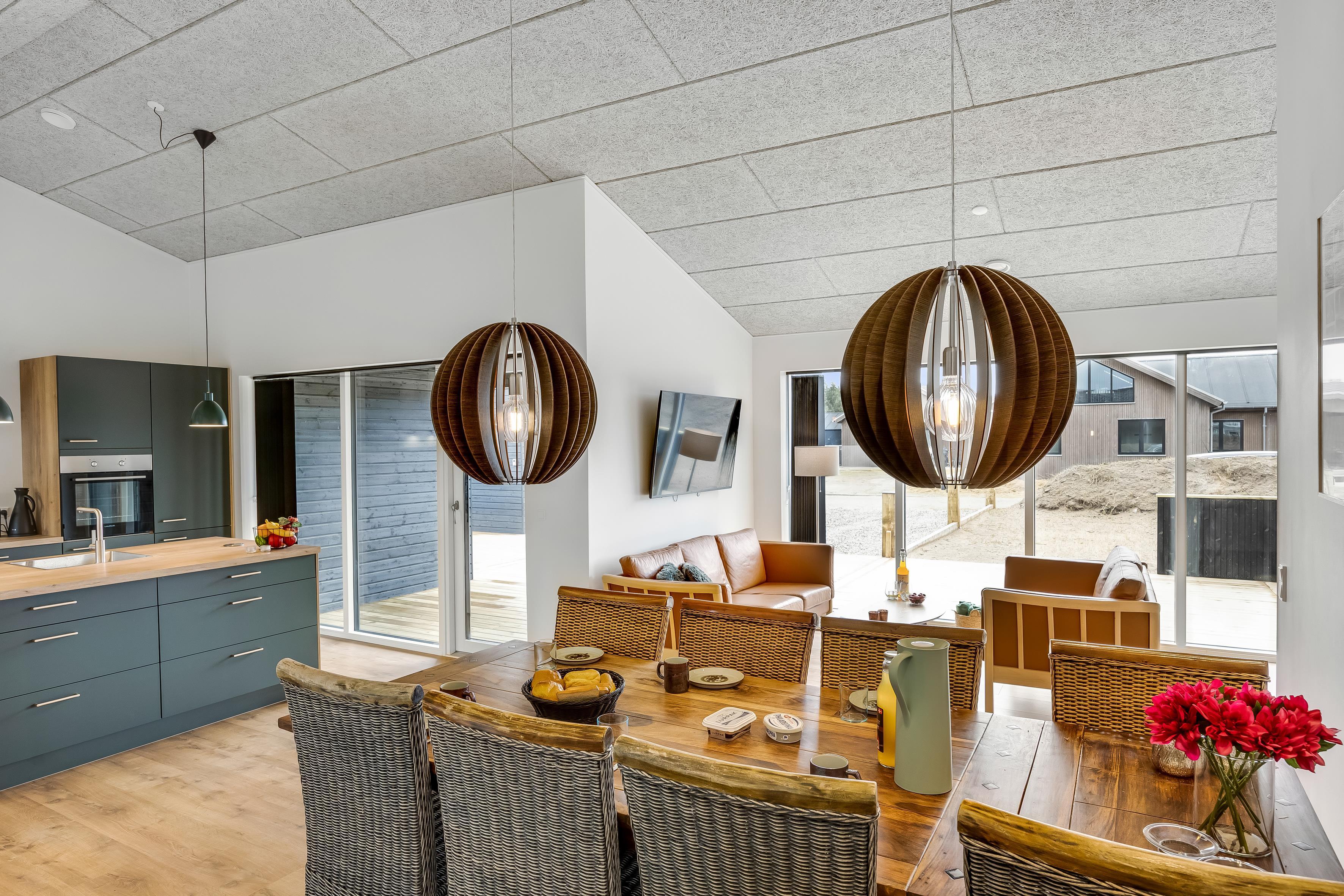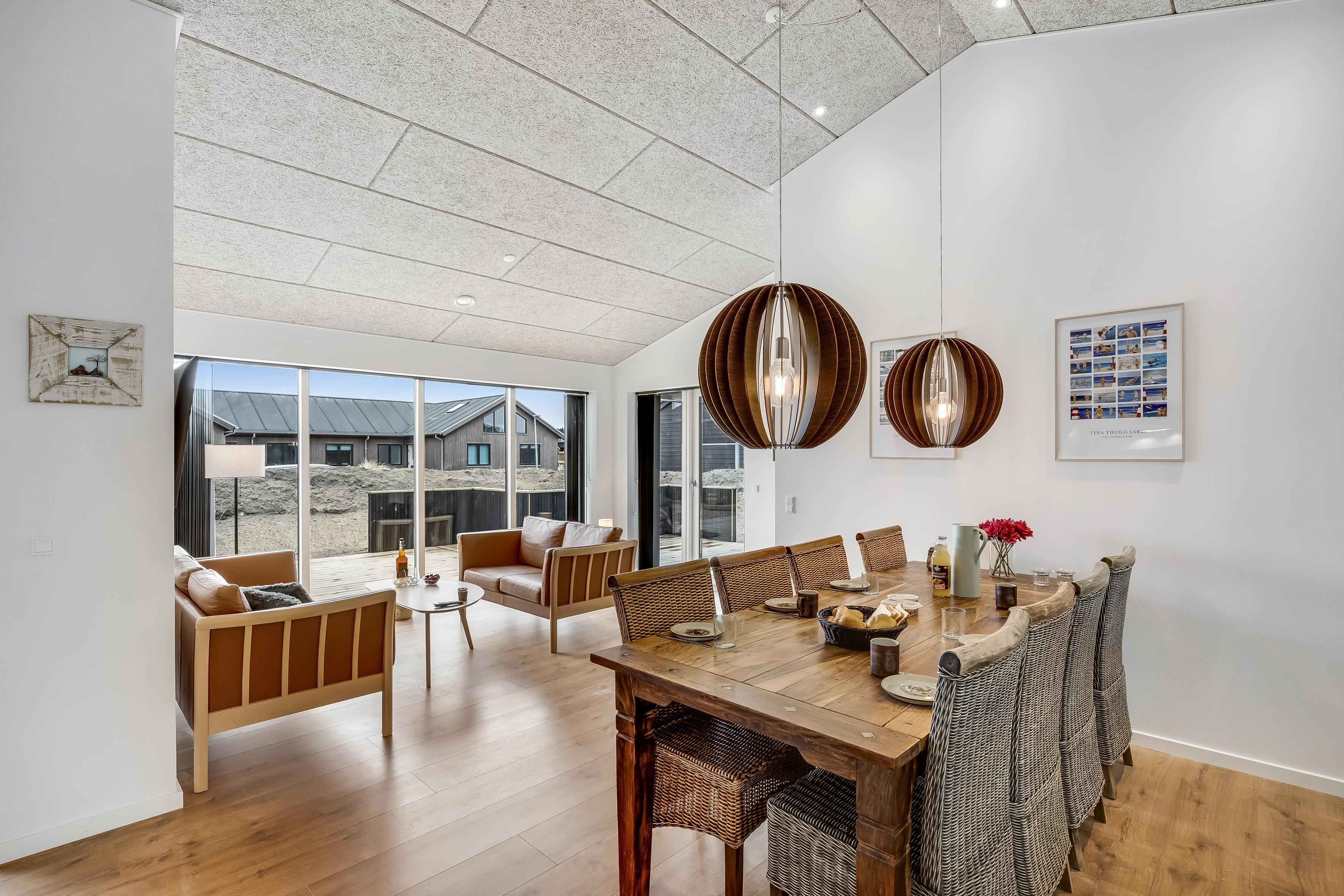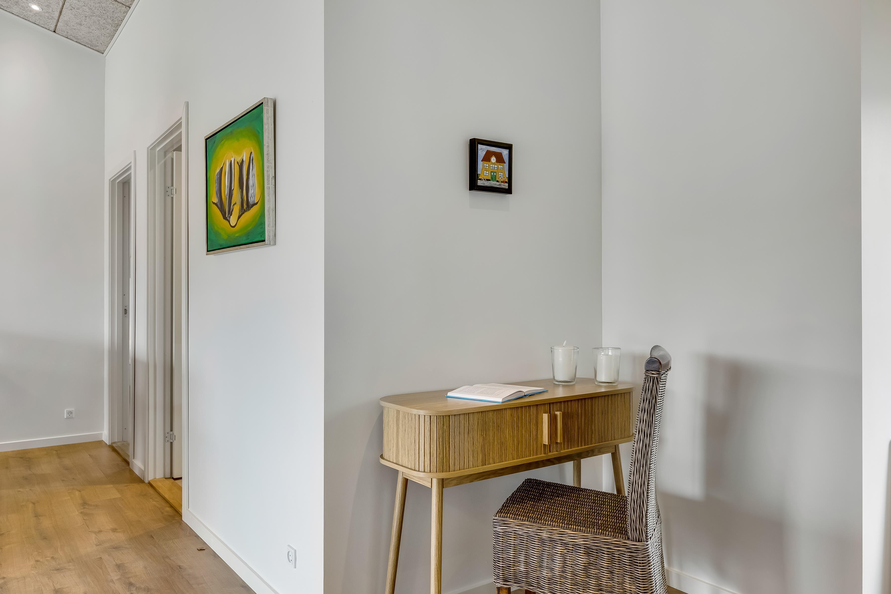 Huset har plads til 6 personer fordelt på 3 soverum med dobbeltsenge. Her får du en bolig med et flot, åbent køkken-alrum i forlængelse af stuen, hvor indretningen er lys og gennemtænkt med udgang til det store, skønne terrasseområde. Badeværelserne er rummelige og stilfulde, og huset er generelt bygget med sans for detaljer og moderne bekvemmeligheder.