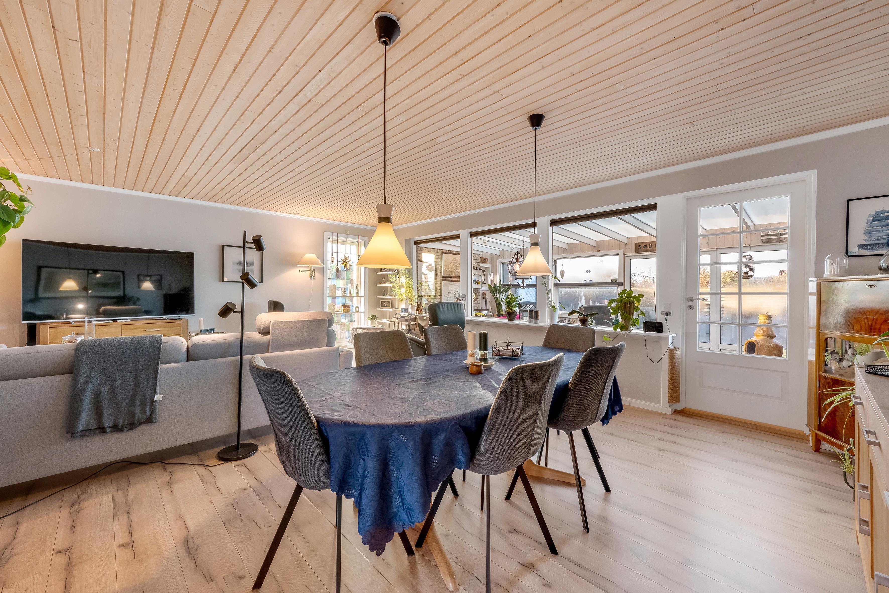 Charmerende hus i Løkken med stor udestue, gårdsplads med 7 hyggekroge og sauna for afslapning.