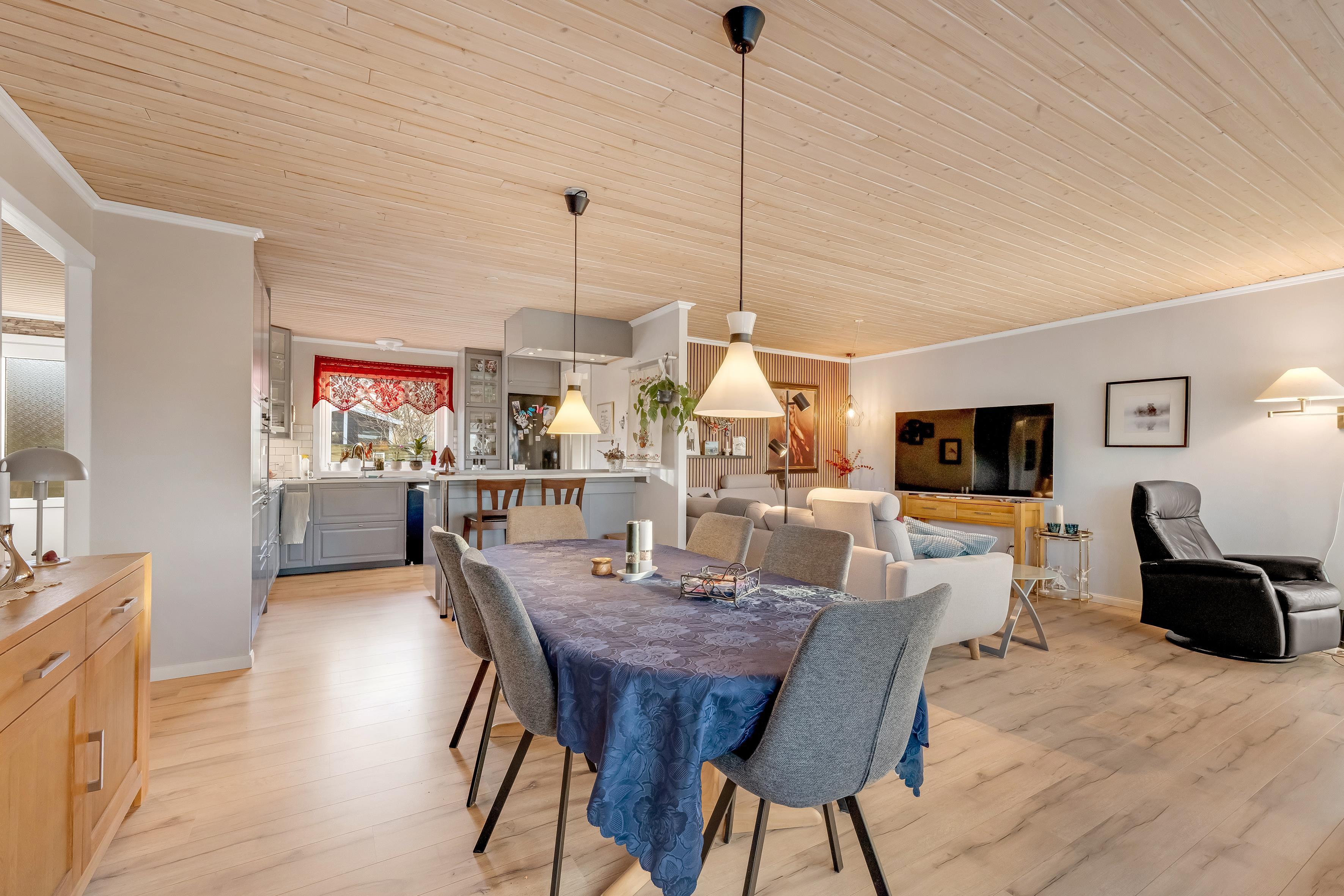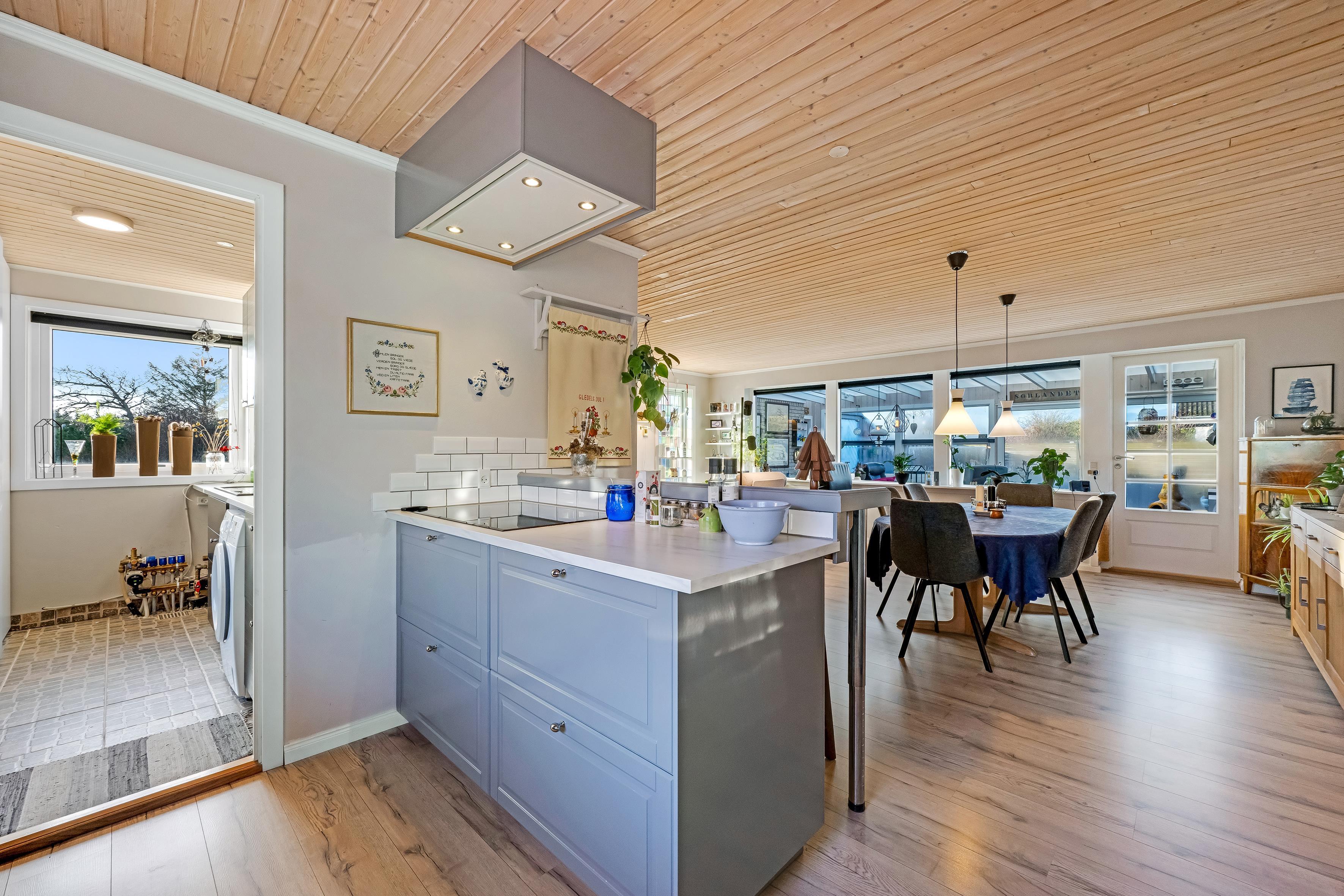 Her på Parallelvej 11 er husejer rigtig god til at skabe rum til hyggelige stunder for sine gæster! Husets køkken/alrum er rigtig charmerende med åbent køkken i forbindelse med den store spise- og TVstue, hvor der er rigelig mulighed for at slænge sig i den store sofa, mens der spilles kort ved bordet og kokkereres i køkkenet. I forlængelse af dette rum findes den store udestue, hvorfra du kan tilgå husets store gårdsplads, der har ikke mindre end 7 hyggekroge, så der er rig mulighed for at finde en plads i solen! Huset har en fordelingsgang med toilet, badeværelse og tre dobbeltværelser - det ene endda med stå-sauna.
