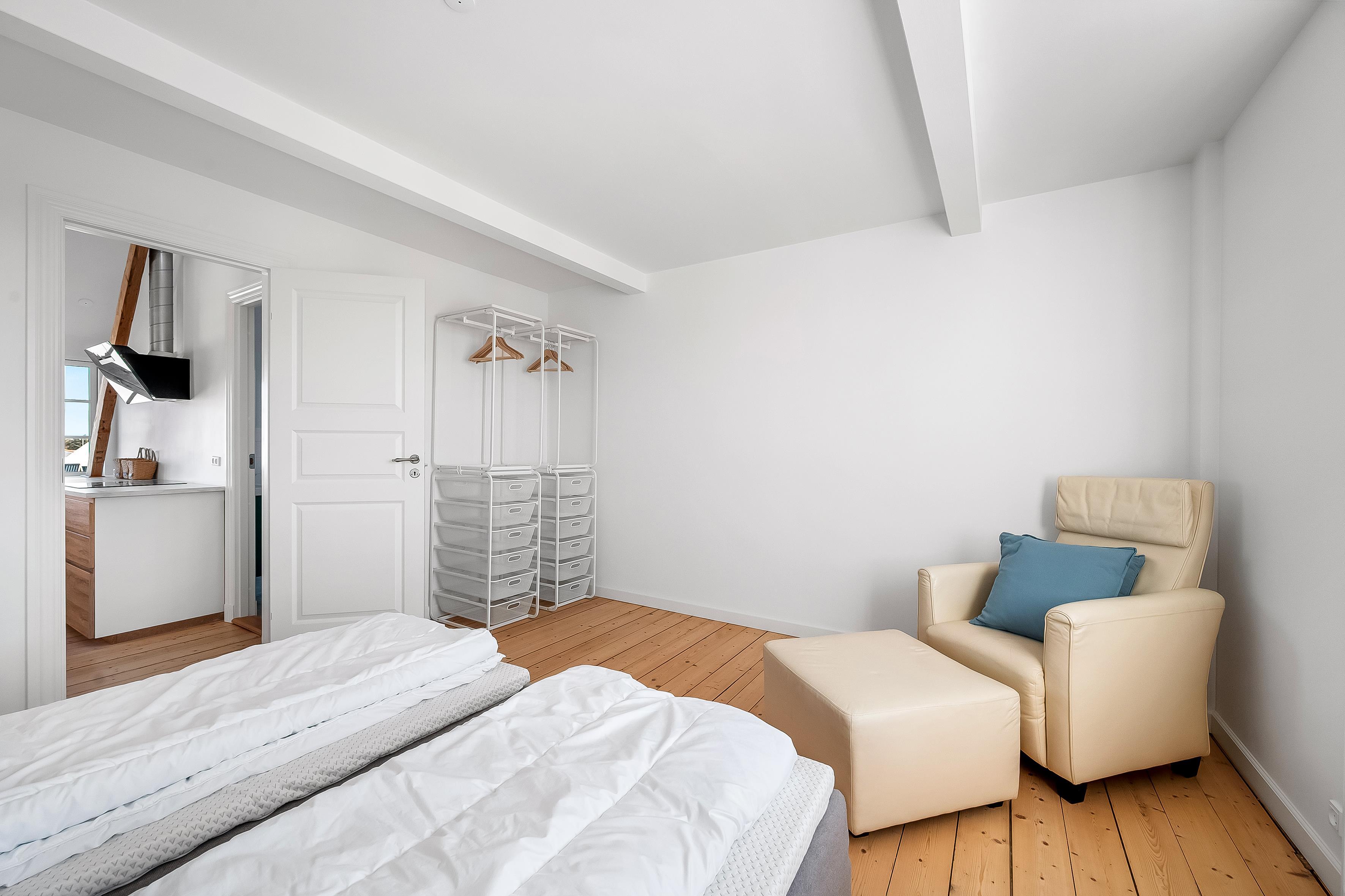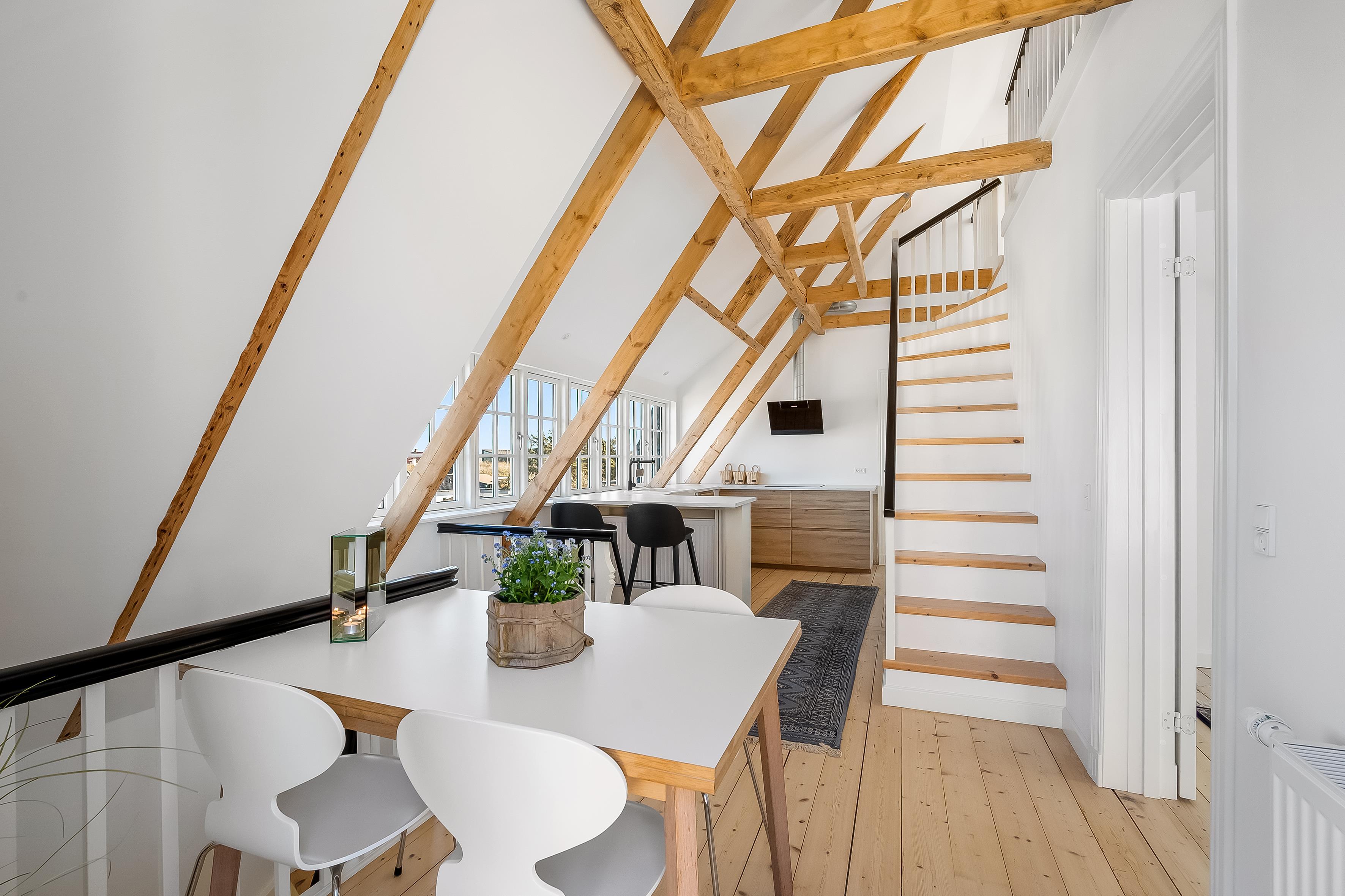 Lejligheden har en dejlig beliggenhed på en skøn villavej, der fører ned til stranden. Her er du afskærmet fra byens leben, men du skal blot bevæge dig 500 meter, før du rammer byens gågade. Lejligheden er komplet nyrenoveret i 2025 og stilen er flot med de fritliggende bjælker i de lyse rum, der fordeler sig over to etager. Her er plads til to personer, der vil nyde en ferie i høj klasse. Og I må gerne medbring en lille hund.