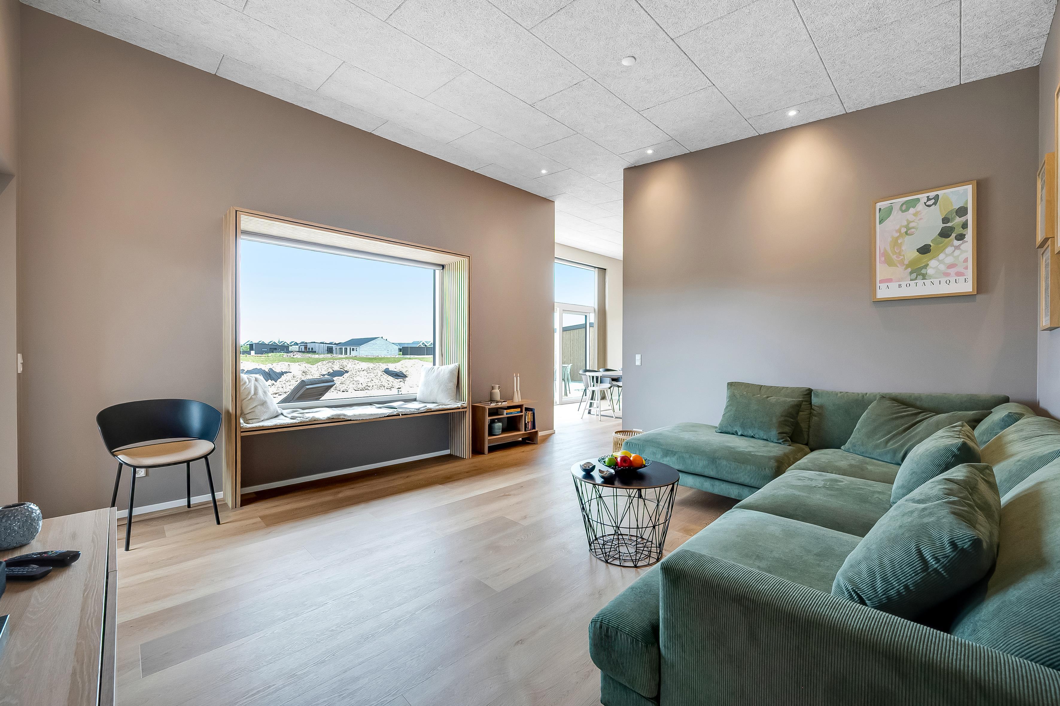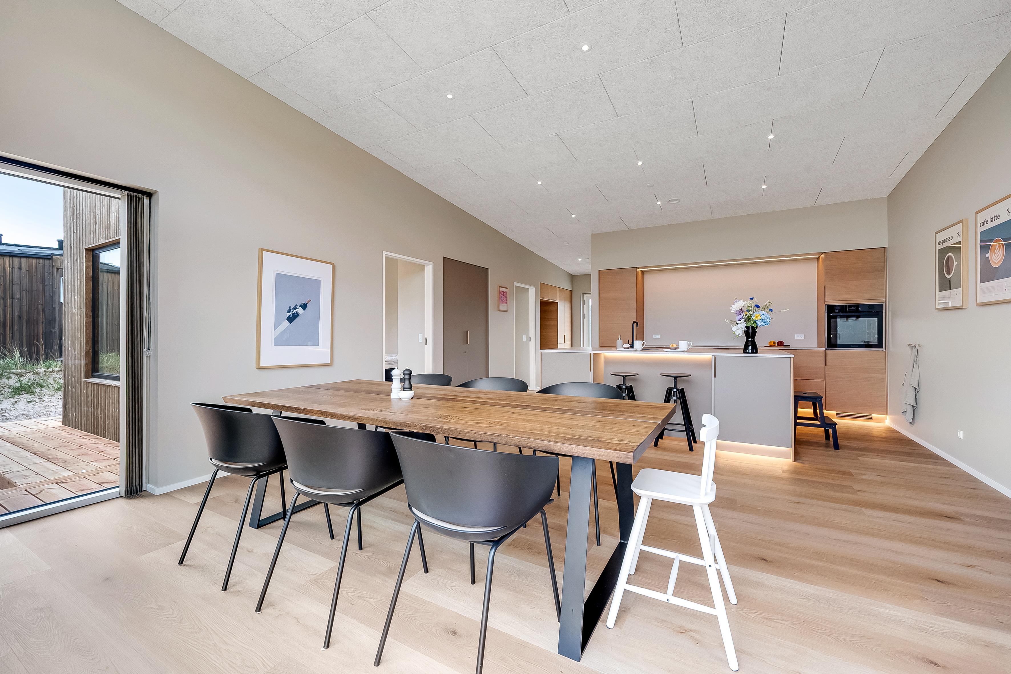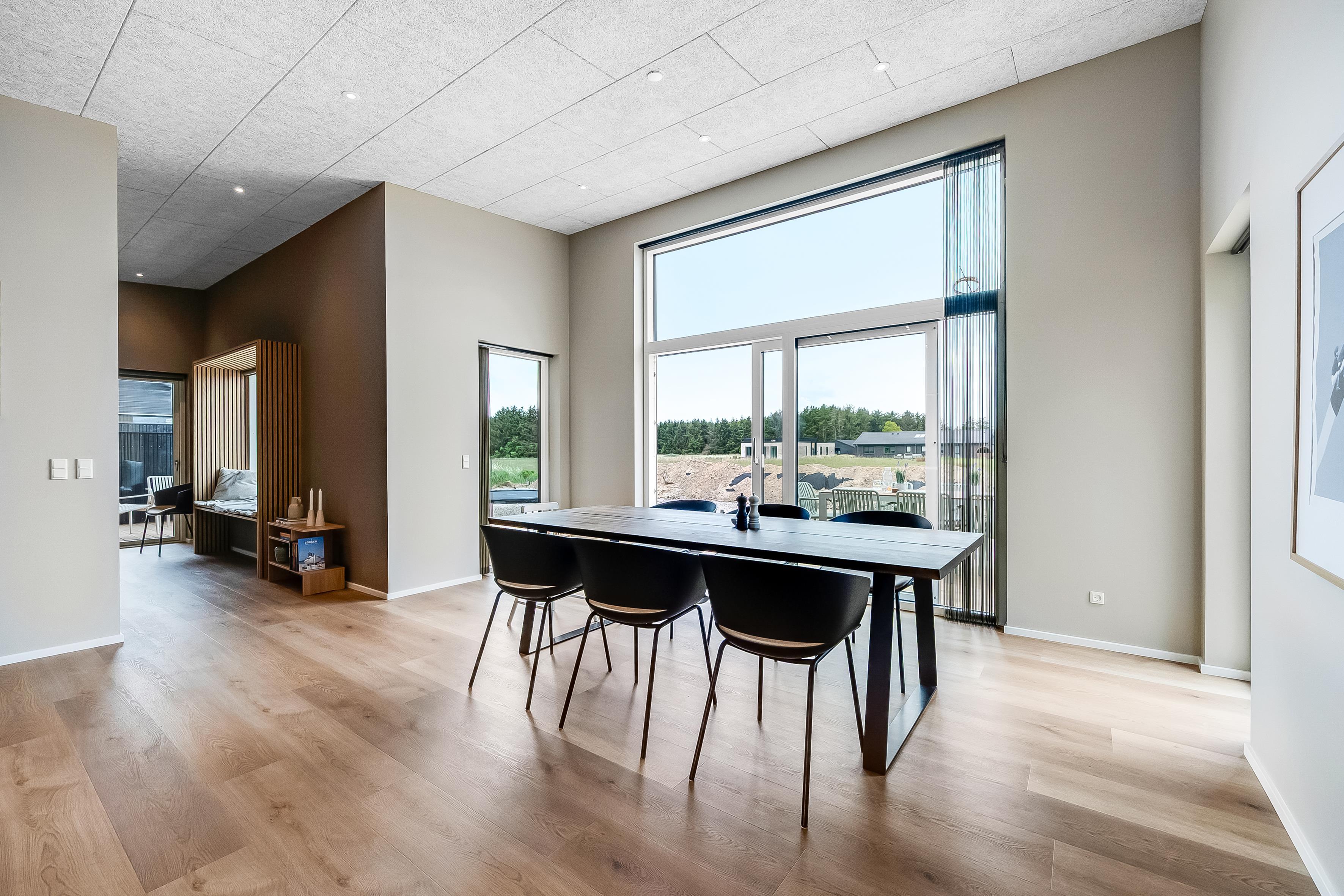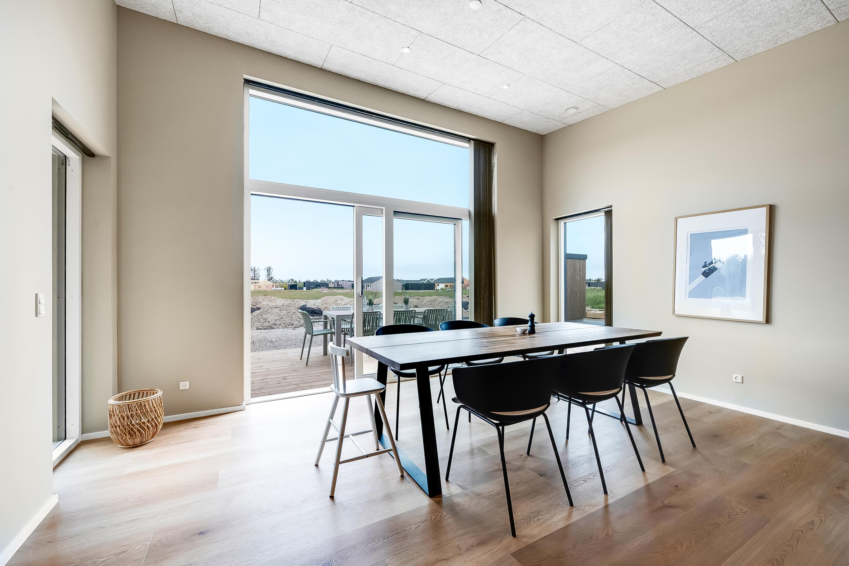 Dette nybyggede sommerhus giver plads til 8 gæster samt et barn. De åbne og lyse rum skaber en indbydende stemning, og den stilrene indretning vidner om fokus på kvalitet og detaljer. Hjemmets hjerte er det store opholdsrum, hvor køkken-alrummet og den hyggelige sofaafdeling smelter sammen. Badeværelserne er rummelige og elegant indrettede, hvilket understreger husets høje standard.