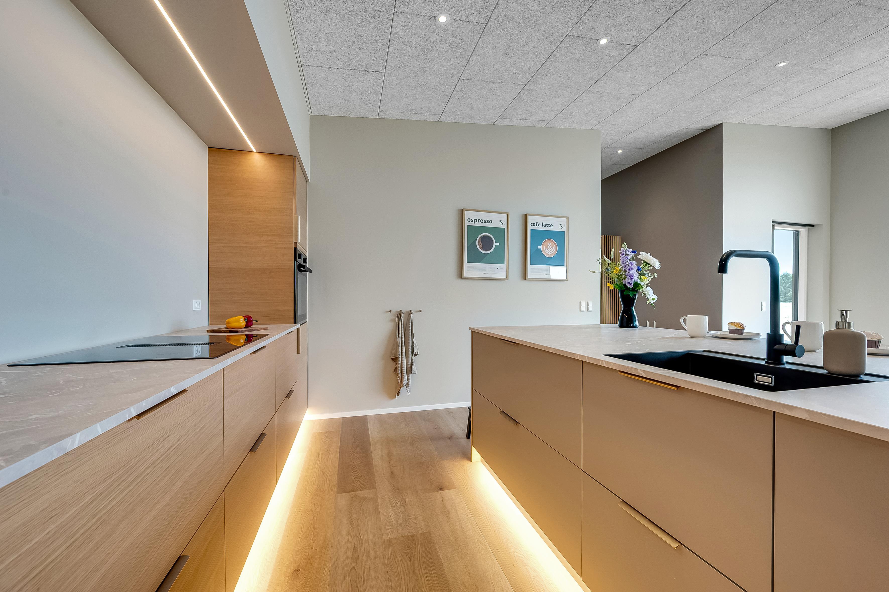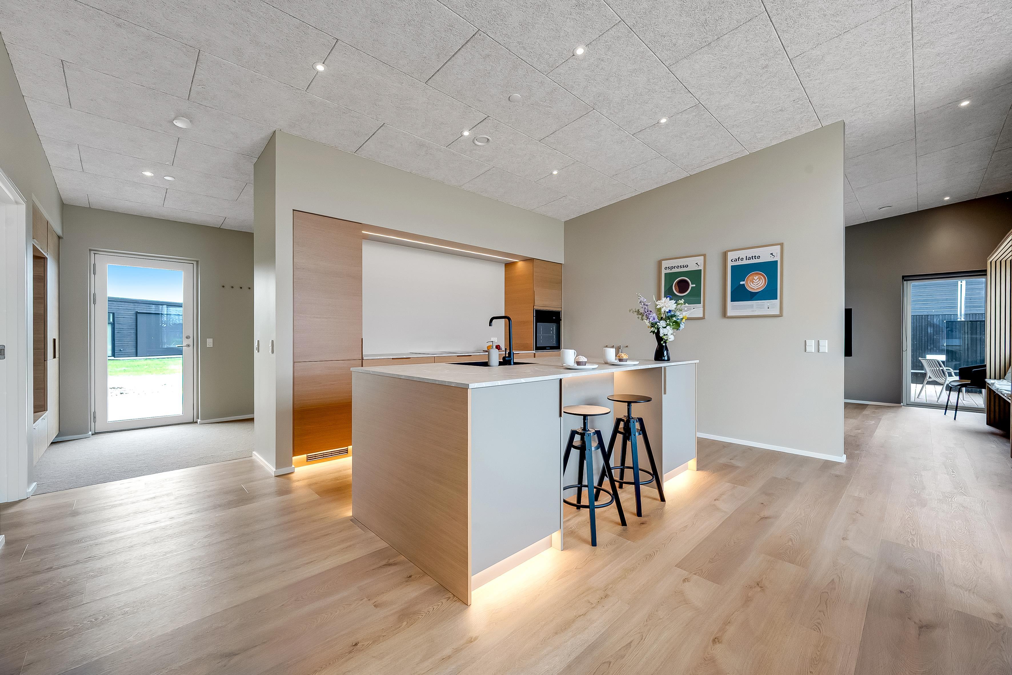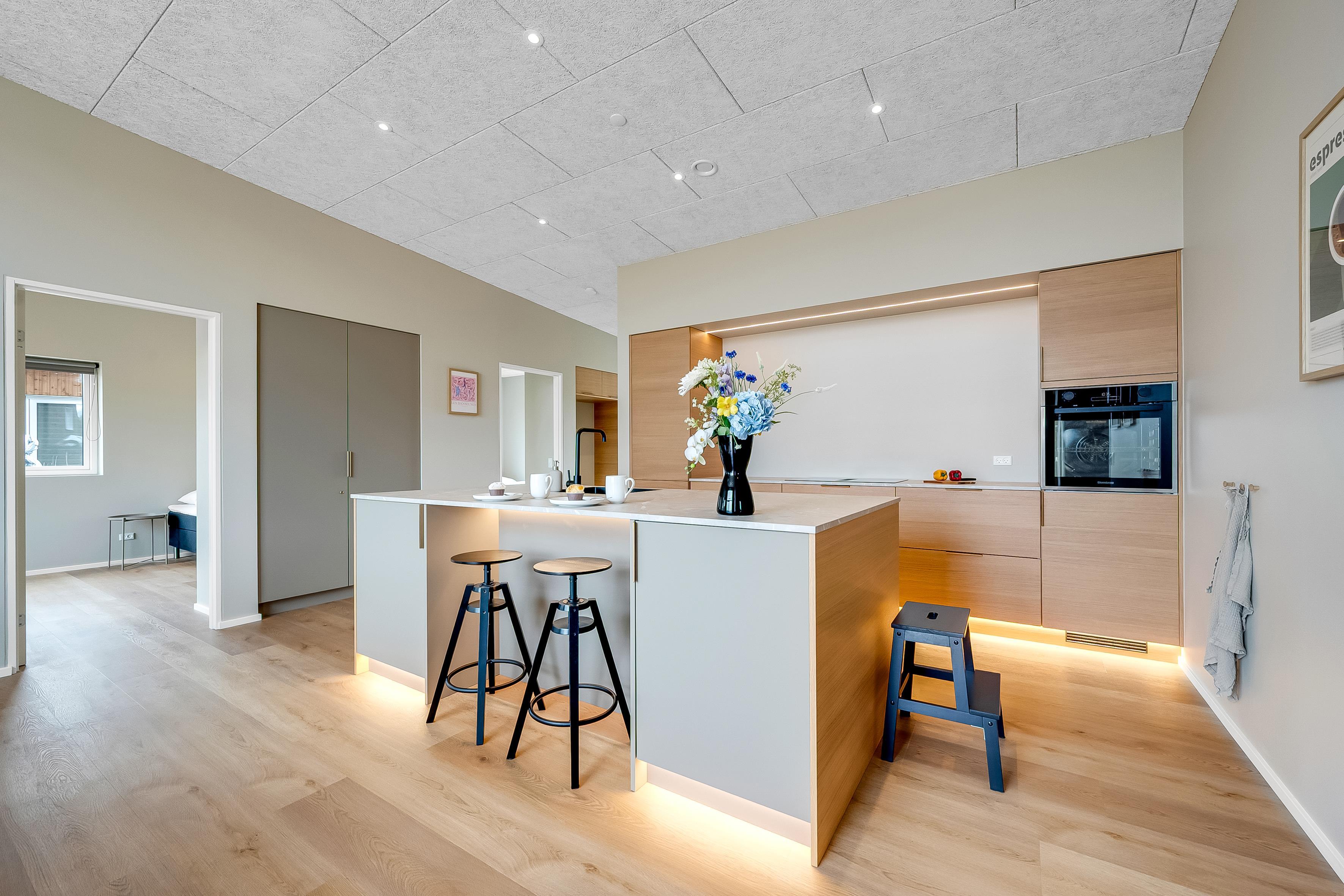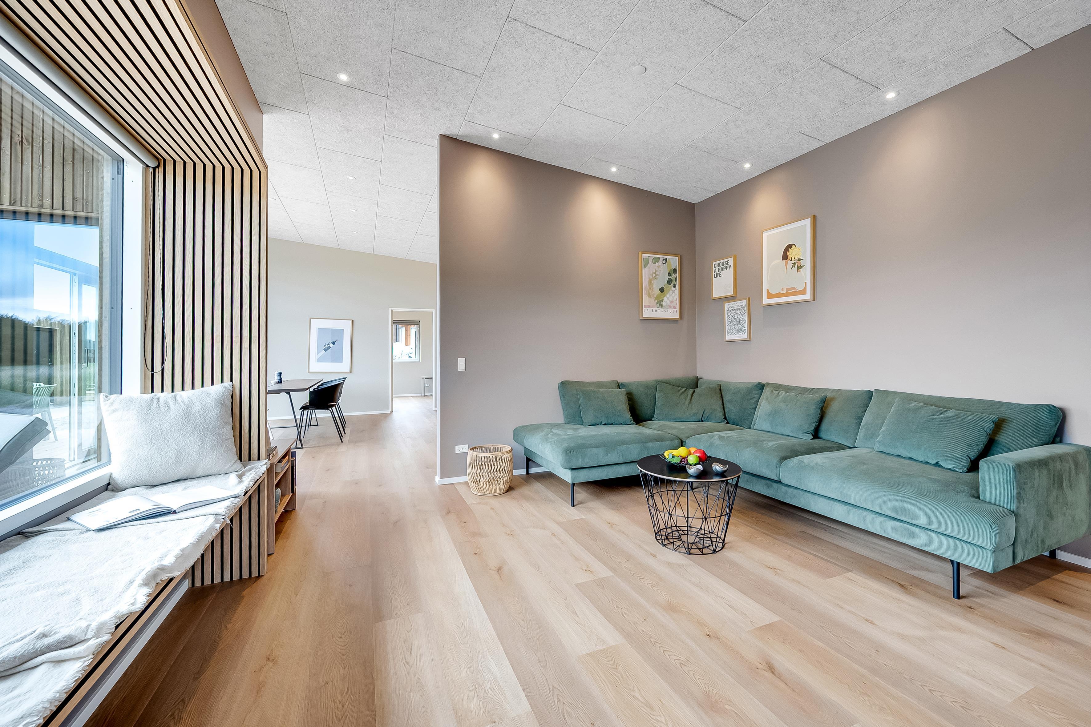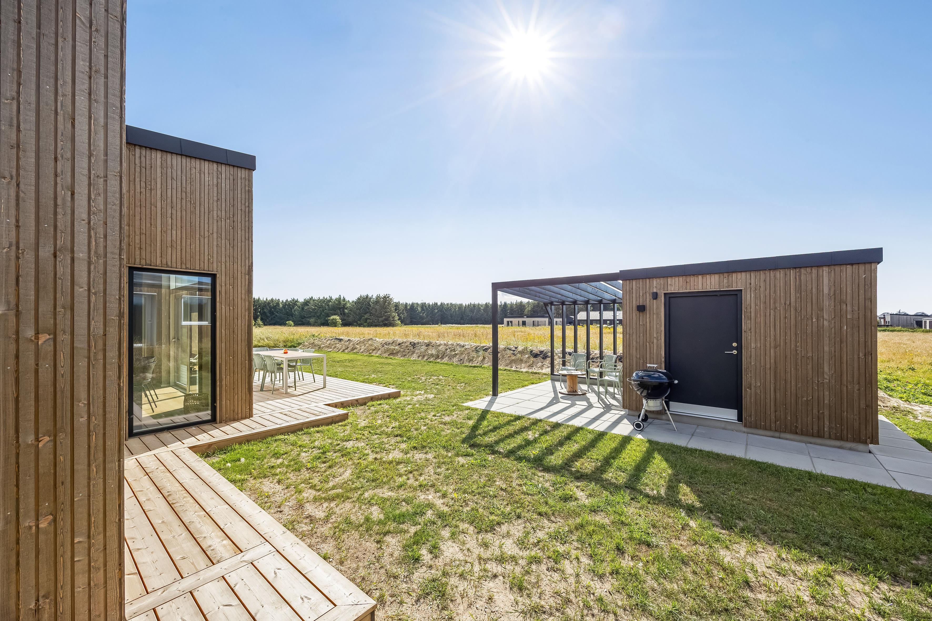Dette nybyggede sommerhus giver plads til 8 gæster samt et barn. De åbne og lyse rum skaber en indbydende stemning, og den stilrene indretning vidner om fokus på kvalitet og detaljer. Hjemmets hjerte er det store opholdsrum, hvor køkken-alrummet og den hyggelige sofaafdeling smelter sammen. Badeværelserne er rummelige og elegant indrettede, hvilket understreger husets høje standard.