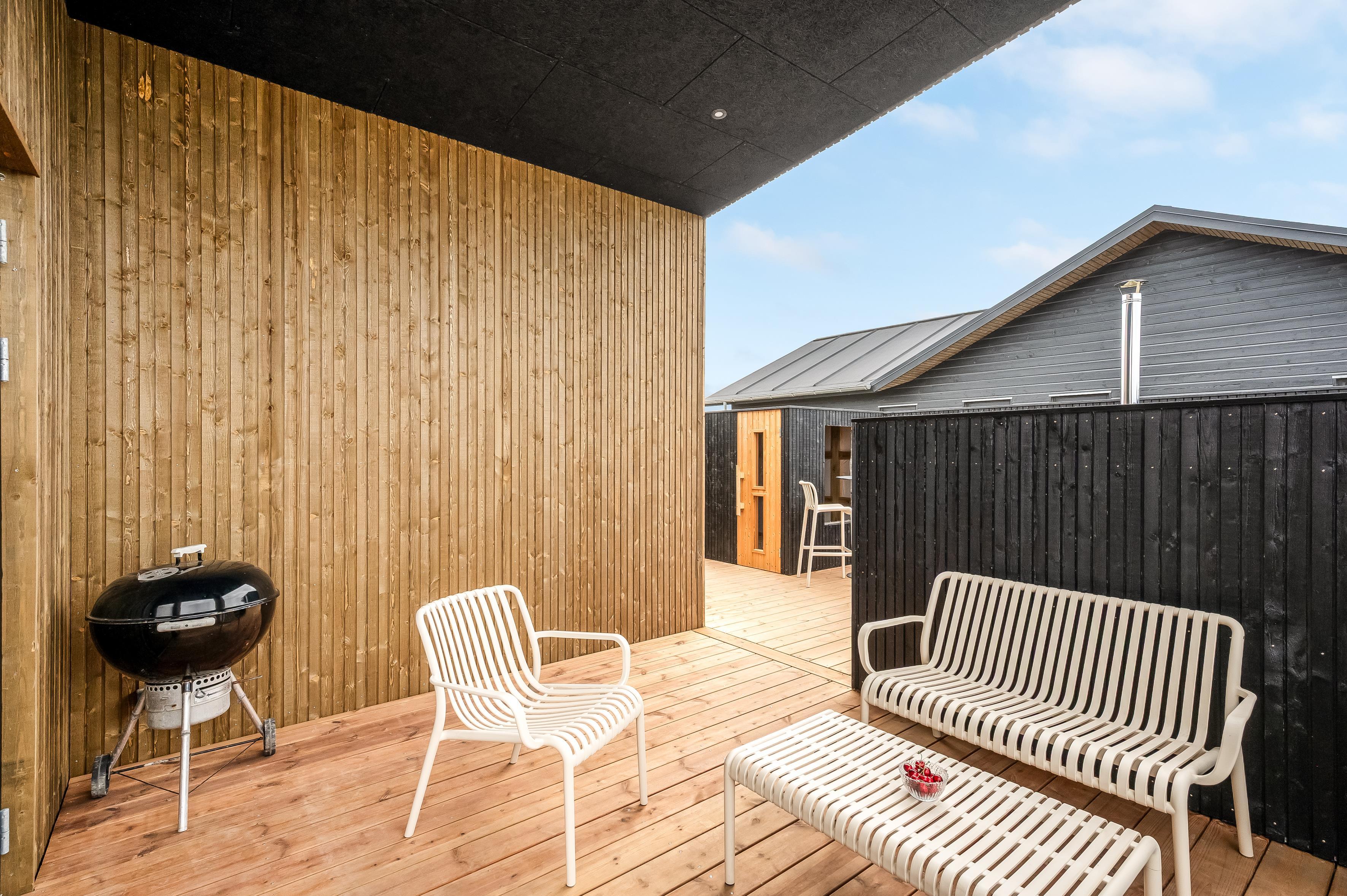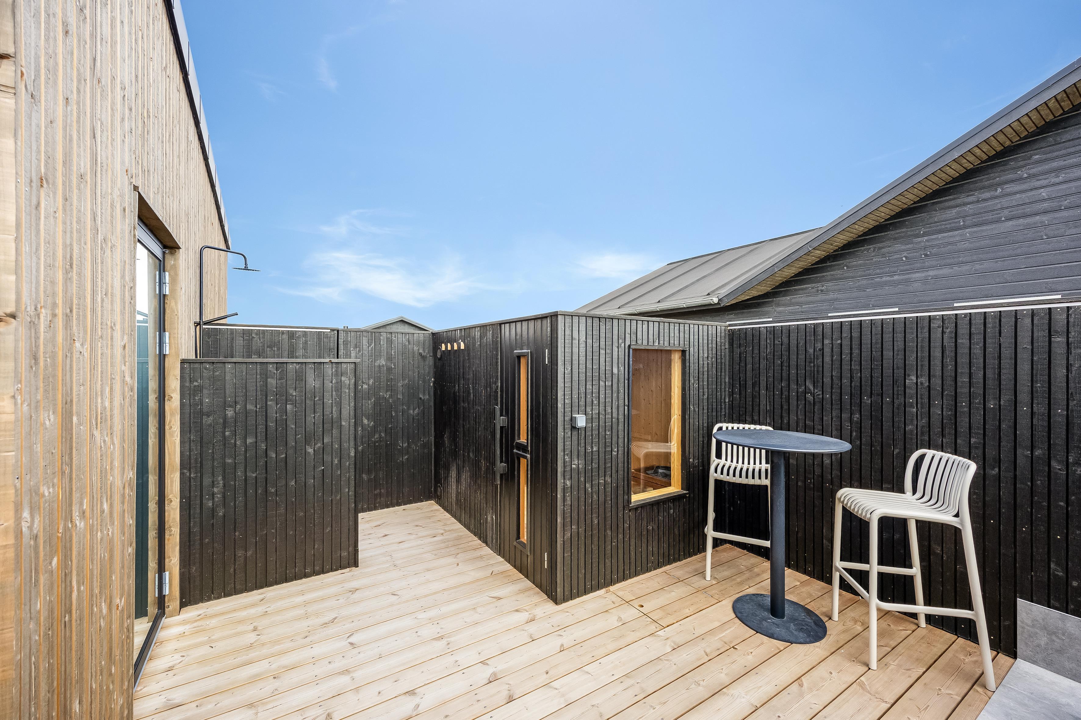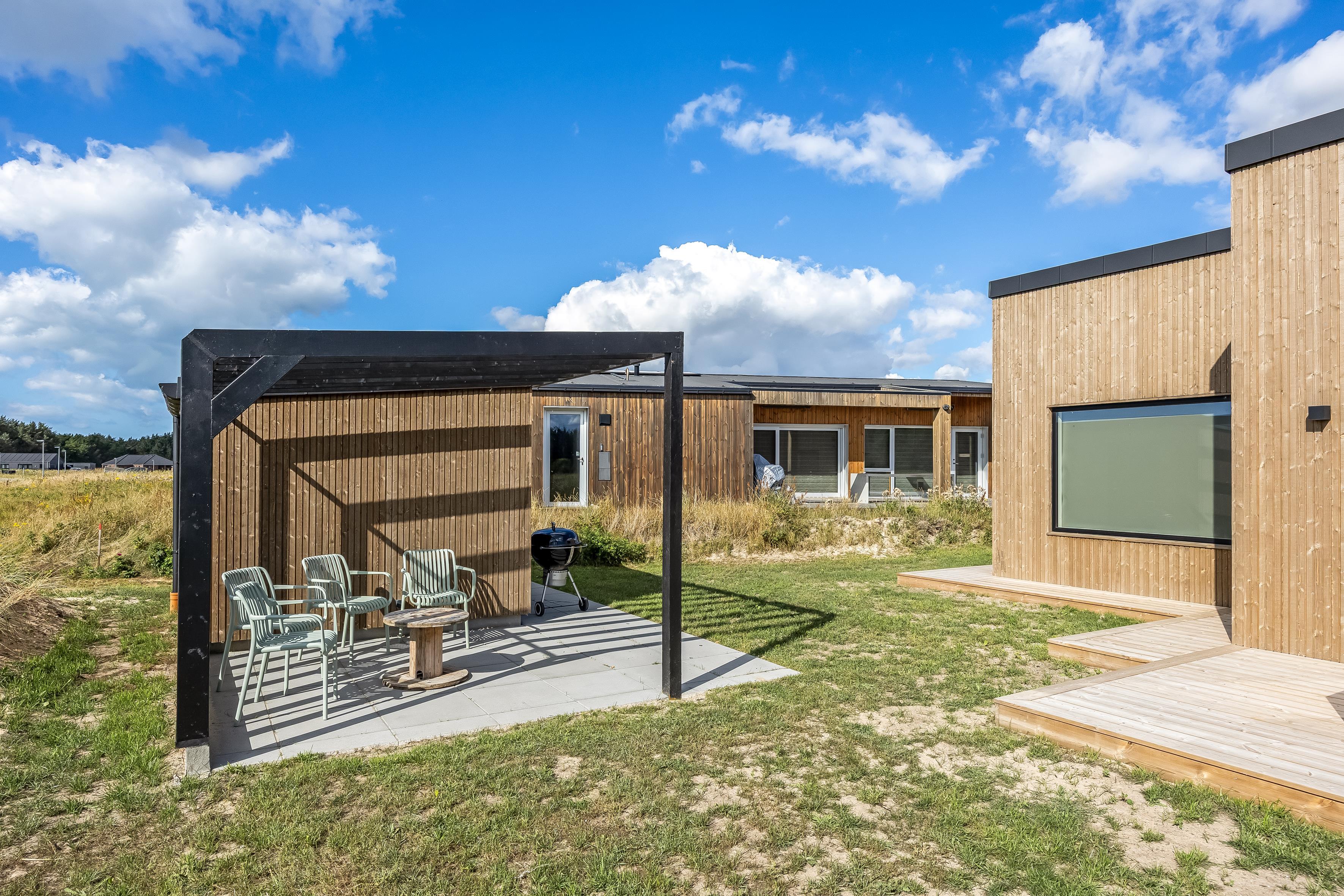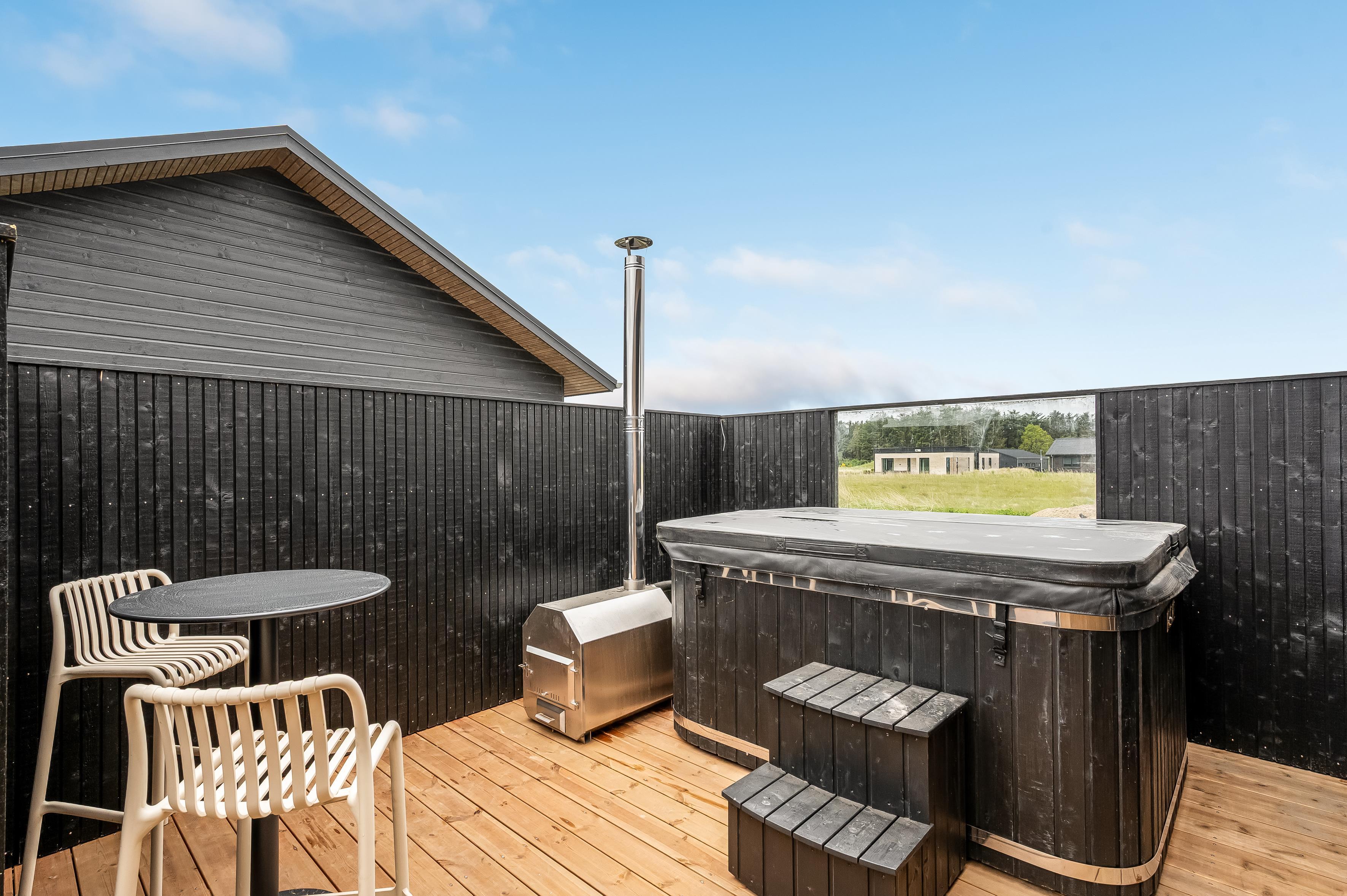 Nybygget sommerhus i Løkken med plads til 8, spa, flere terrasser og kort afstand til strand og by.