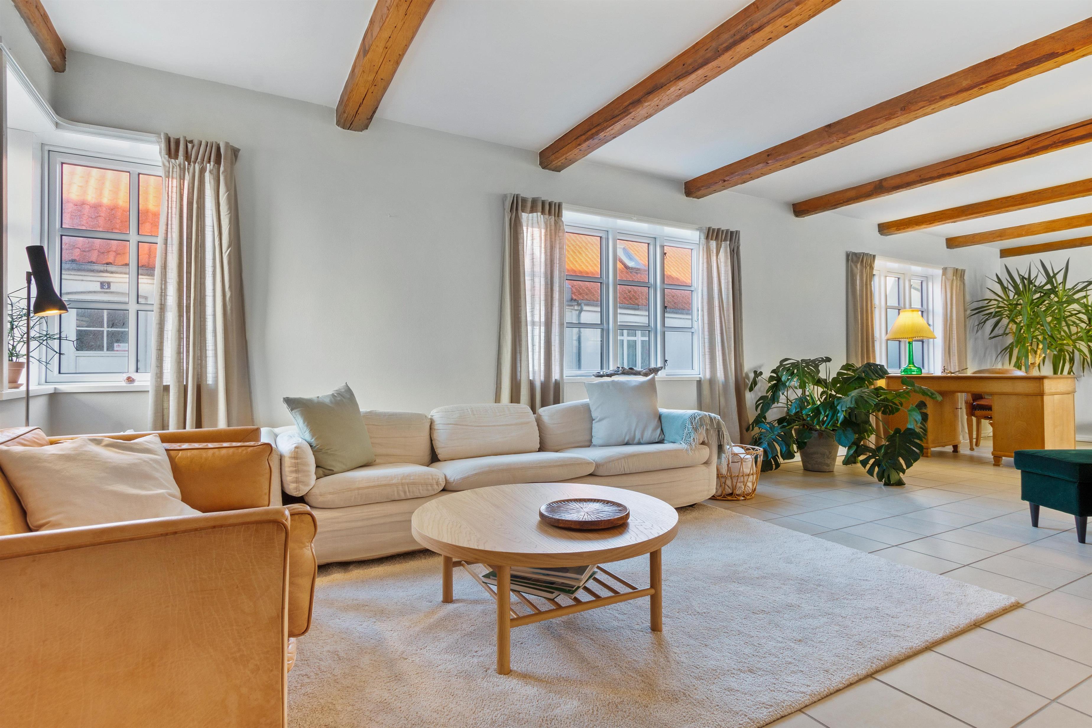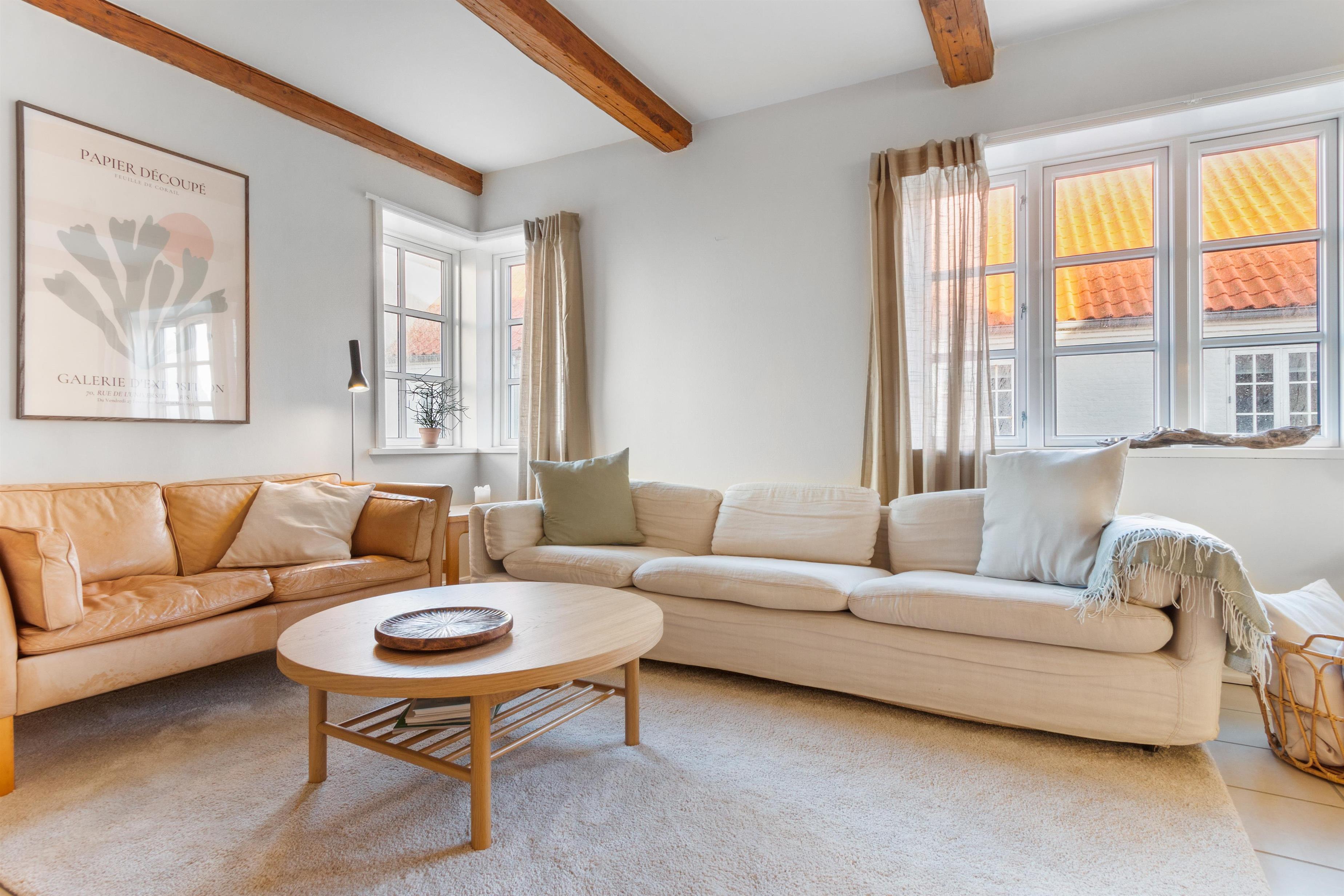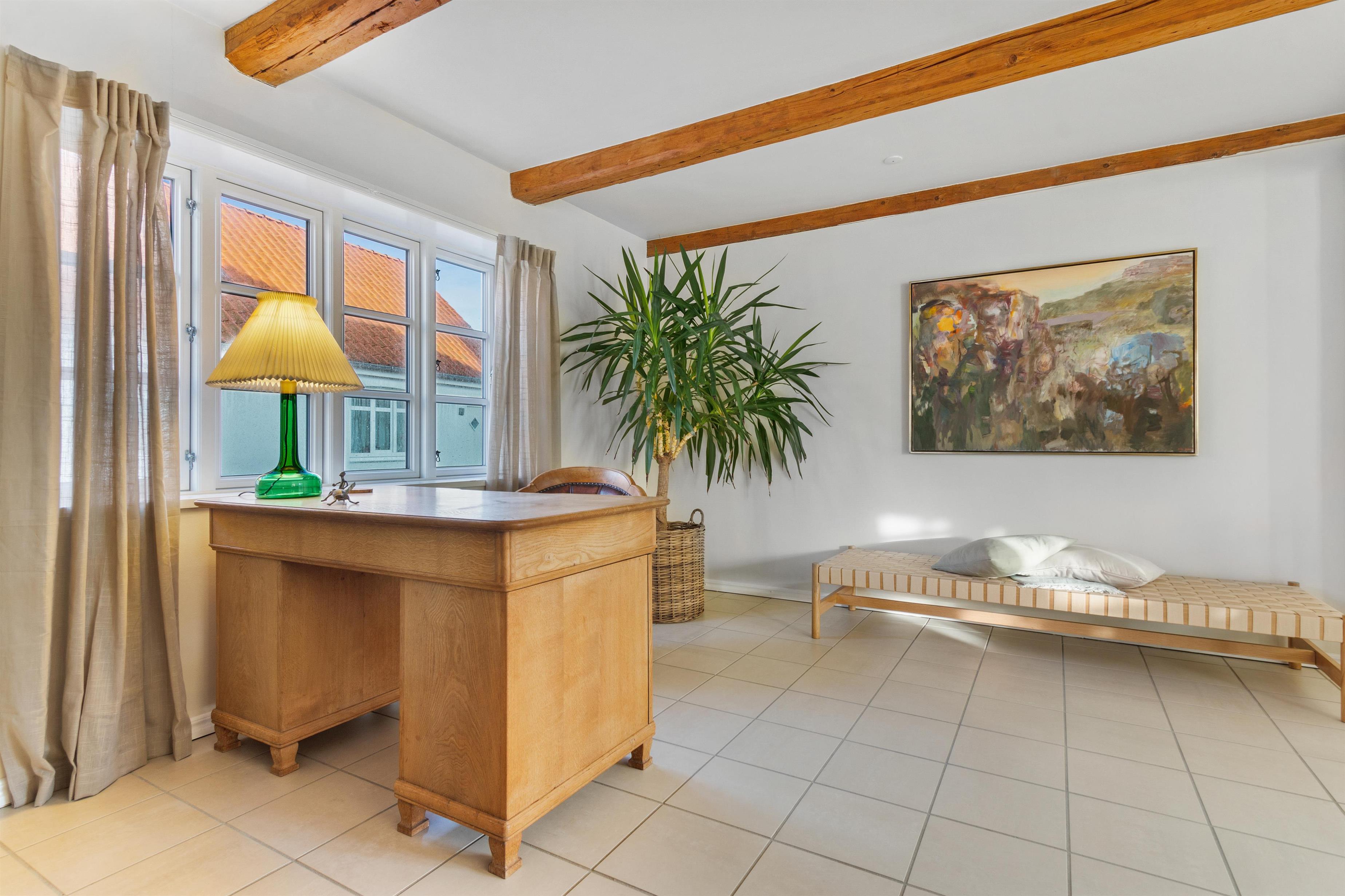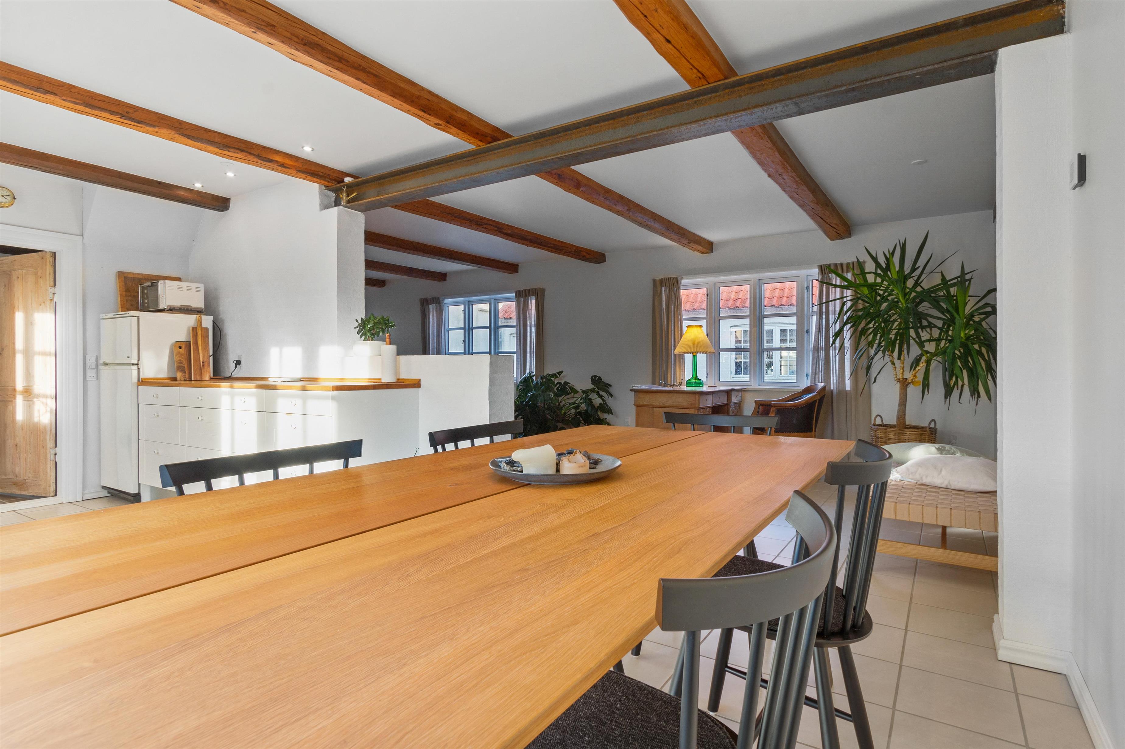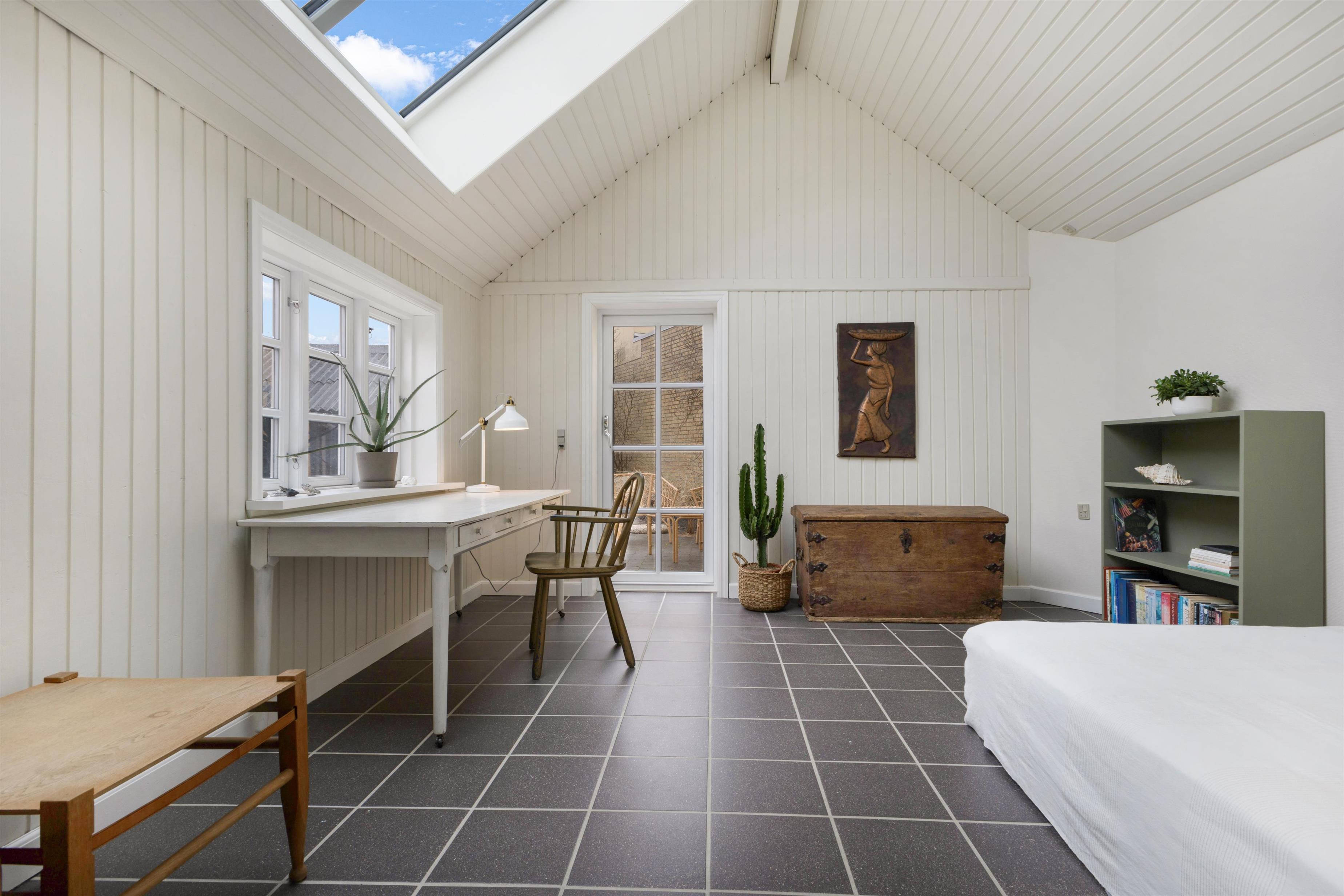 Indendørs finder du en velindrettet stue, der inviterer til fælles- og individuelle aktiviteter. Fra hygge- og fjernsynshjørnet til det indbydende læseområde og den praktiske skrivebordsplads, er stuen designet til at imødekomme alle behov. Der er et dejligt loungeområde i form af solstuen, som vender ud mod husets skønne gårdhave.