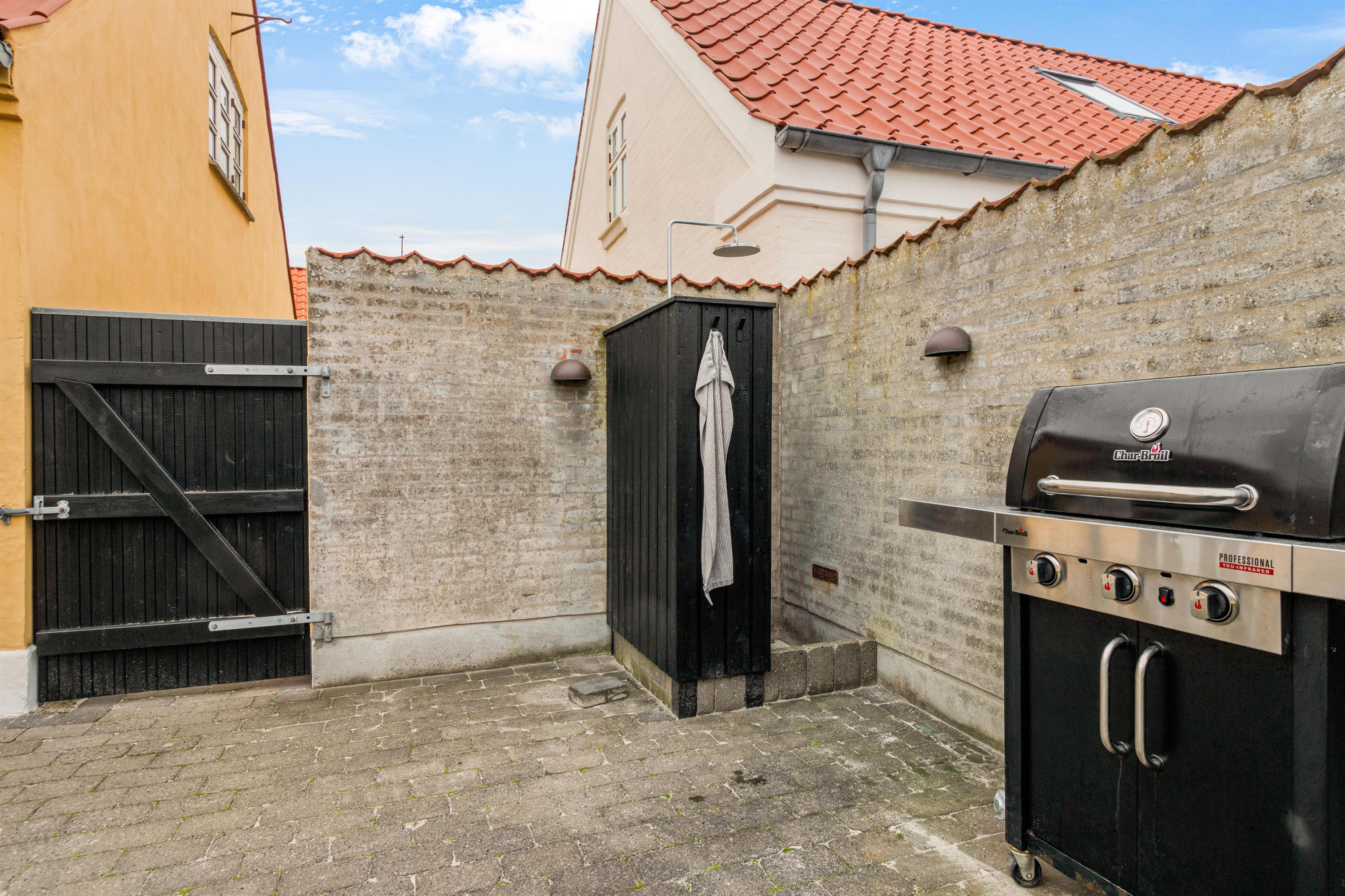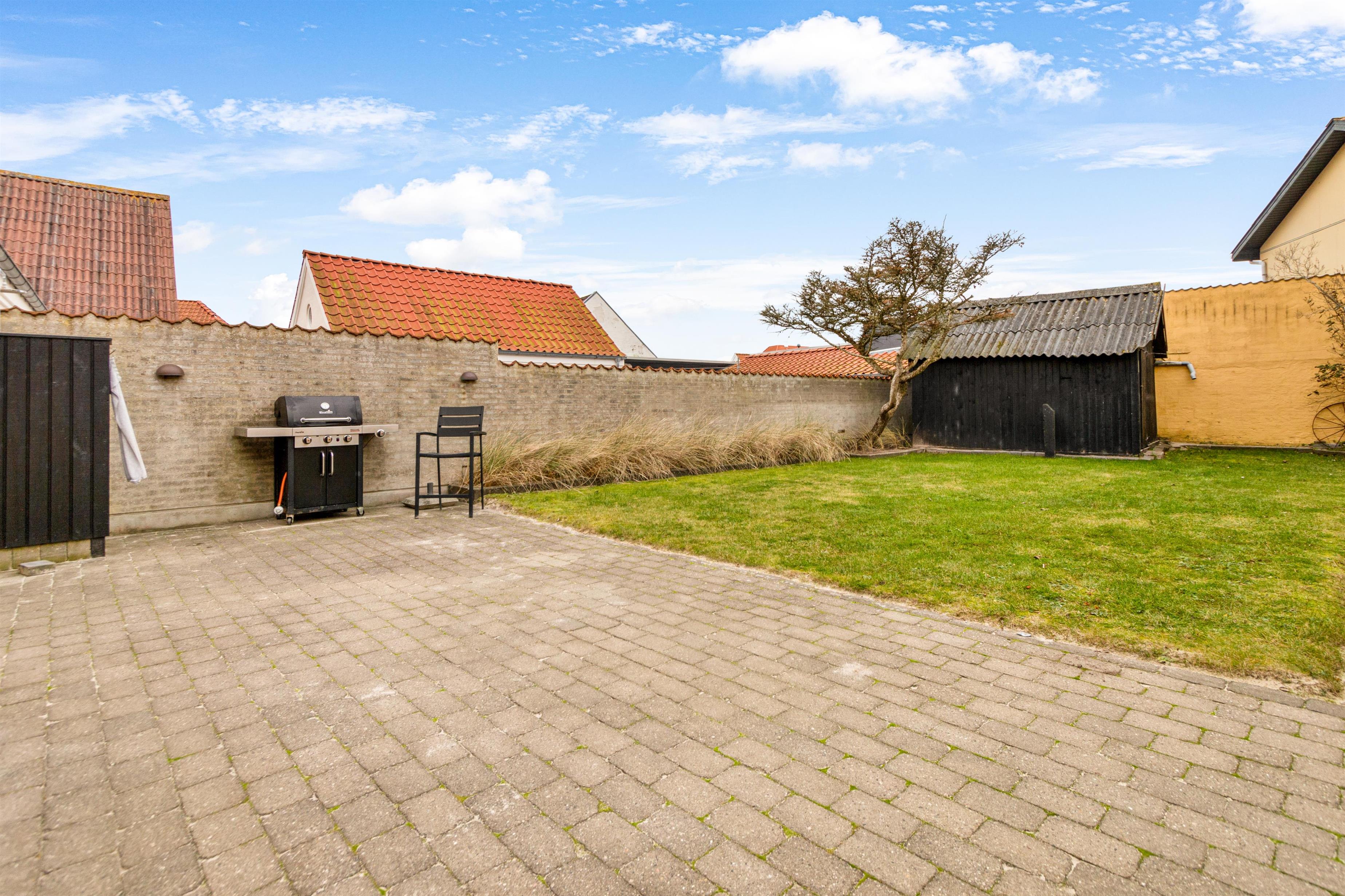 Gårdhaven indbefatter spise- og loungeområde samt græsplæne. Haven er lukket og ugeneret og ideel til afslapning, leg og solbadning. Med siddepladser til 6 personer i både lounge- og spiseområdet kan du nyde udendørslivet til fulde. Haven har desuden en stor gasgrill og en forfriskende udendørsbruser til efter en dag på stranden, der blot er 200 meter væk.