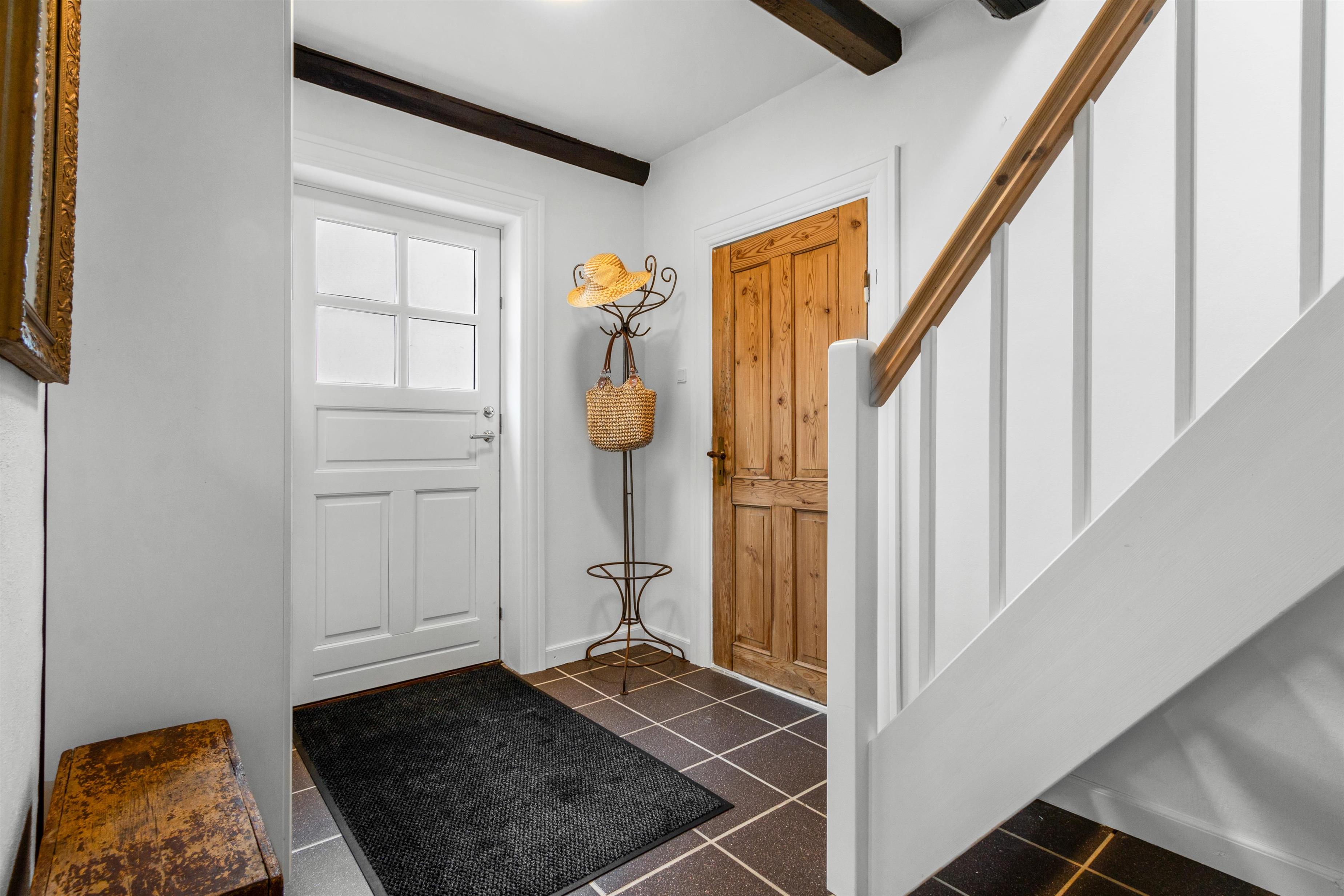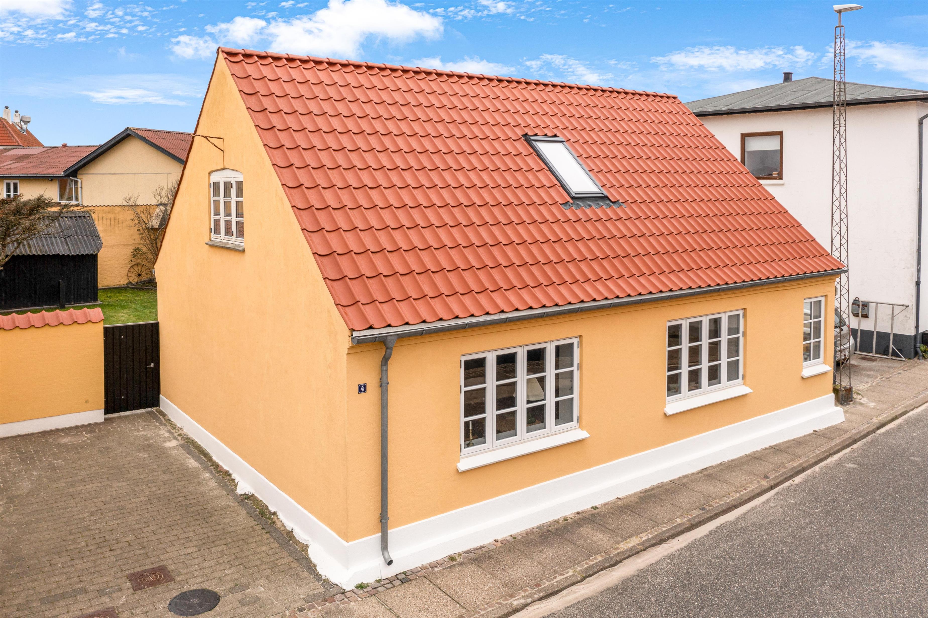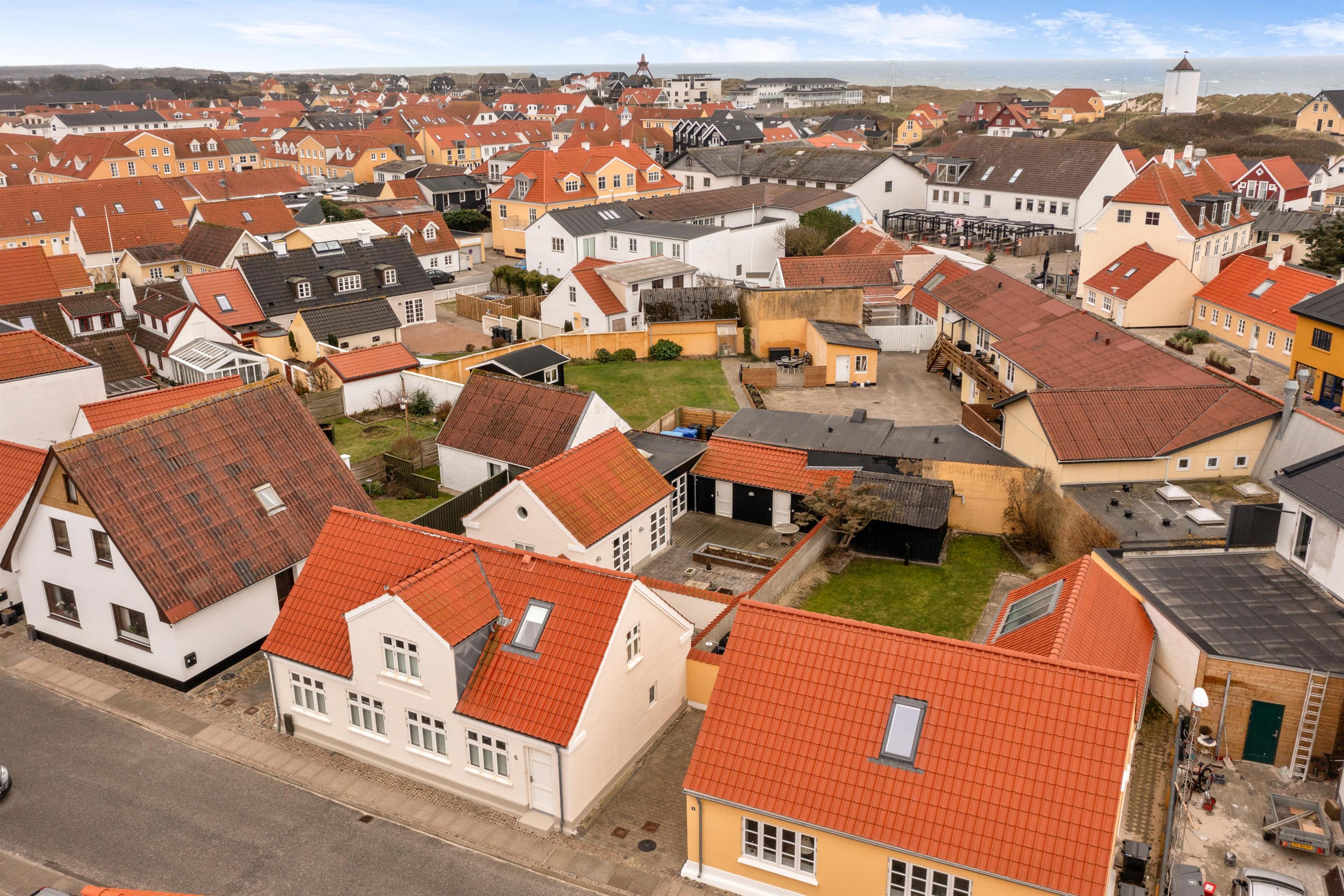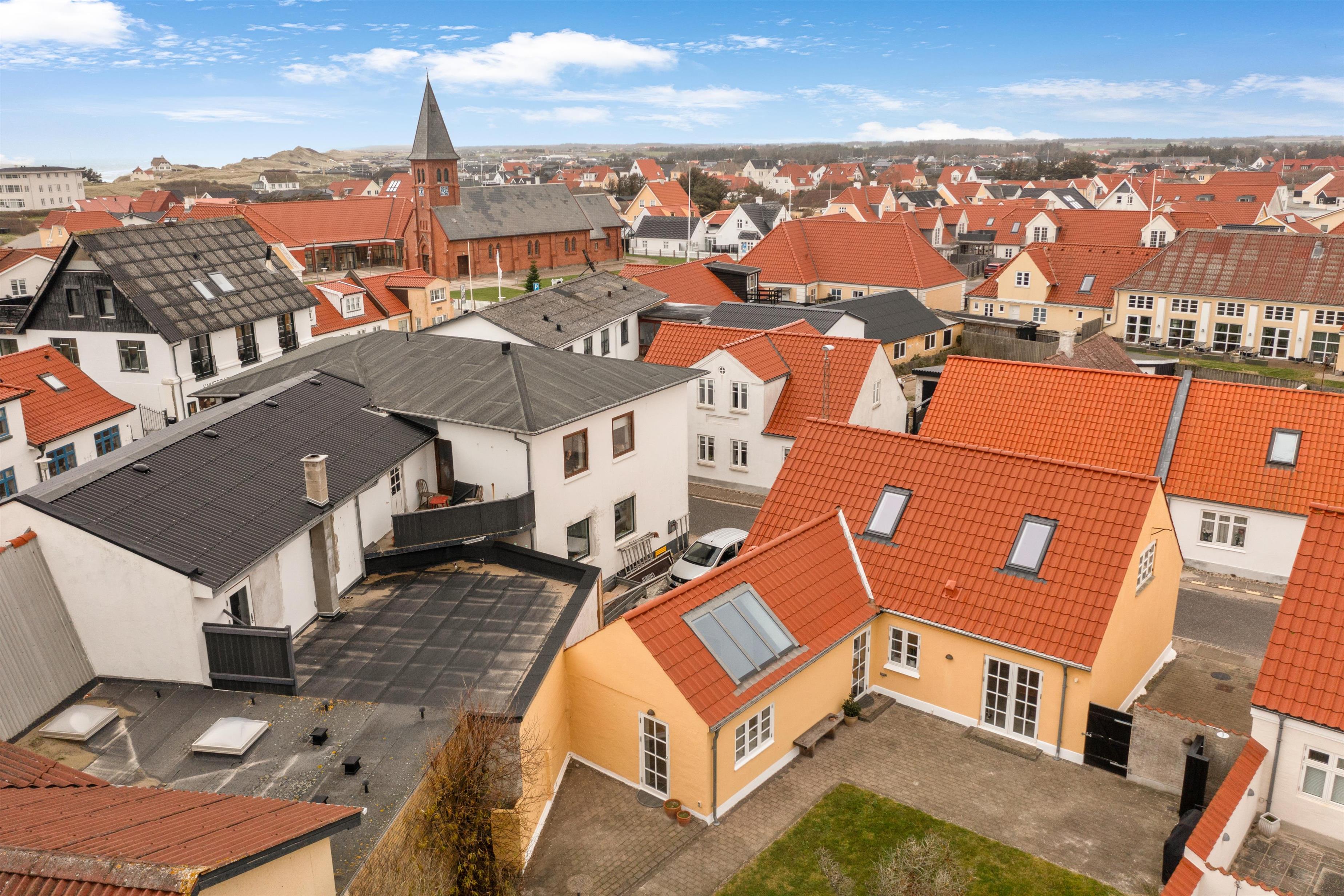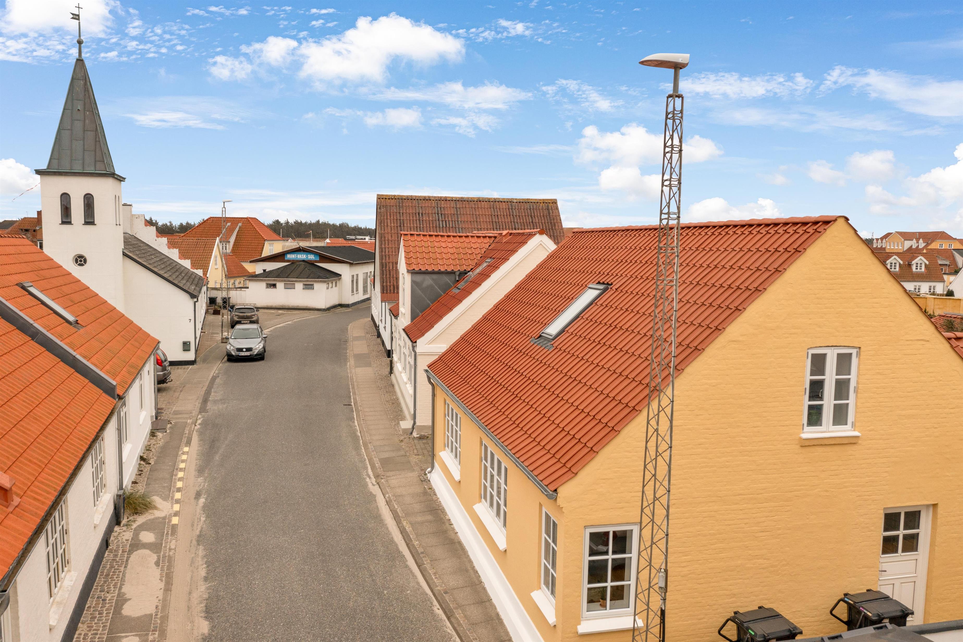 På venstre side af huset finder du indgangen til haven, terrassen og huset bag den private parkeringsplads. Kirkegade er super centralt beliggende, kun et stenkast væk fra byens centrum, hvilket gør det let at udforske Løkkens charmerende gader og stræder. Der er desuden mulighed for at parkere på selve Kirkegade.