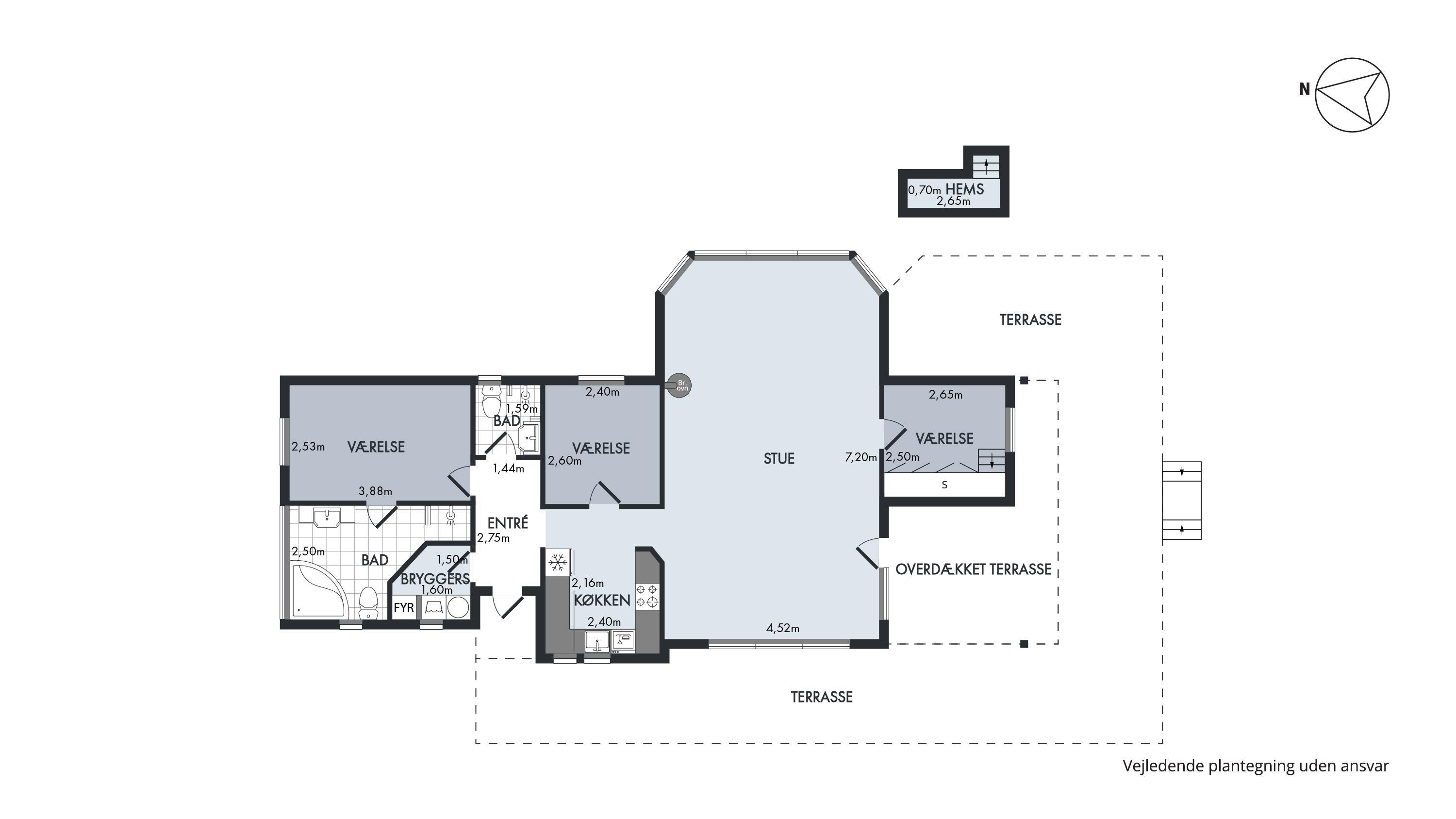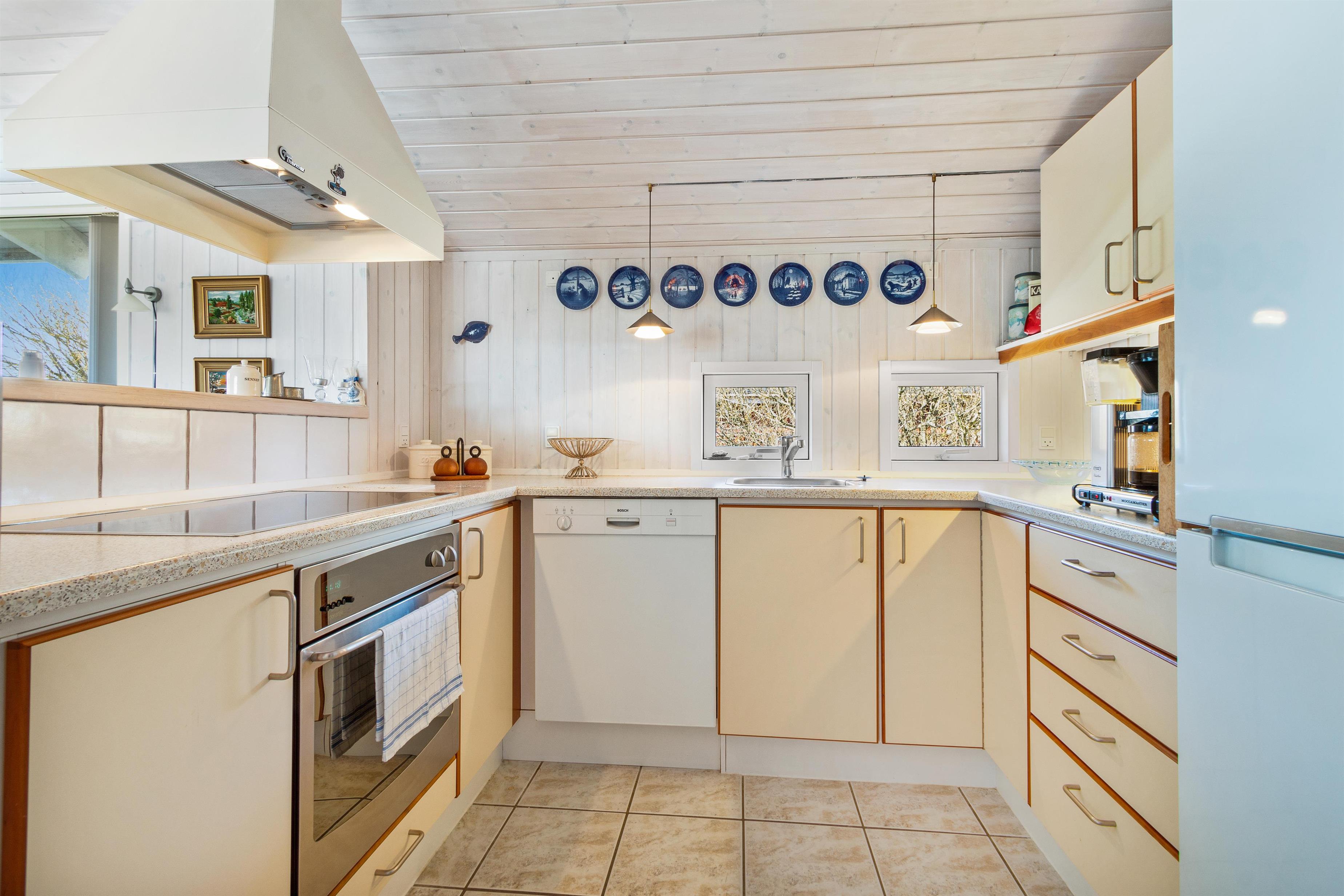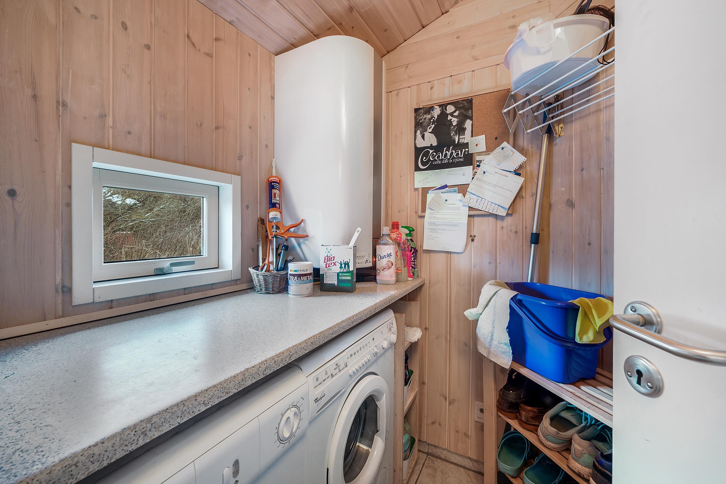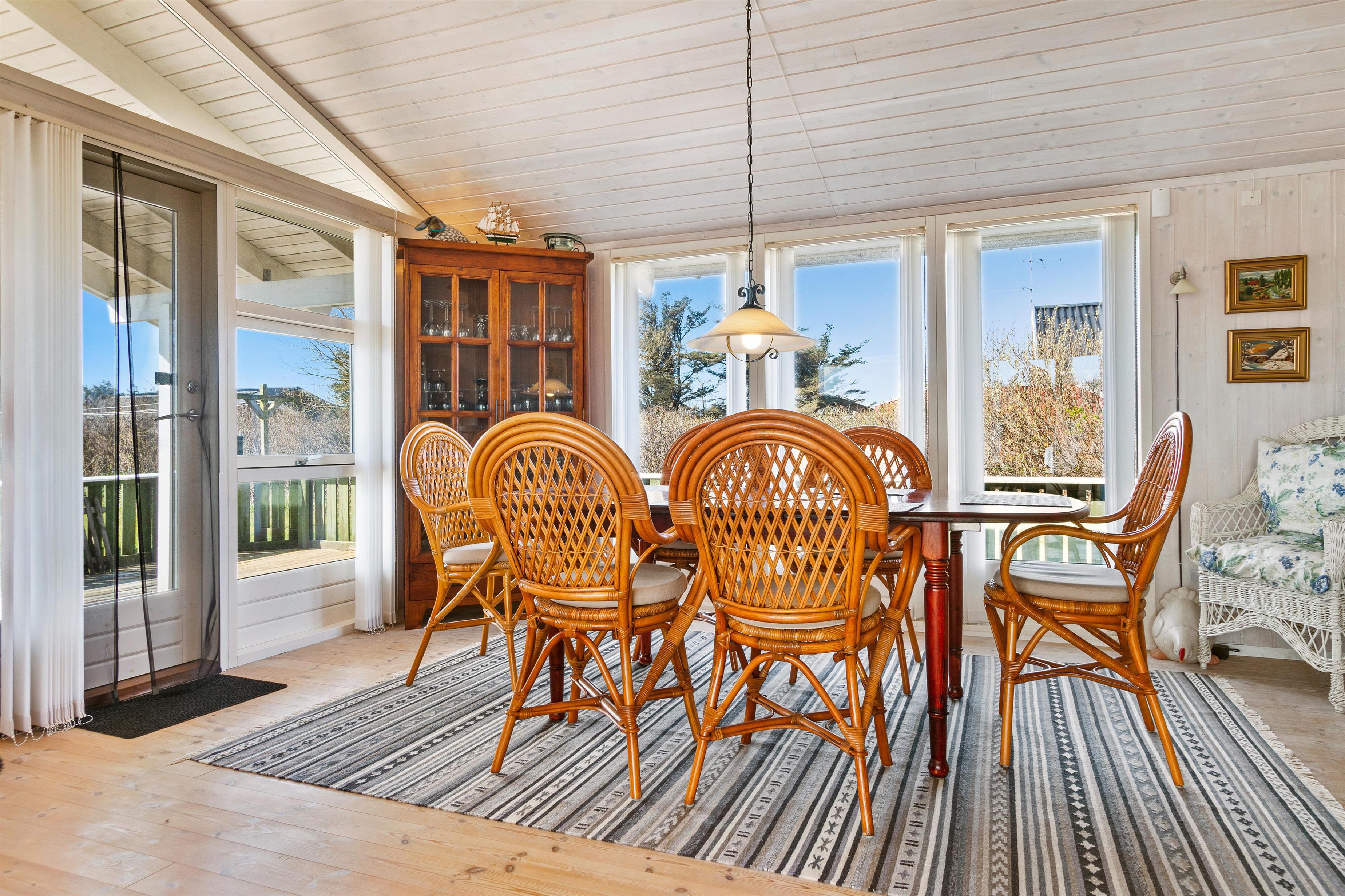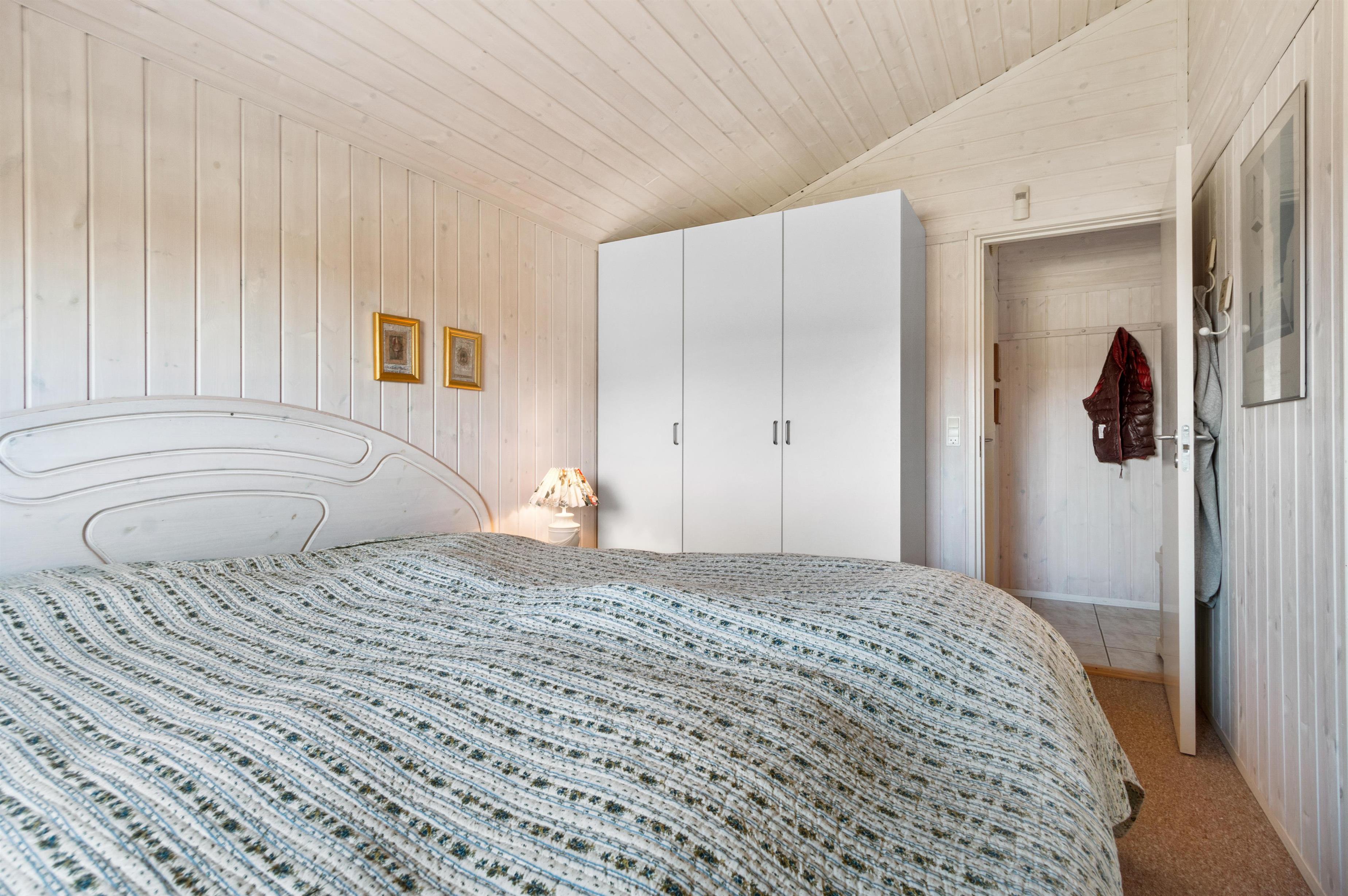 Sommerhuset er som nævnt på 91 kvadratmeter og i en rigtig flot stand. Her emmer af ægte feriestemning som i en traditionel feriebolig. Det er praktisk indrettet med bryggers og 5 sovepladser. Netop når man træder ind i huset, er der adgang til et dejligt badeværelse til venstre, som inkluderer en separat bruseniche og en spa. Fortsætter man lige ud, vil man komme ind i det andet badeværelse. Der er tre soverum og to badeværelser - praktisk indrettet med god plads til 7 personer. Dejlig åbent køkken/alrum/stue med brændeovn og et bryggers med vaskemaskine og tørretumbler. OBS. terrassen er blevet åbnet siden billederne blev taget. Ferieboligen er røgfri og ungdomsgrupper er ikke tilladt.