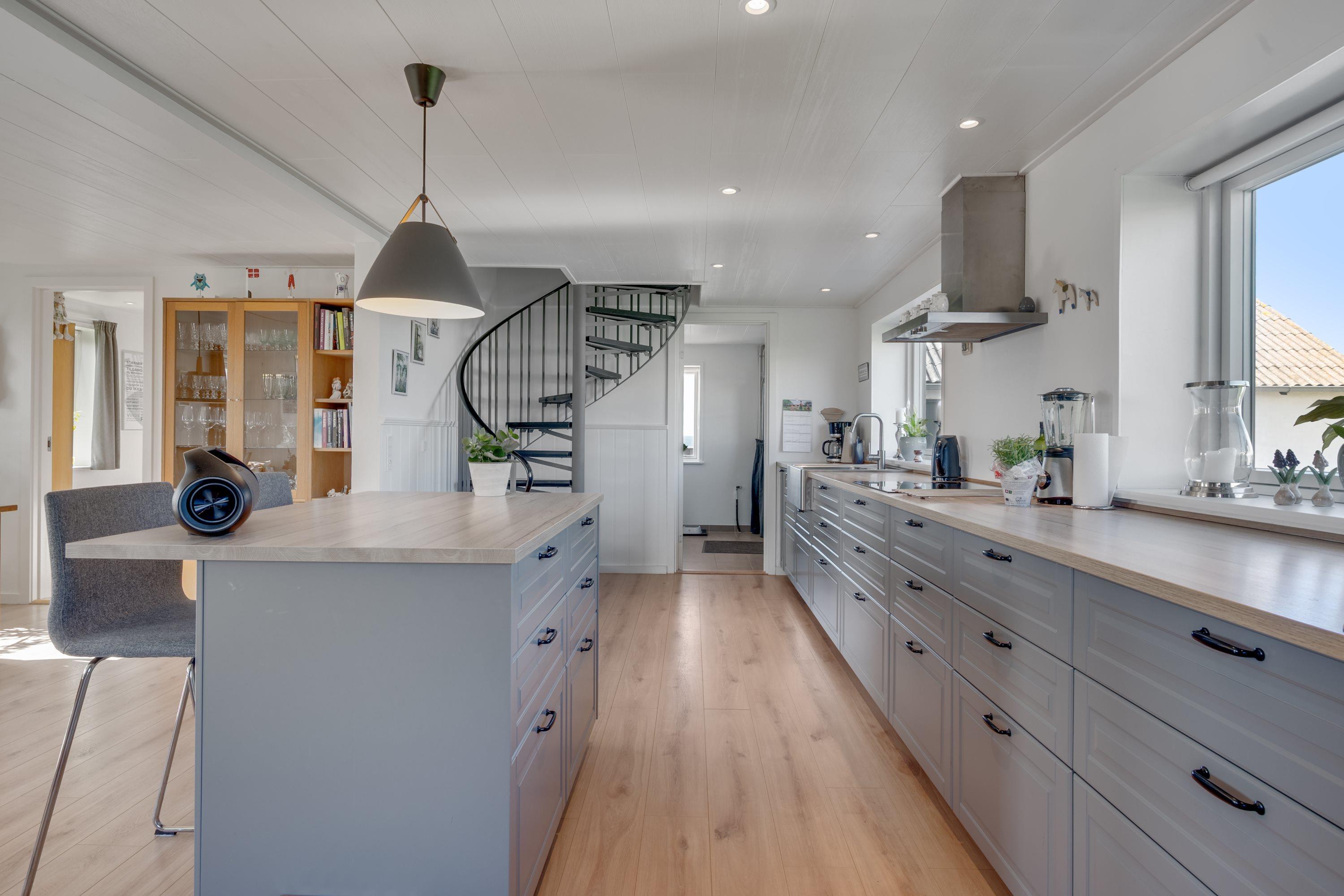 Her på Lyngby Møllevej 4 ligger dette dejlige sommerhus, som er et stenkast fra Vesterhavet og centralt placeret i Nørre Lyngby. Huset er på 98 kvadratmeter fordelt på to plan - NB førstesalen er pt. lukket grundet renovering - og det har en yderst charmerende stil, da det er en villa bygget i 1909 med gesimser og klar symmetri. Her er plads til 2+2 personer i hhv. soveværelse samt stue i stueetagen samt et husdyr. Senere kommer der sovepladser på 1. salen. Huset har et stort og lyst køkken/alrum og stue i åbent plan med den charmerende, snoede spindeltrappe op til 1. sal. Der er et dejligt badeværelse og soveværelset i stuen har dobbeltseng.