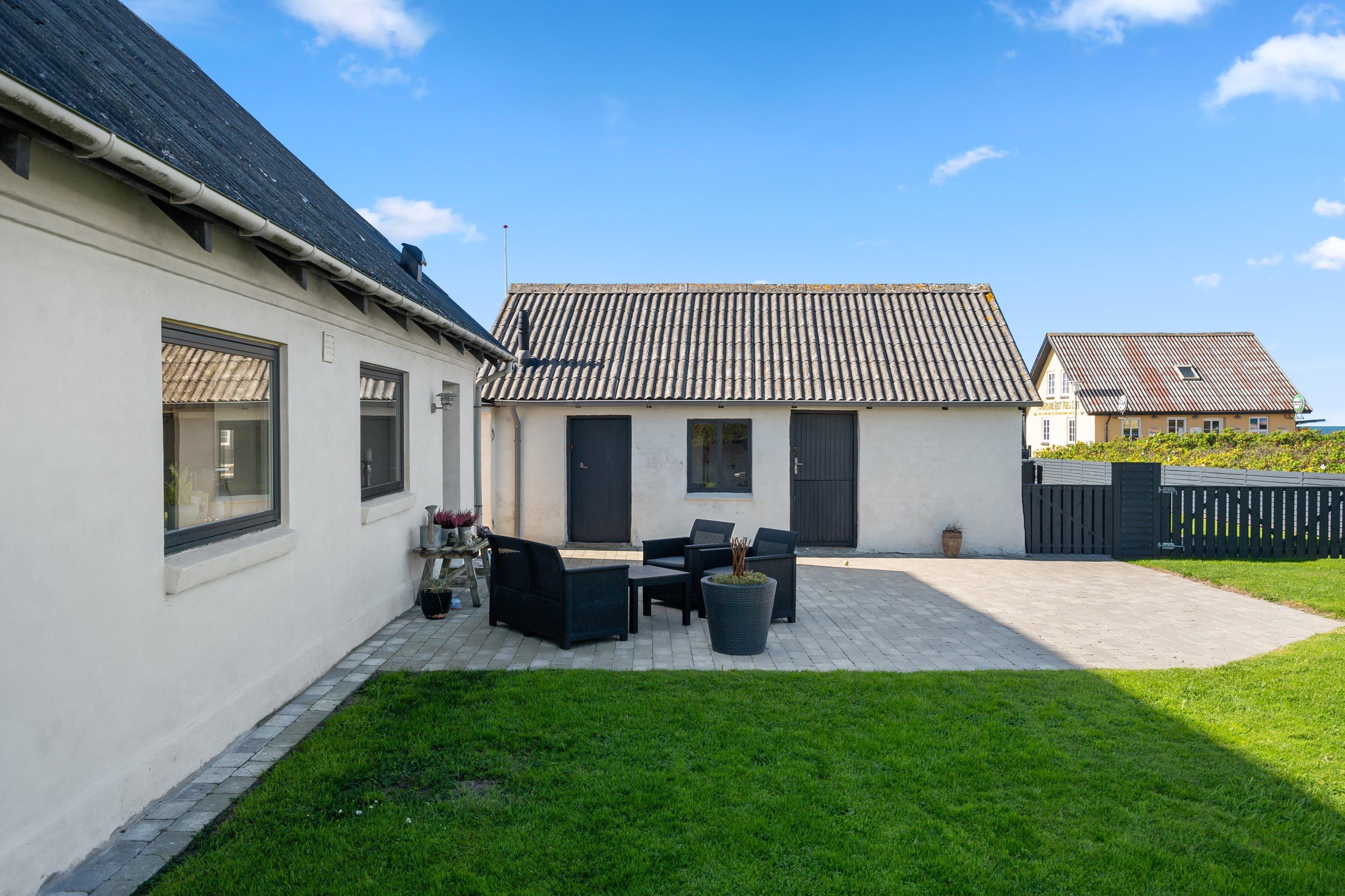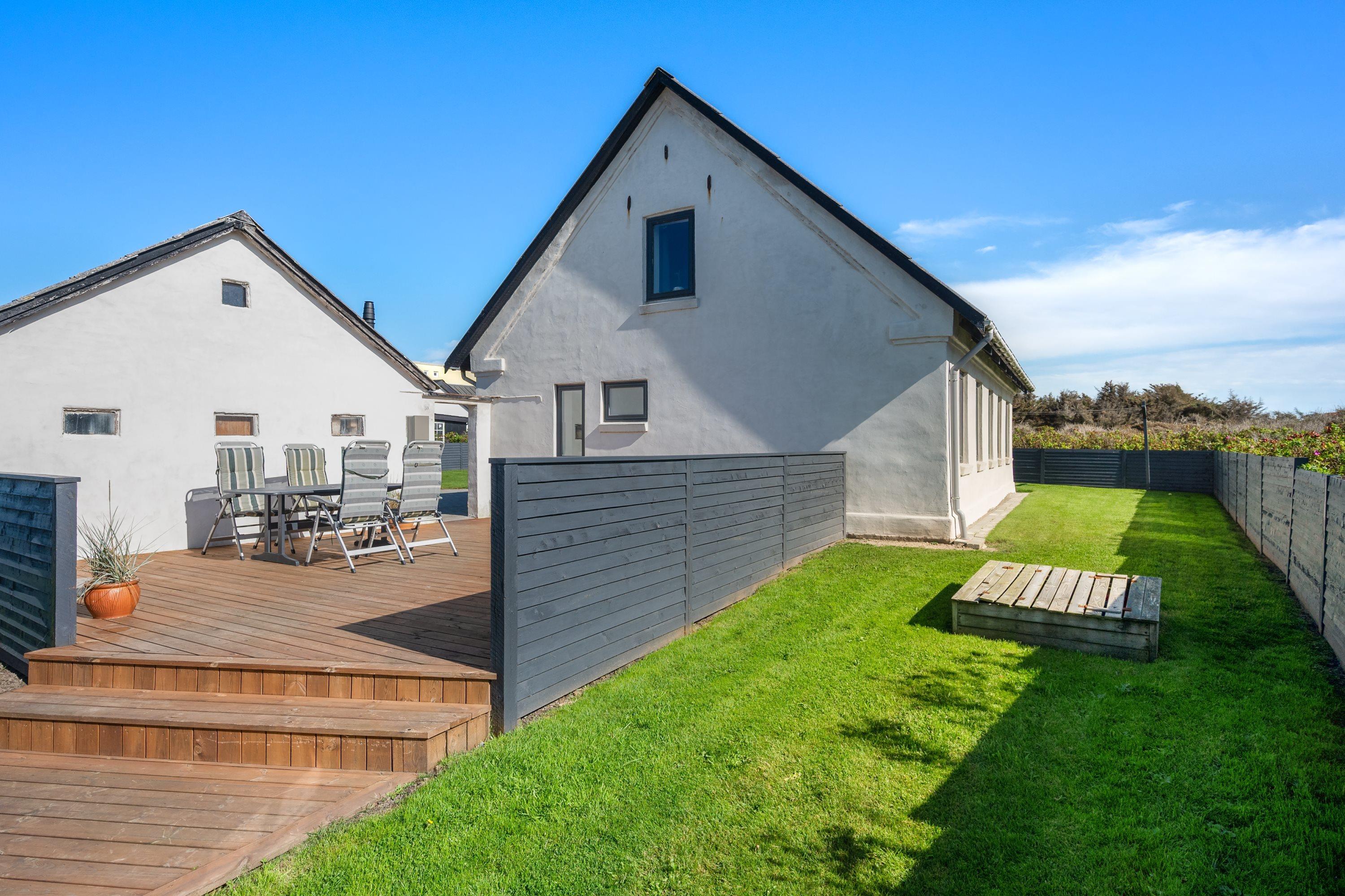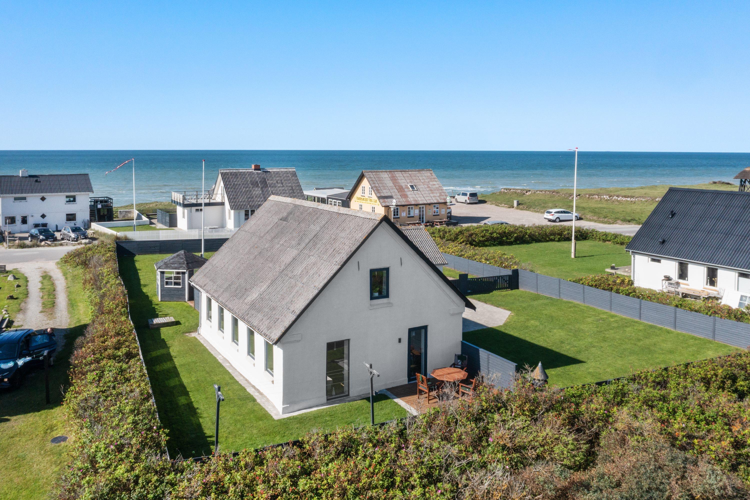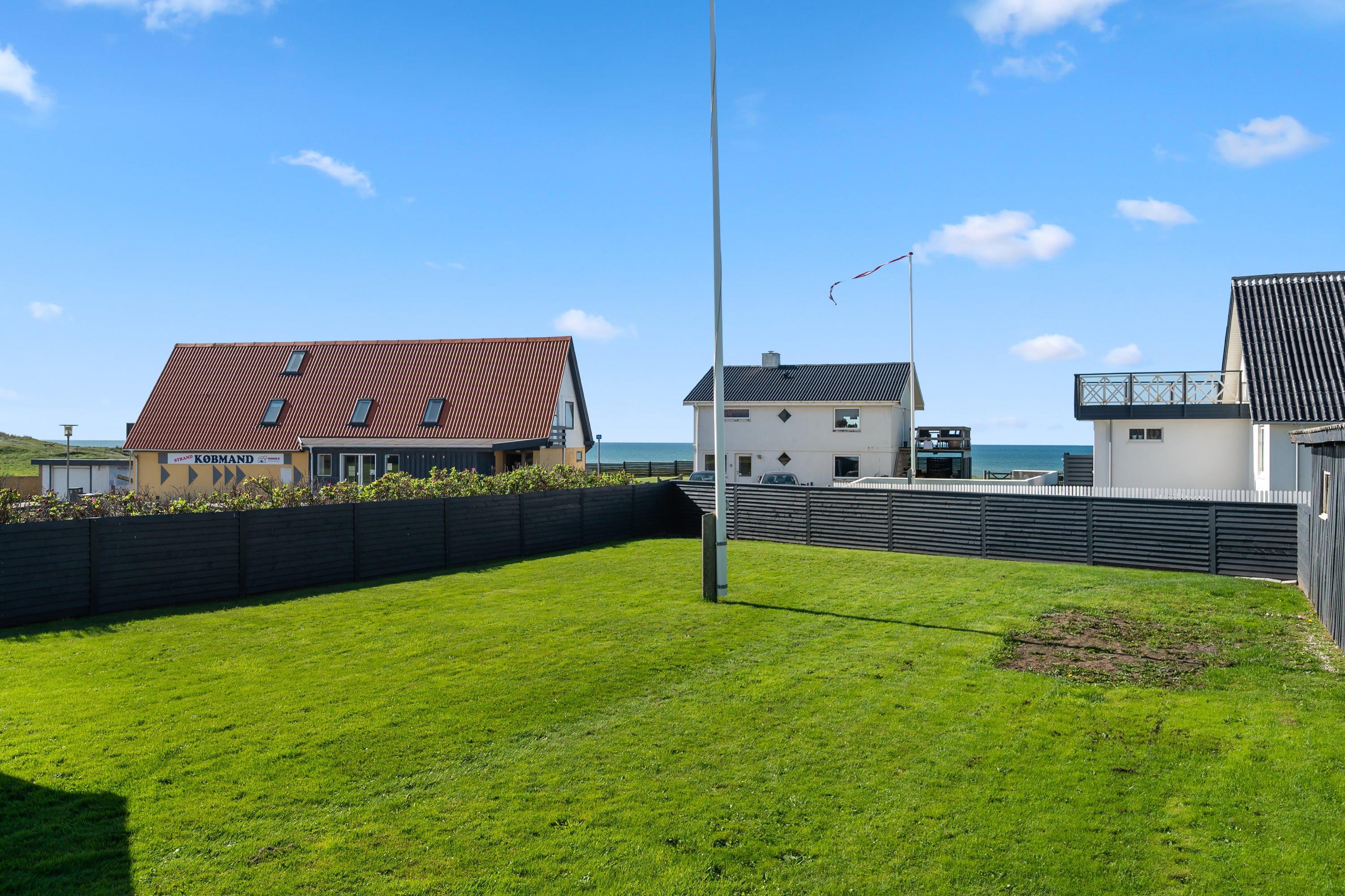 Selve grunden er på 906 kvadratmeter og har købmanden som genbo - købmanden har kun åbent i højsæsonen. Naturen er ramme med en klar udsigt til Vesterhavet. Her er skønne terrasser, og huset er omgivet af en dejlig plæne, der kan lukkes af, hvis man har sin firbenede ven med på ferie. Der er altså rig mulighed for at finde læ for vestenvinden, når den viser sine muskler. I Nørre Lyngby er der masser af rå natur og mange muligheder for gå- eller vandreture. Det populære Rubjerg Knude Fyr ligger i nærheden, og der er ti minutters kørsel til hhv. Løkken og Lønstrup, hvor der er rige muligheder for oplevelser af mangfoldig karakter.