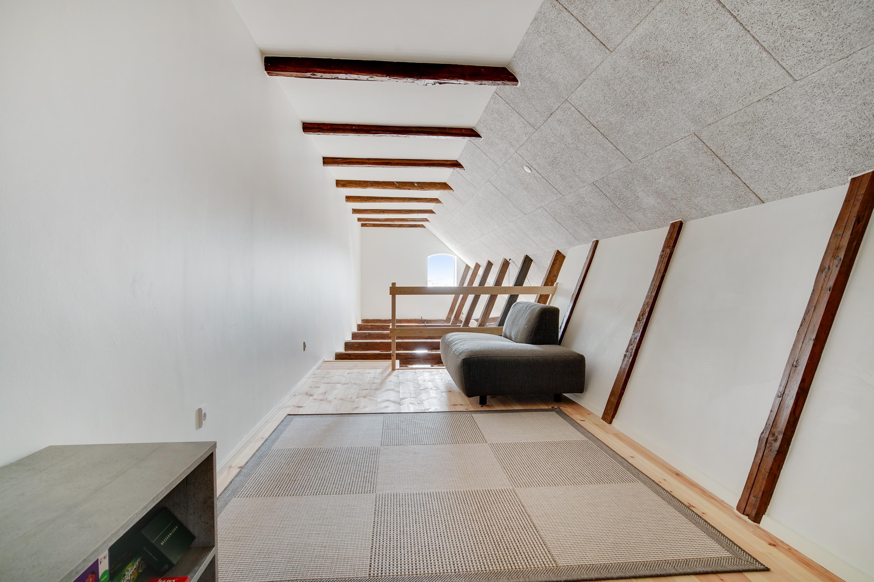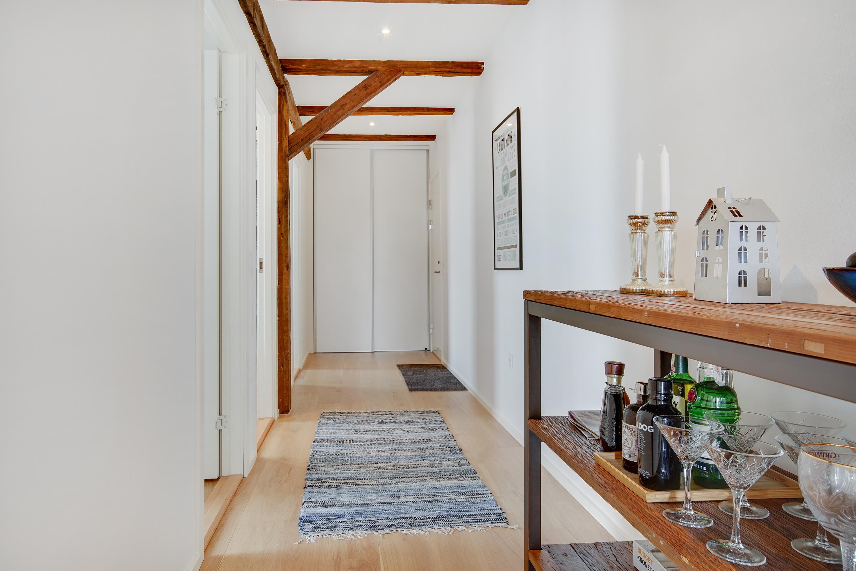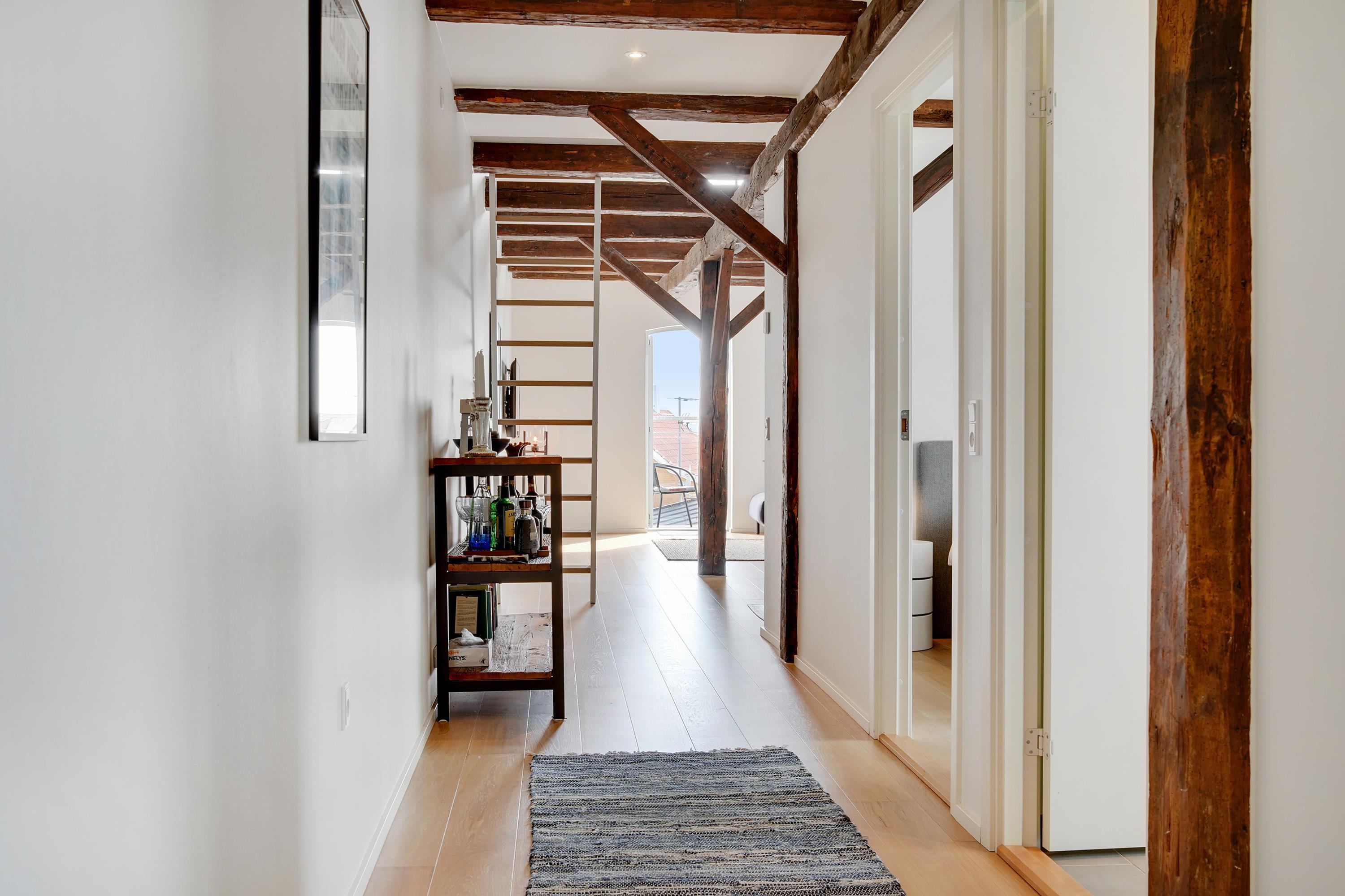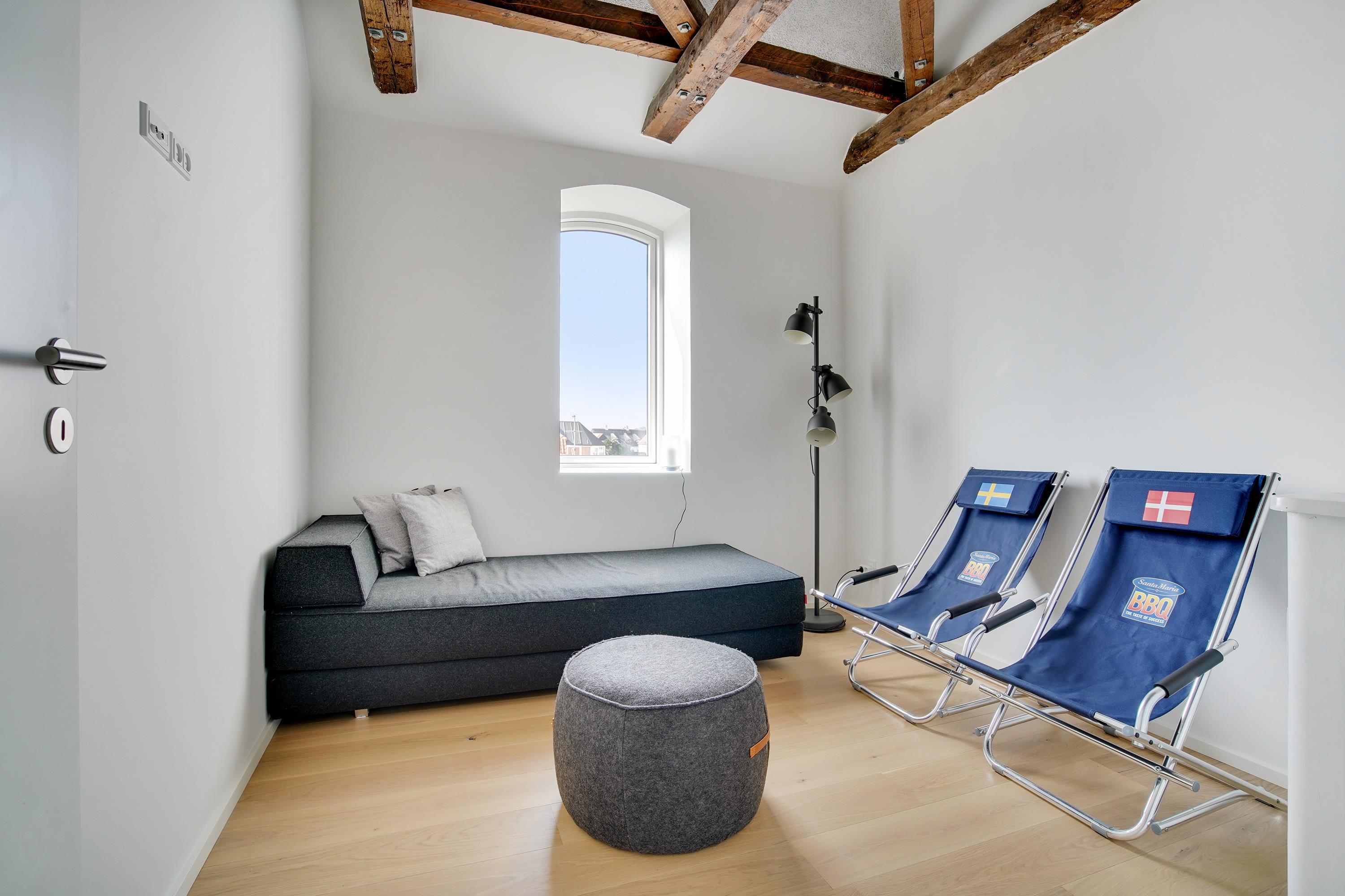 Ferielejligheden ligger midt i Løkken centrum, men her er dejlig roligt! Støjniveauet i lejligheden afslører ikke, at det pulserende byliv er netop udenfor døren. Tænk dig, at her før var diskotek - fest og farver, larm og ballade samt dæmpet belysning. Nu rummer bygningen lyse og luftige ferielejligheder, hvor man ikke fornemmer naboen på den anden side af væggen. Lyset skinner ind af de buede ruder, hvor man kan fornemme det gamle pakhus.