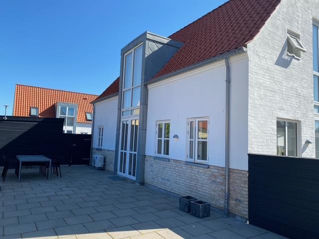 Lys og rummelig feriebolig i Løkken med stor terrasse, nær strand, byliv og alle bekvemmeligheder.