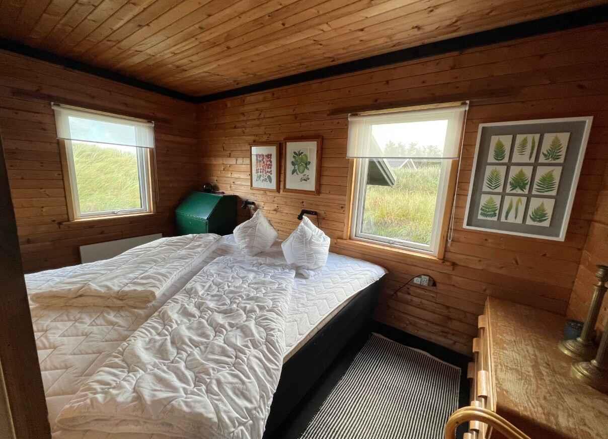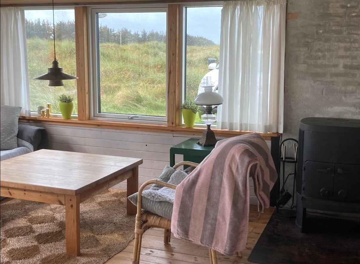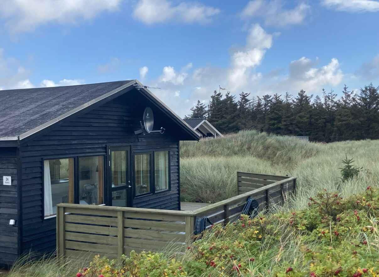 Huset ligger skønt placeret i et klitområde ved Løkken, og hvor end man ser ud ad vinduerne i huset, mødes øjet af den vilde klitbevoksning. Familiens hund(e) er også velkommen på ferie her. Huset har en hyggelig stue med brændeovn i åben forbindelse med køkkenet og med lys fra flere sider. Her er en dejlig spiseplads med en skøn udsigt over området. Gratis internet, parabol med tyske TV-kanaler og Chromecast TV. Huset har er et stort soveværelse med en dobbeltseng og et soveværelse med en dobbelt udtræksseng med to sovepladser og en sovesofa til en person i stuen. Badeværelse med toilet og brusebad. Huset ligger på en meget stor grund har en dejlig, afskærmet og ugeneret terrasse, hvor I kan sidde i fred og ro. Der er P-plads til bilen. Der er meget at opleve i Løkken. Ikke mindst den lange, brede, hvide sandstrand, der er en legeplads for børn i alle aldre, og de karakteristiske strandhuse, der er byens umiskendelige vartegn. Løkken er et yndet feriested for mange og har mange gode spisesteder. Kort sagt en charmerende kyst- og badeby. Der er også spændende attraktioner i området: Fårup Sommerland, Rubjerg Knude, Nordsøen Oceanarium, Børglum Kloster og Løkken Miniby for nu at nævne nogle eksempler.