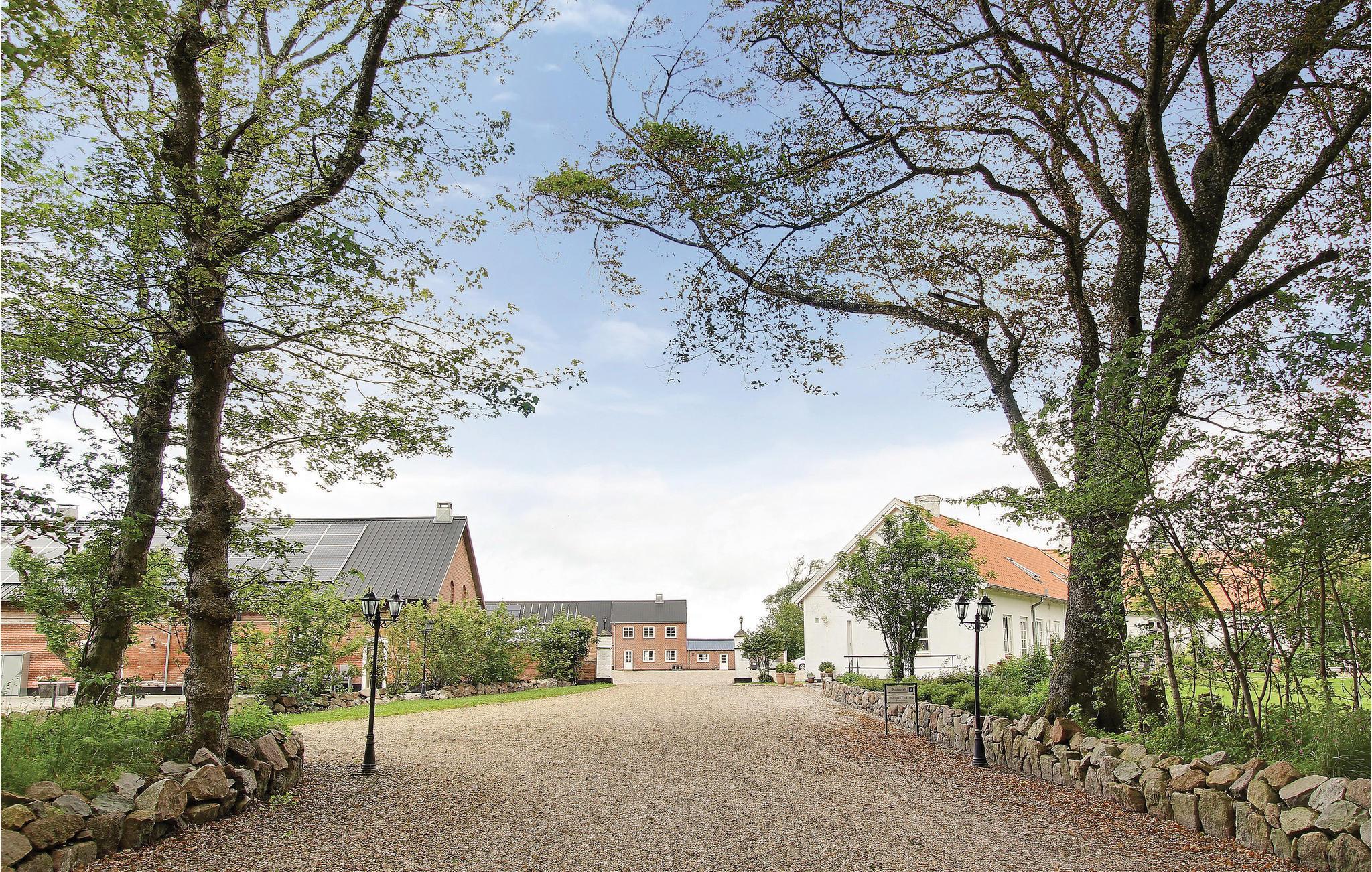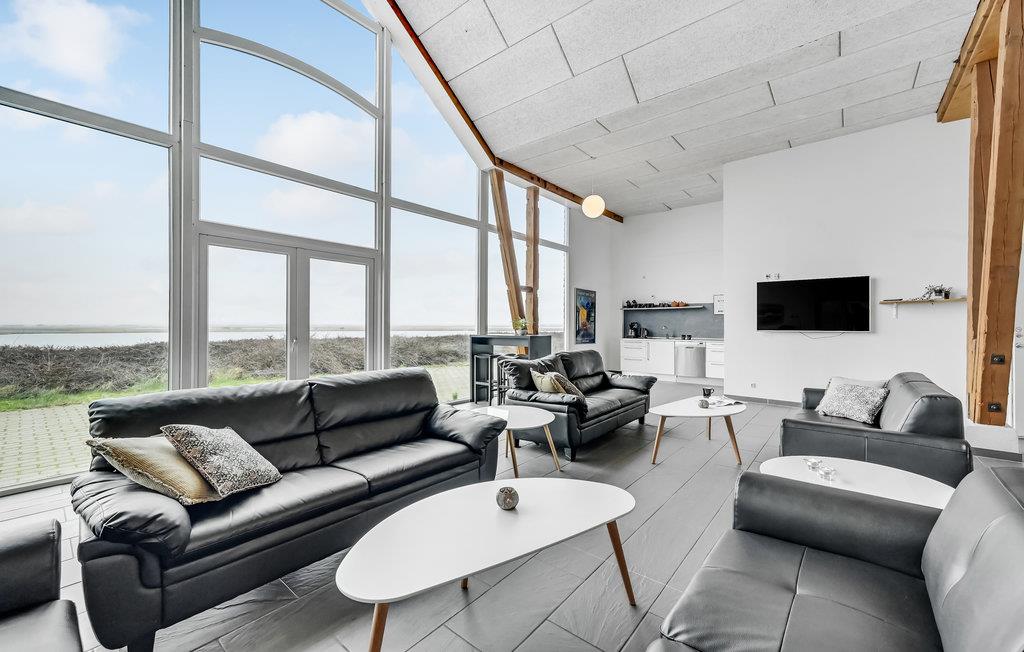 Moderniseringen af de historiske bygninger er udført så perfekt, at der fra samtlige 15 soveværelser med dobbeltsenge - alle med de originale loftshvælvinger - er egen privat udgang til den enorme terrasse, hvorfra der er den mest bjergtagende udsigt til Skjern Å dalen med rådyr lige uden for døren og fiskehejren, der spankulerer rundt i vandkanten. Også den sjældne havørn viser sig her. Fællesskabet kan dyrkes i den ca. 100 m2 store hyggelige opholdsstue, hvor et glasparti fra gulv til loft åbner for en vidunderlig panoramaudsigt over det vidunderlige naturlandskab.