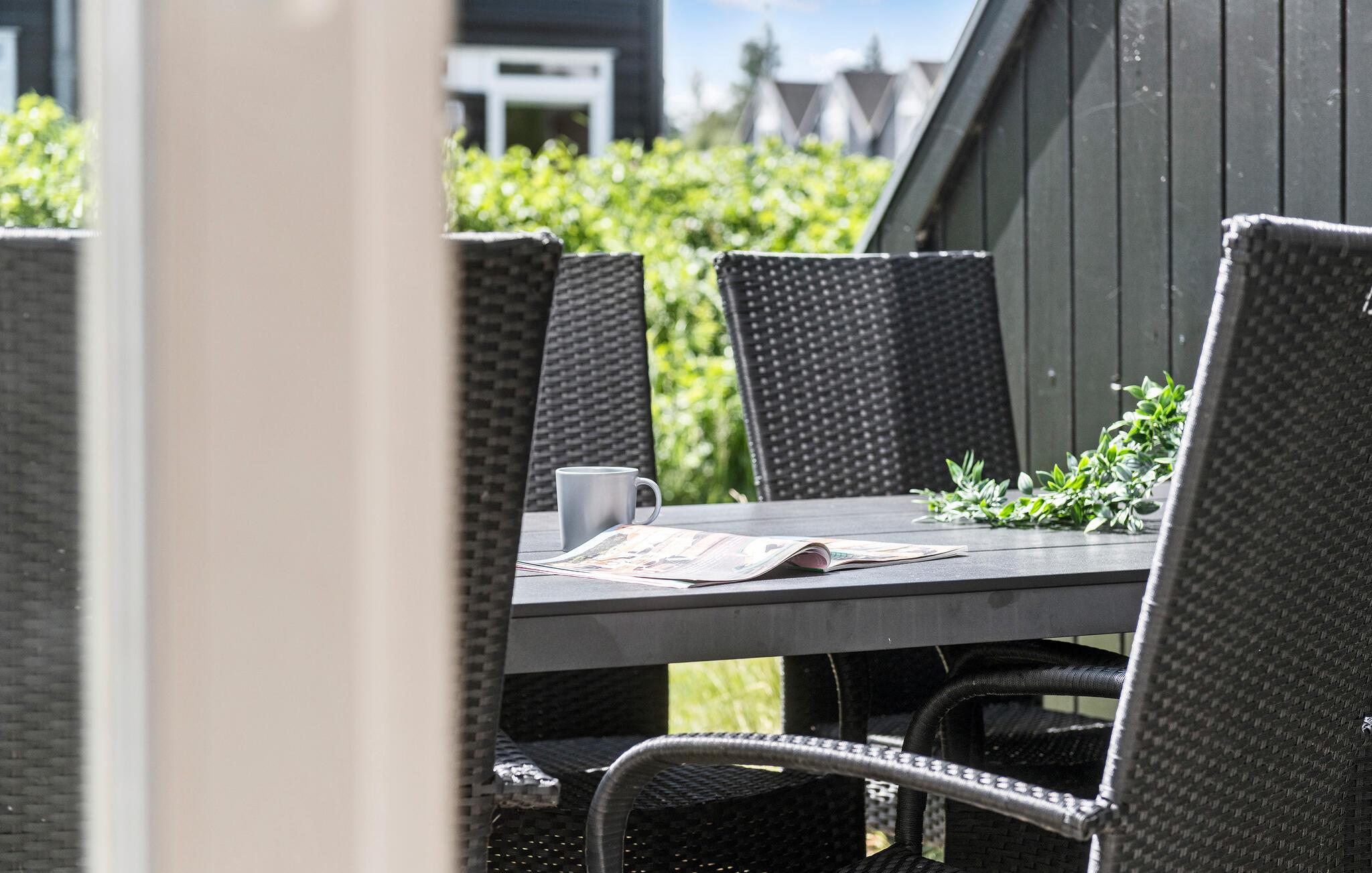 Køkkenet i stueetagen er funktionelt og moderne med alt, hvad I skal bruge til madlavningen. Den tilstødende spiseplads giver jer en god ramme til fælles måltider og hyggelige aftener med familie eller venner. Noget af det bedste ved feriehuset er den store terrasse. Her kan I sætte jer med morgenkaffen og nyde solen på de varme dage.