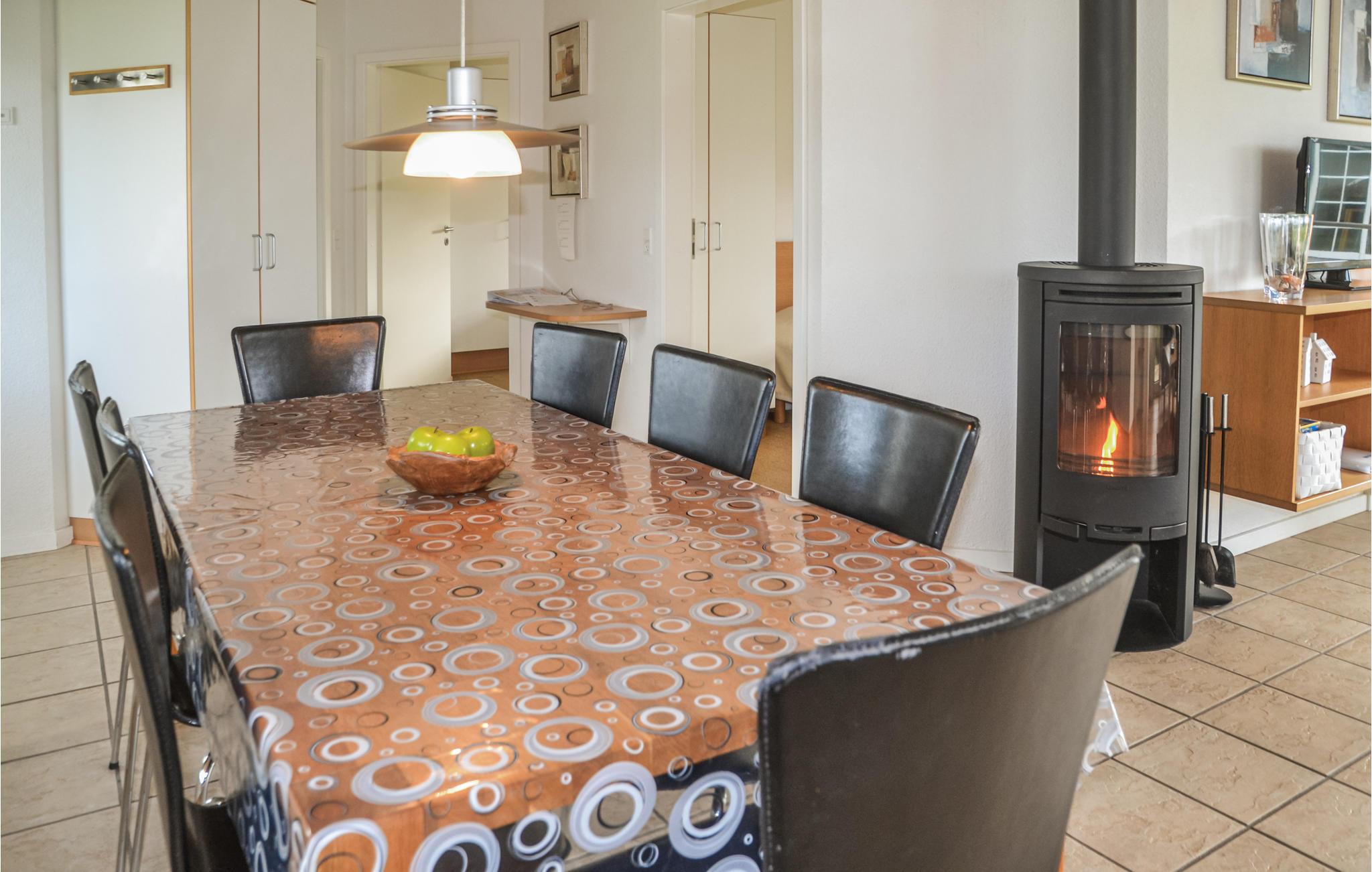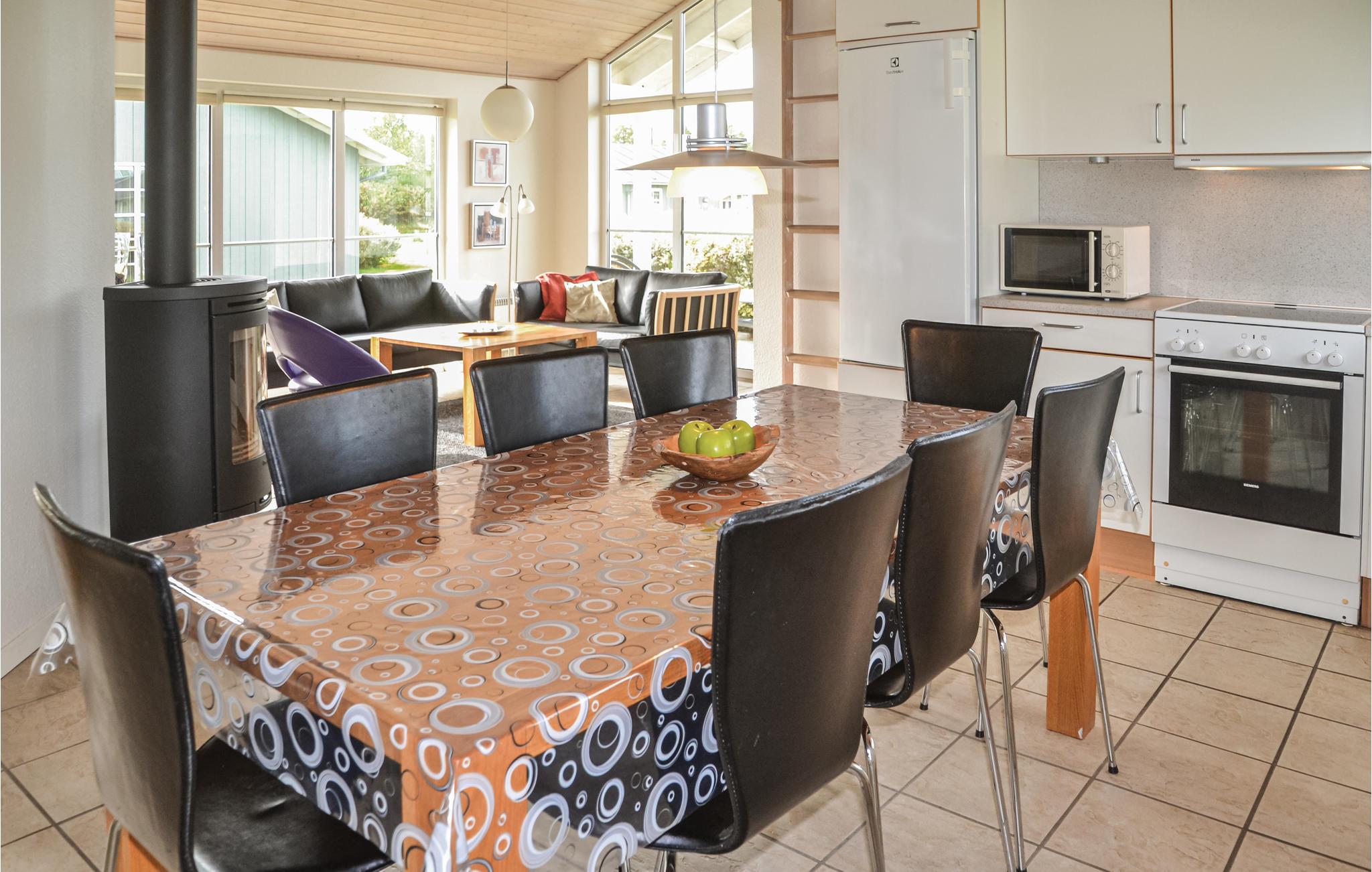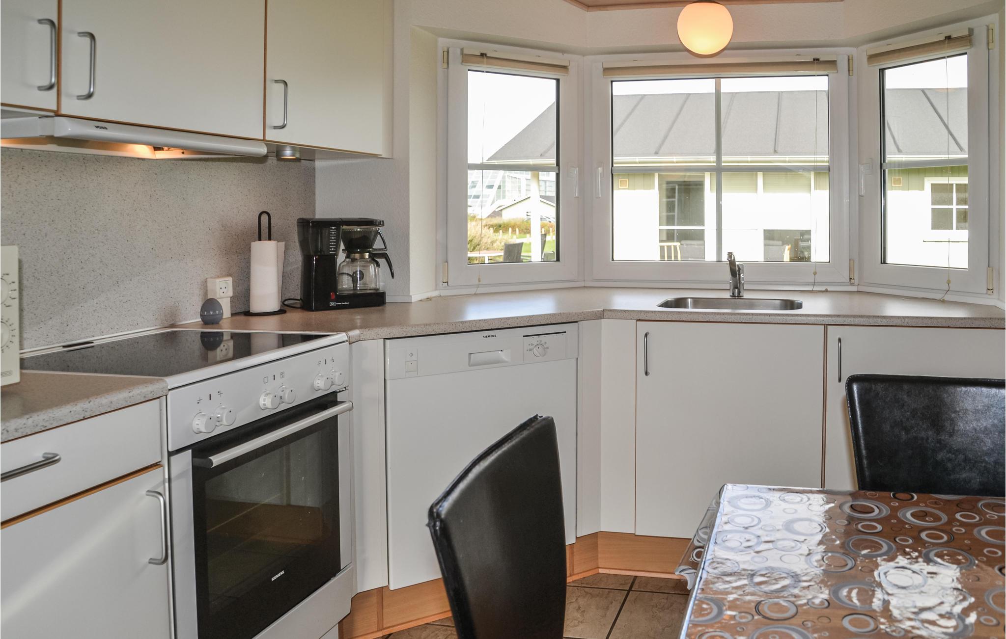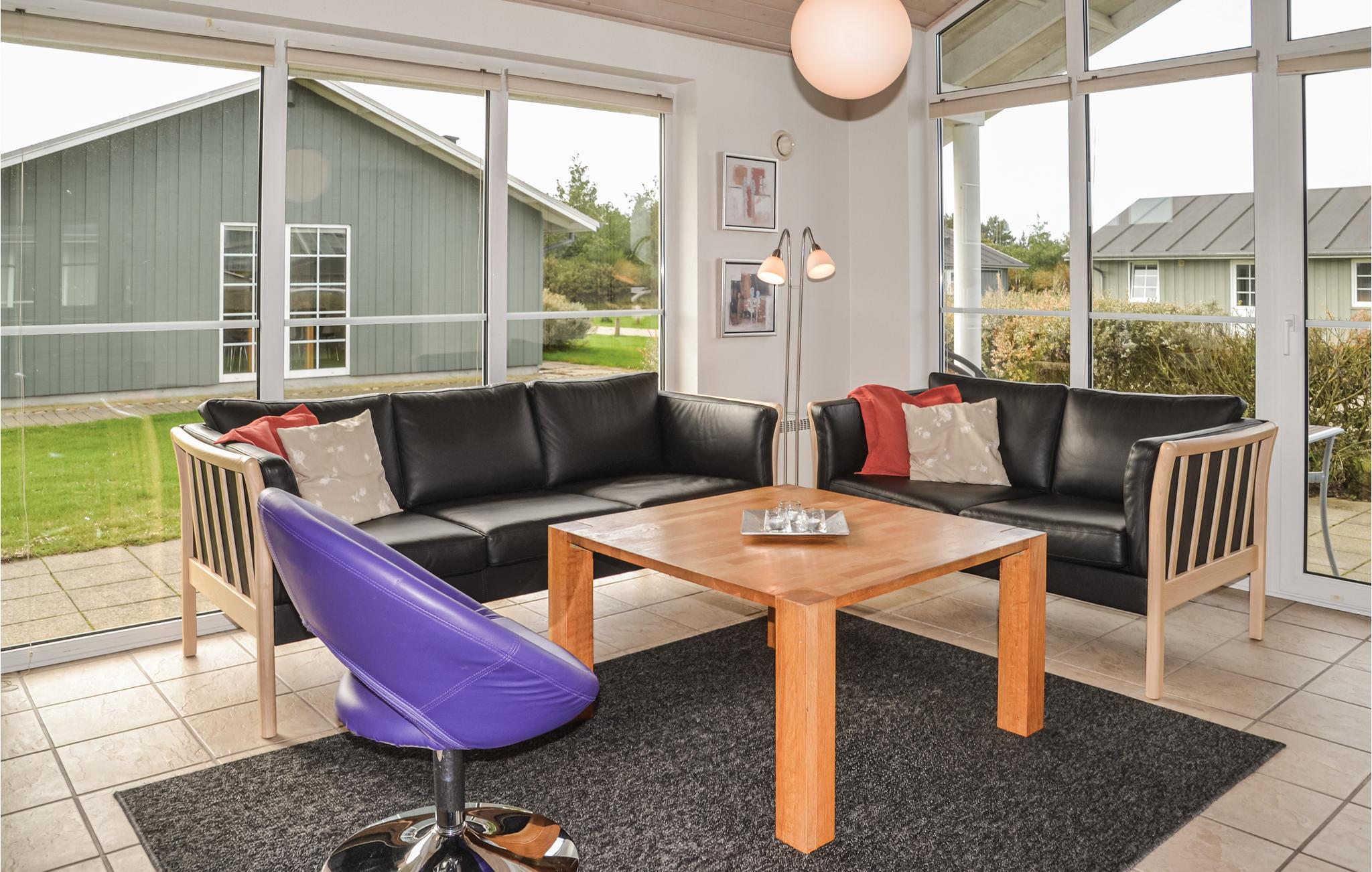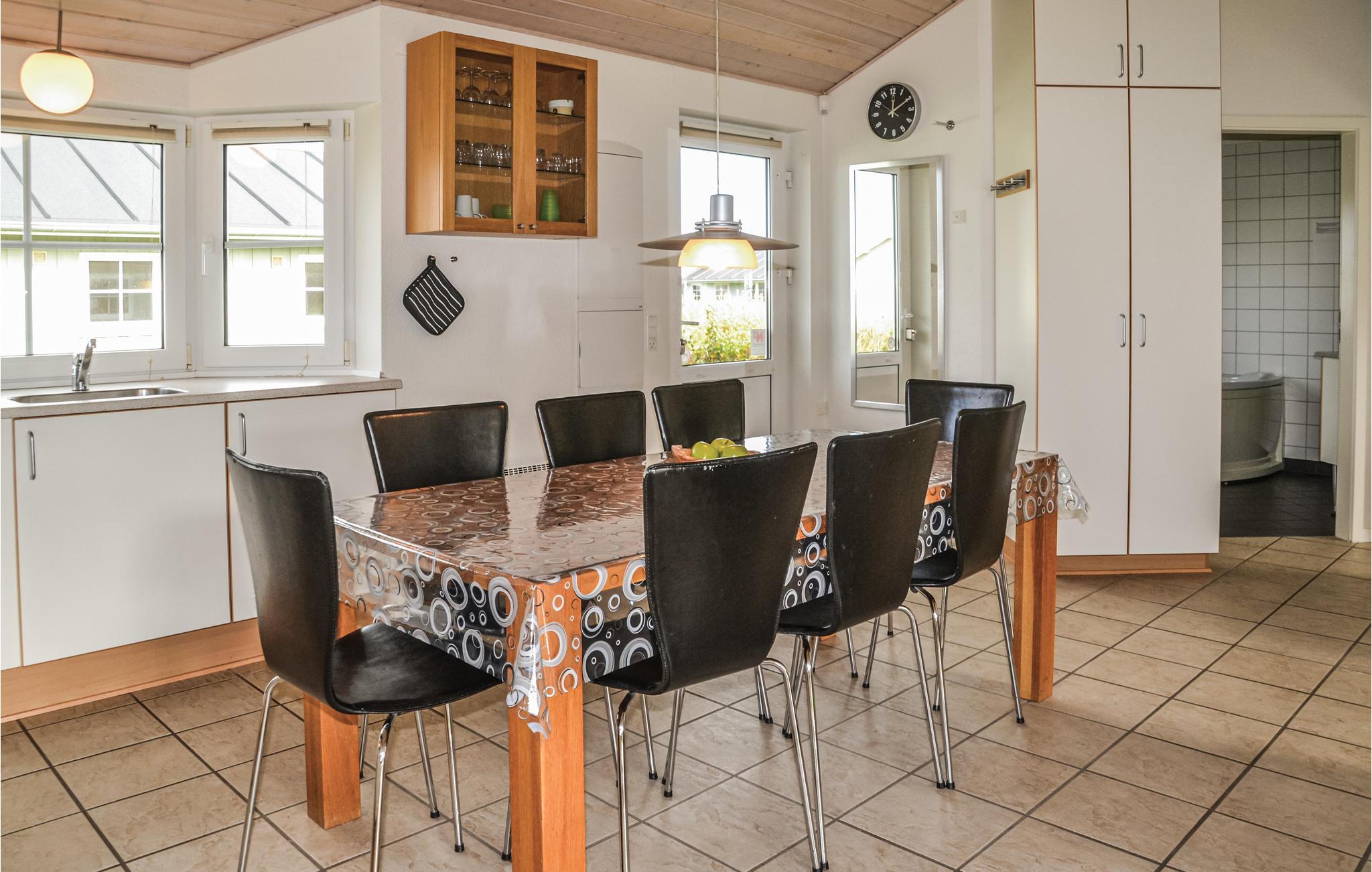 Huset har et dejligt og rummeligt køkken/alrum med brændeovn og udgang til en delvis overdækket terrasse. I det flotte badeværelse er der spabad, hvor I kan slappe af efter en frisk gåtur langs havet. I området er der flere gode aktivitetsmuligheder, bl.a. mountainbikeruter, vandrestier og det fascinerende Vesterhav ligger under 15 minutters kørsel væk.