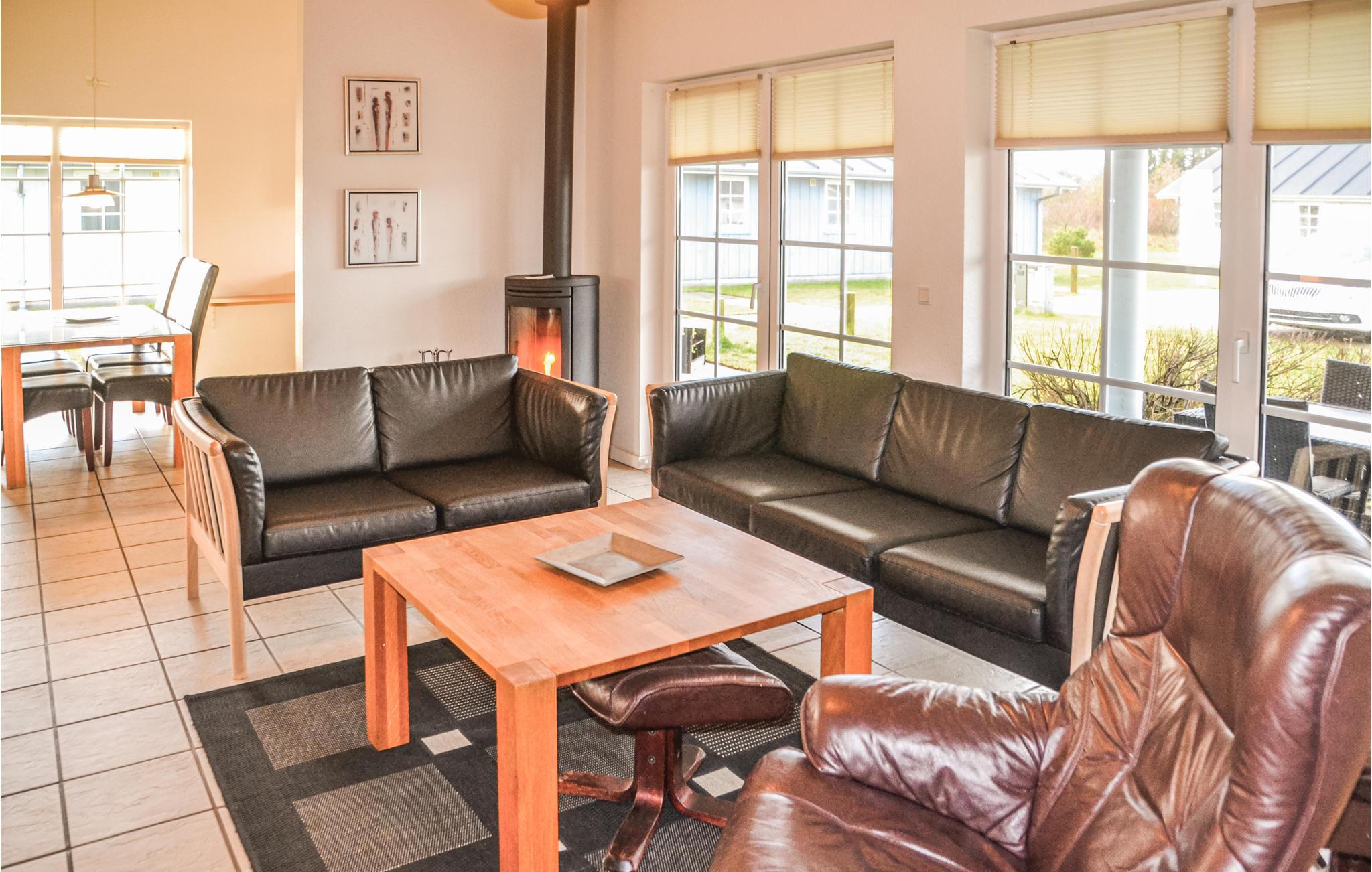 Huset har et dejligt og rummeligt køkken/alrum med brændeovn og udgang til en delvis overdækket terrasse. I det flotte badeværelse er der spabad, hvor I kan slappe af efter en frisk gåtur langs havet. I området er der flere gode aktivitetsmuligheder, bl.a. mountainbikeruter, vandrestier og det fascinerende Vesterhav ligger under 15 minutters kørsel væk.