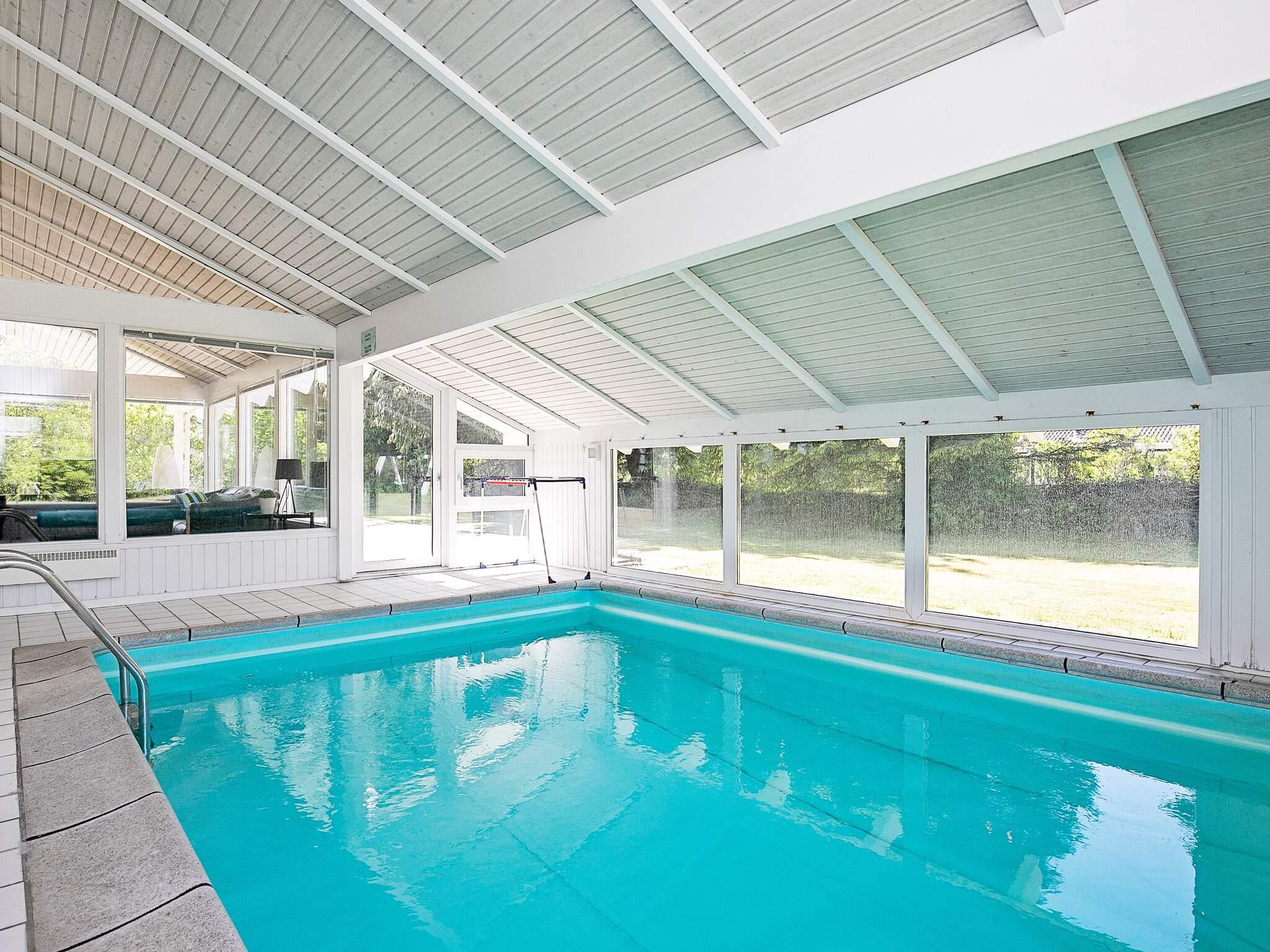 Stort og rummeligt sommerhus med swimmingpool, spabad og sauna og masser af plads. Huset er opført i 1989, renoveret i 2005 og løbende vedligeholdt.