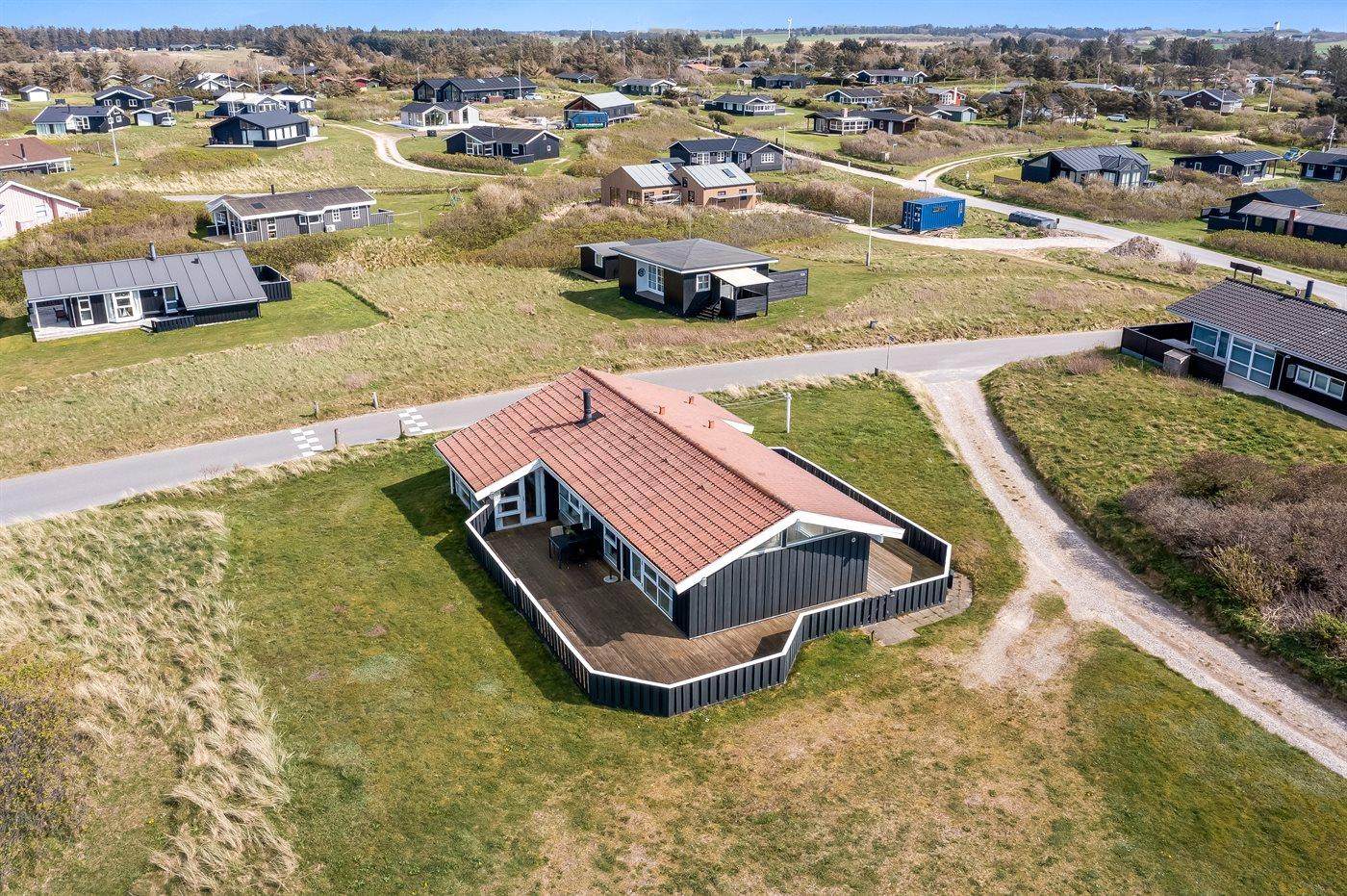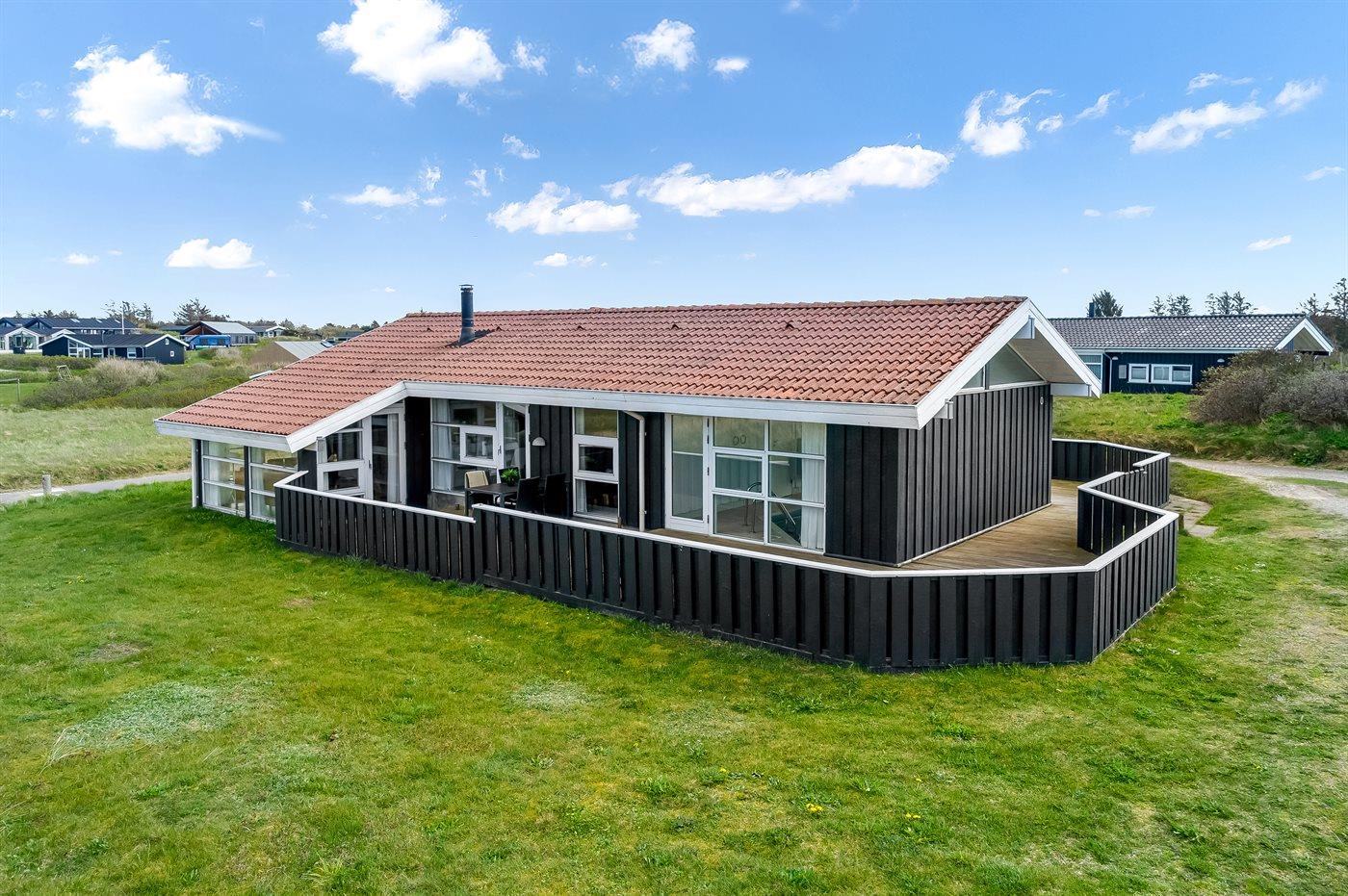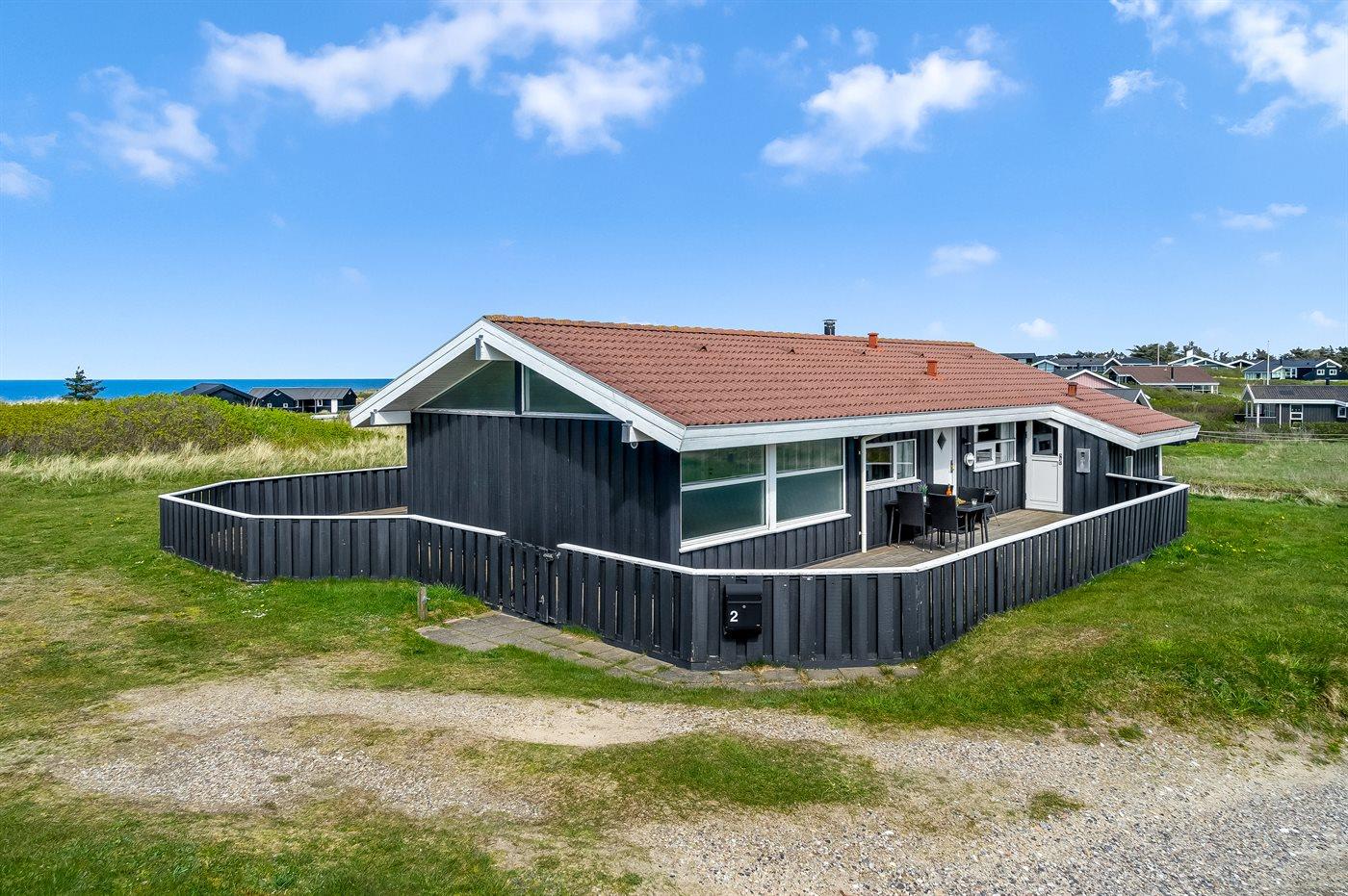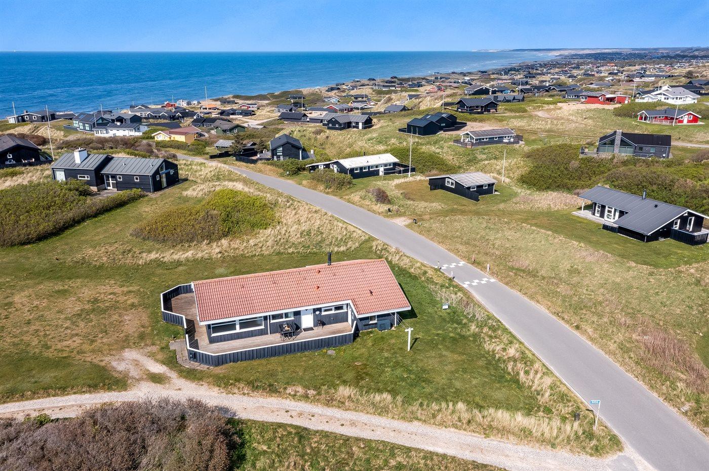 Dette sommerhus er beliggende i det idylliske Lønstrup tæt ved Vesterhavet. Der er udsigt over havet fra både grunden og huset.