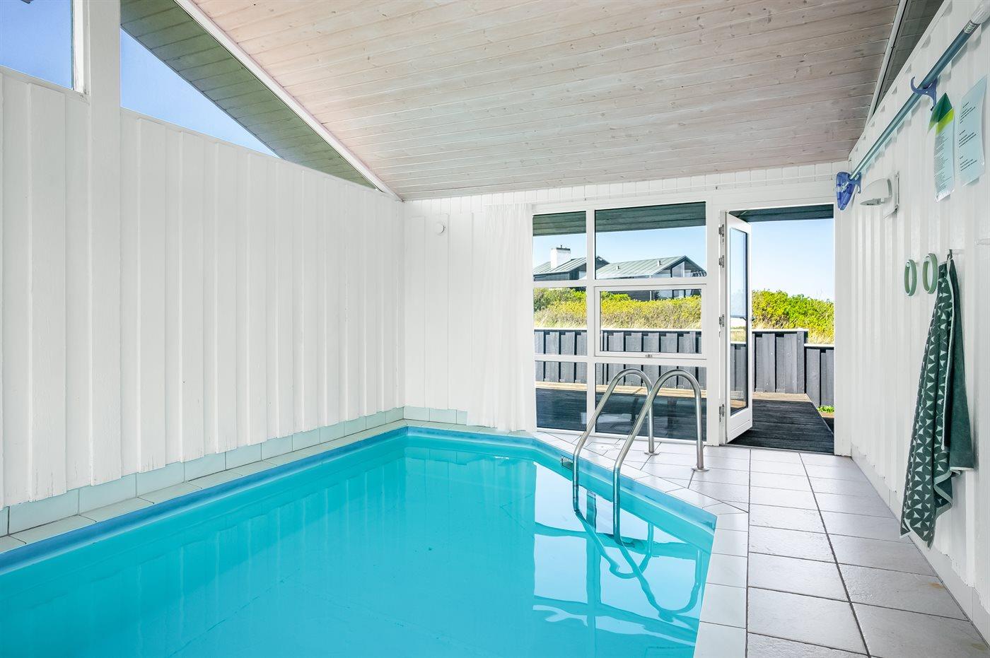 I den indendørs swimmingpool er der mulighed for leg og hyggeligt samvær. Swimmingpoolen måler op til 3 m i bredden, 5,5 m i længden og den er op til 1,4 m dyb. Vandet er mellem 24 og 28° C varmt.