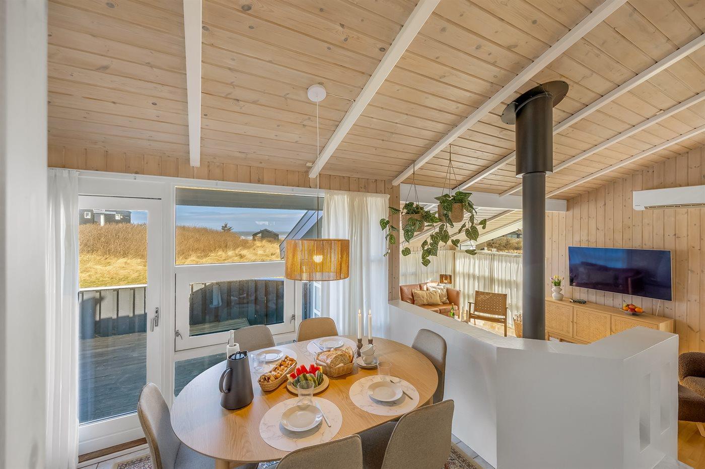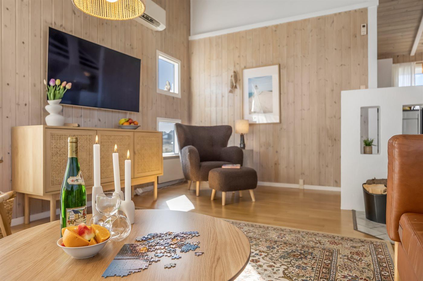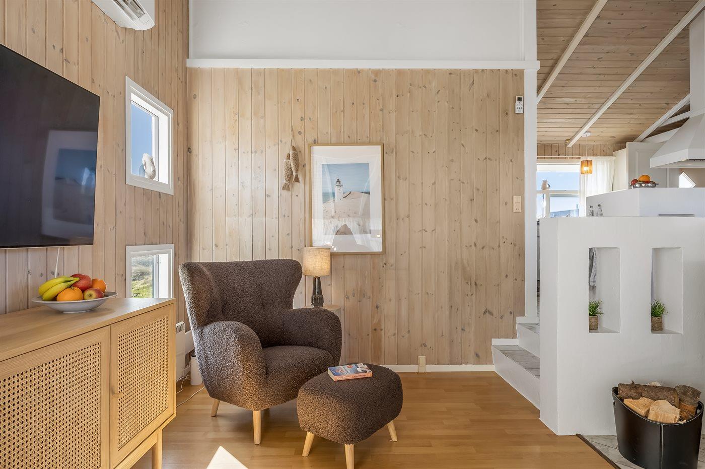 Hyggeligt sommerhus i Lønstrup med havudsigt, indendørs pool og sauna nær Vesterhavet.