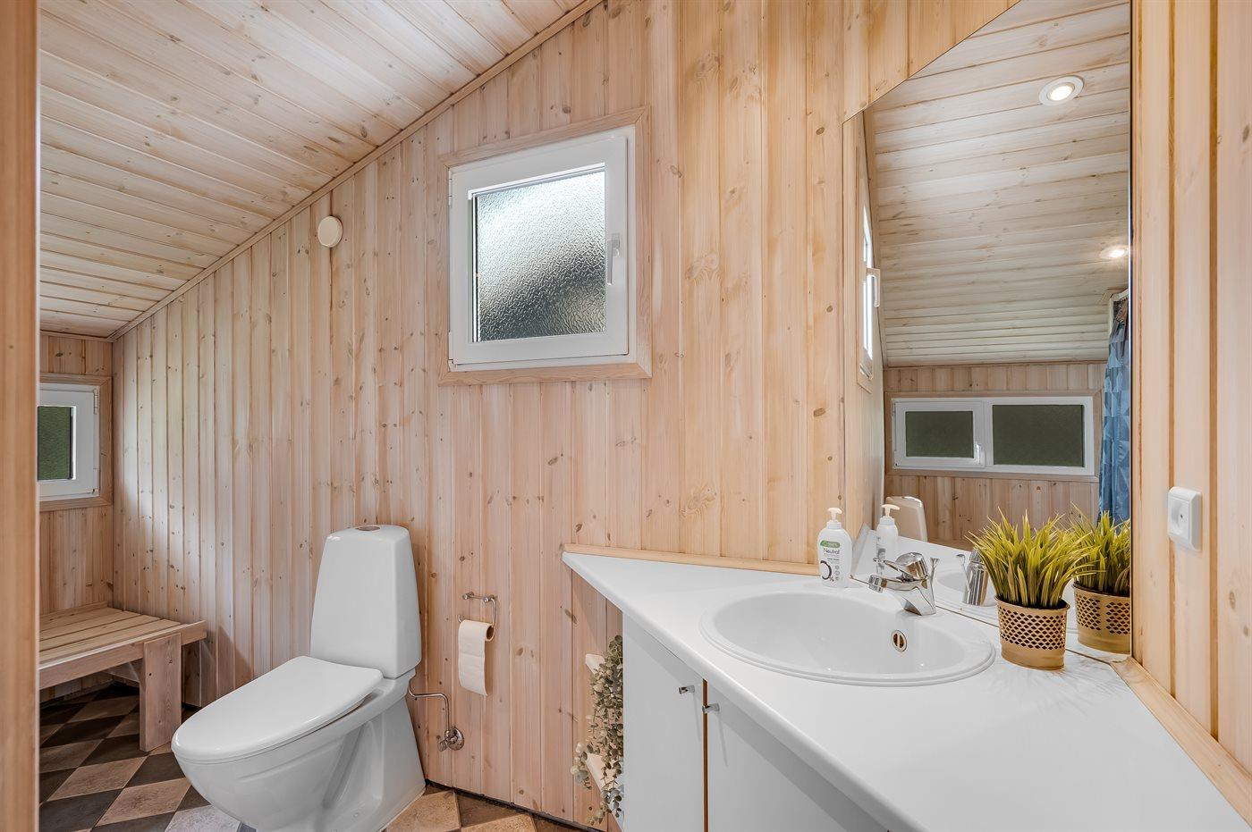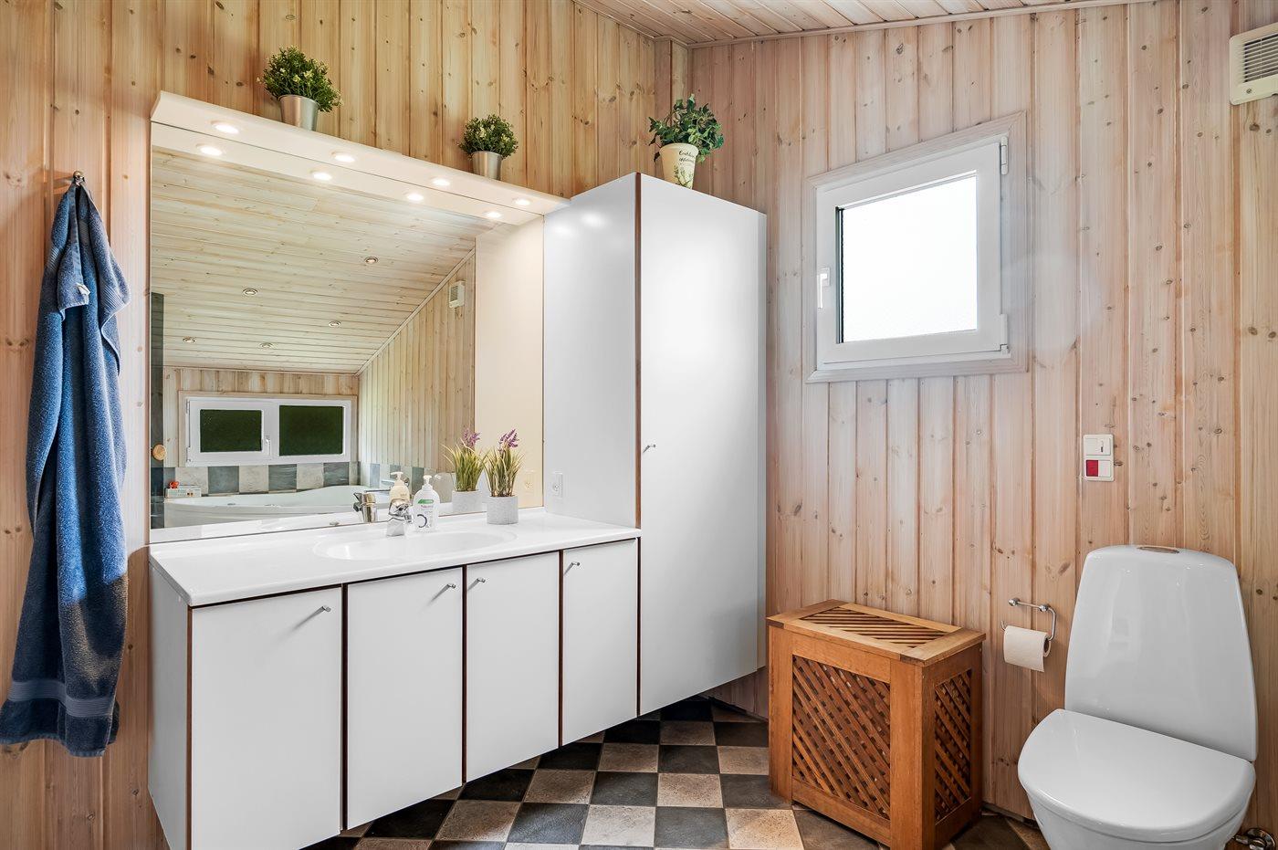Huset er opført i 1998 i kvalitetsmaterialer og der er lagt vægt på et lyst og allergivenligt indeklima. Vægge og lofter er beklædt med lyst, ludbehandlet træ. Klinkegulve med gulvvarme, dog lyse, ludbehandlede trægulve i soveværelserne. Huset indeholder 2 store hemse samt 3 soveværelser - alle med dobbeltseng. Der forefindes 2 flotte badeværelser med bruseniche, hvoraf det største endvidere er udstyret med 2-pers. spa, 5-pers. og sauna. Bryggers med bl.a. vaskemaskine, tørretumbler og buksepresse. Det pragtfulde køkken er kombineret med opholdsstuen og udstyret med fryser, mikrobølgeovn, opvaskemaskine og muret, vandskuret kogeø med keramiske kogeplader. I den hyggelige og smagfuldt indrettede opholdsstue findes brændeovn, hjemmebiograf i form af 40" fladskærms-TV I HD med TV-pakke fra Waoo, CD-/DVD-afspiller, surroundsound-system inkl. 5 højtalere og subwoofer. Der kan afspilles film i Blu-ray format og egne film eller musik kan medbringes på Iphone og afspilles over anlægget.