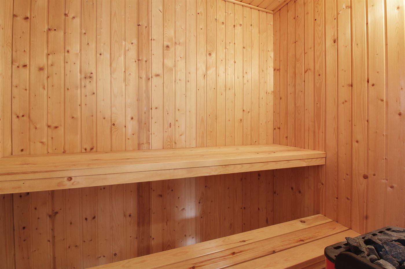 Der er 1 badeværelse med bruseniche og 1 toilet.. Der er gulvvarme på 1 badeværelse. I saunaen er der mulighed for afslapning.