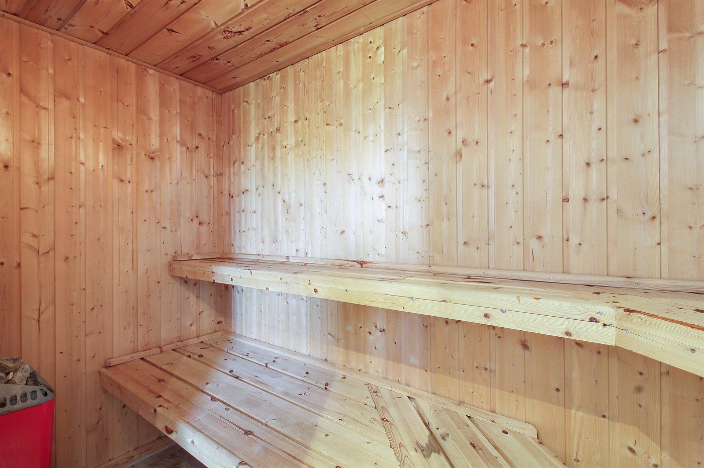Der er 2 badeværelser med bruseniche og 2 toiletter. Der er gulvvarme på 2 badeværelser. I saunaen er der mulighed for afslapning.