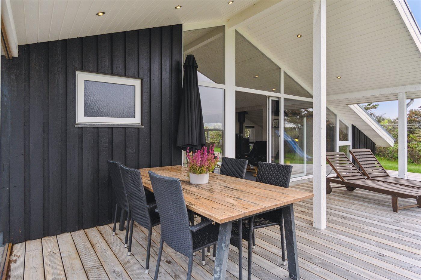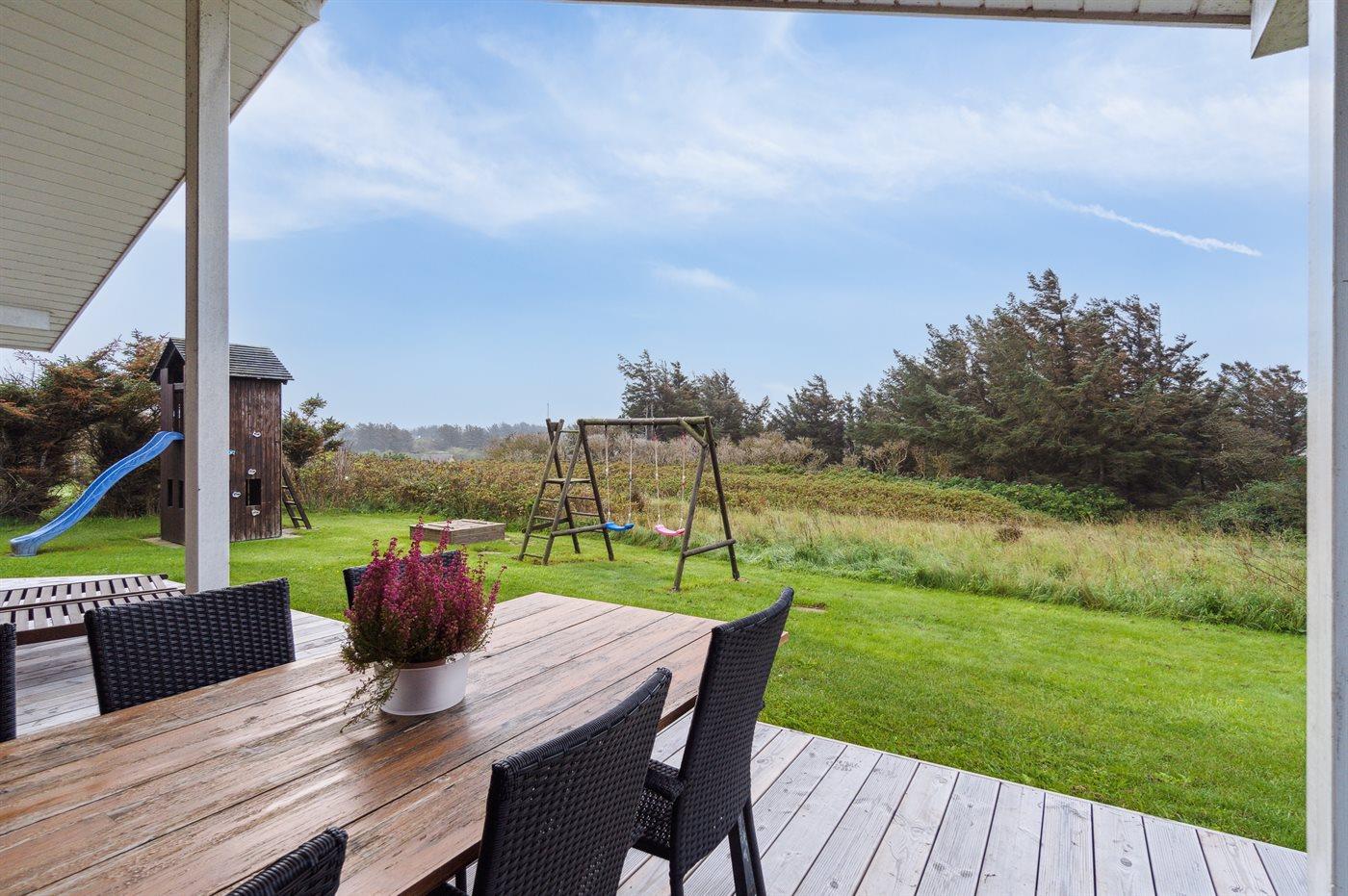 Ferieboligen er beliggende på en 1057 m² stor naturgrund. Der er 403 m til havet. Nærmeste forretning er beliggende i en afstand af 300 m. Til ferieboligen hører 85 m² terrasseareal. Der er redskabsrum. Gynge. Sandkasse. Rutchebane. Der er installeret stik til opladning af elbil. Parkering ved ferieboligen.