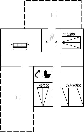 Der er i alt 3 soveværelser. Sovepladserne fordeler sig på: 4 sovepladser i dobbeltsenge. 2 sovepladser i enkeltsenge. Derudover er der 1 stk. barneseng.