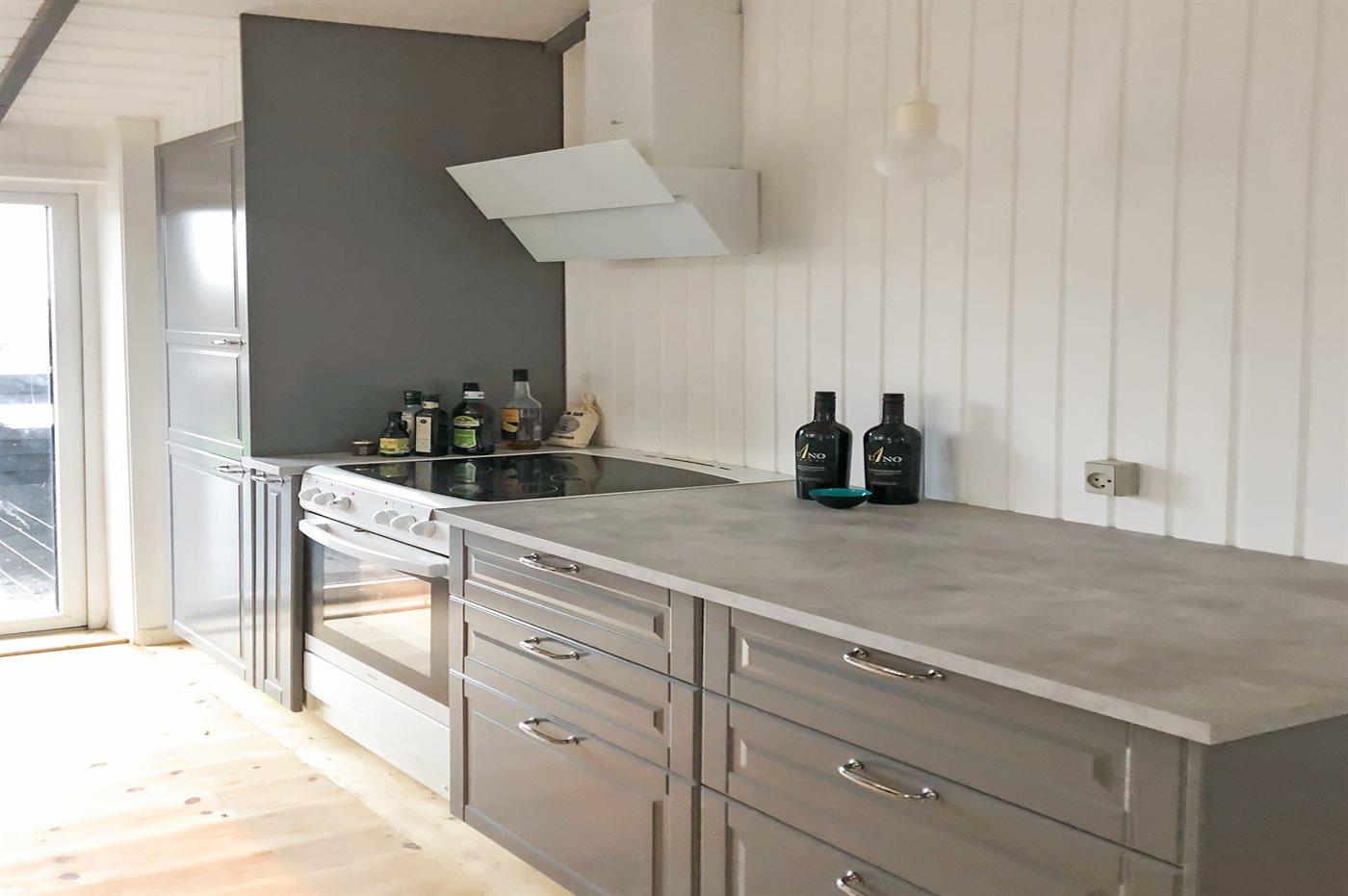 Køkkenet er udstyret med 1 køleskab. Der er 4 keramiske kogeplader, varmluftovn, mikrobølgeovn samt opvaskemaskine.