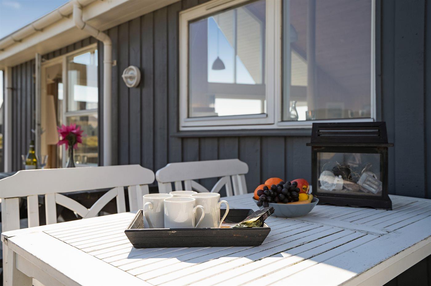 Hyggeligt træsommerhus i Lønstrup med havudsigt, spa, sauna og stor terrasse nær stranden.