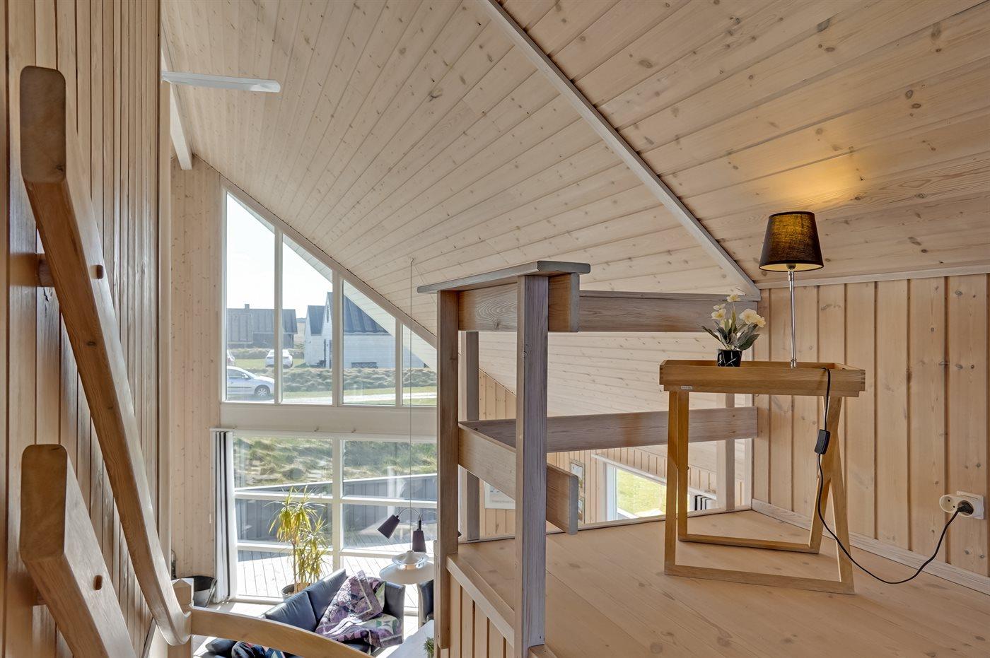 Pragtfuldt 2-plans sommerhus i træ, bygget i 2004, beliggende på en klitgrund kun 150 m fra havet og tæt ved Lønstrup. Fra hus og grund er der særdeles flot havudsigt. Stort åbent og overdækket terrasseareal med havemøbler. Opvarmet klinkegulv i stueetagen, trægulv på værelserne og 1. sal. Lyse, ludbehandlede vægge og lofter. 2 badeværelser med gulvvarme og bruseniche; det ene med 2-pers. spa og direkte adgang til sauna. Skønt, veludstyret køkken med bl.a. opvaskemaskine, mikrobølgeovn, fryser, varmluftovn og komfur med keramiske kogeplader. Flot møbleret stue med brændeovn, TV med fællesantenne, video og DVD-afspiller samt stereoanlæg med CD-afspiller. Ekstra TV på 1. sal. 4 gode soverum; 2 med dobbeltseng og 2 med 2 enkeltsenge. Desuden gratis, trådløs internetforbindelse (computer skal medbringes), vaskemaskine og tørretumbler til rådighed. Til børnene er der barneseng, barnestol og gynge. Carport på grunden.