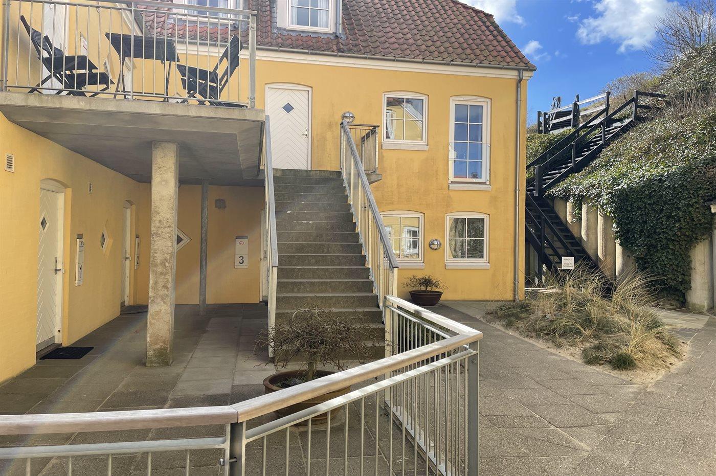 Midt i Lønstrup by ligger Klitgården, som er et lejlighedskompleks med 12 lejligheder. Fra denne 2-etages ferielejlighed på 1. sal er der udsigt over hovedgaden og byen i øvrigt. Der er en lille fælles solgård med havemøbler. Endvidere fælles parkeringsplads. Bemærk, at 1 af sovepladserne befinder sig på en repos.
