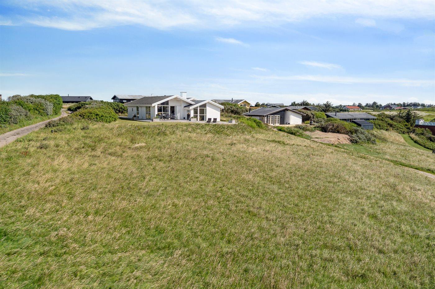 Ferieboligen er beliggende på en 1800 m² stor naturgrund. Der er 281 m til havet. Nærmeste forretning er beliggende i en afstand af 500 m. Til ferieboligen hører 40 m² terrasseareal. Desuden er der 20 m² overdækket terrasse. Der er redskabsrum. Parkering ved ferieboligen.