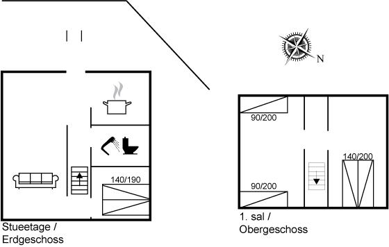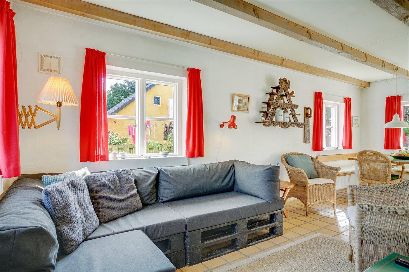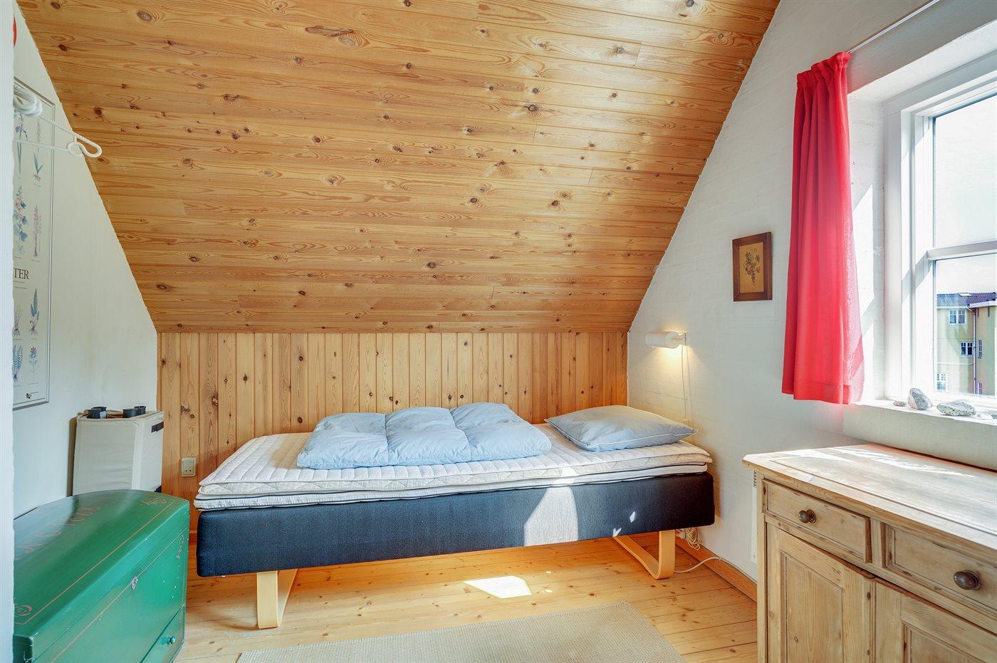 Der er i alt 3 soveværelser. Sovepladserne fordeler sig på: 4 sovepladser i dobbeltsenge. 2 sovepladser i enkeltsenge. Derudover er der 1 stk. barneseng.