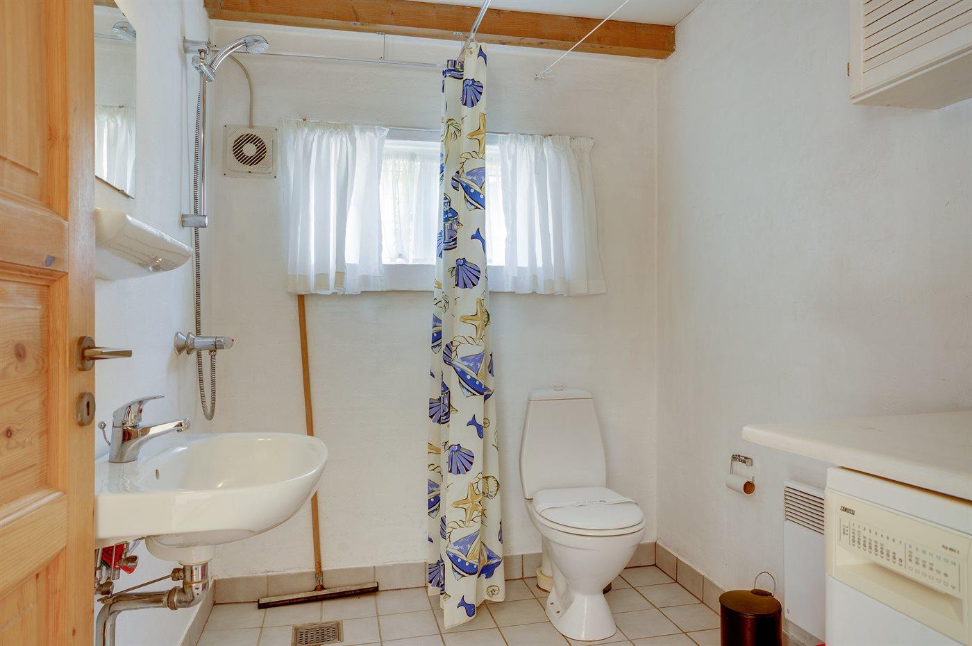 Der er 1 badeværelse med bruser og 1 toilet.