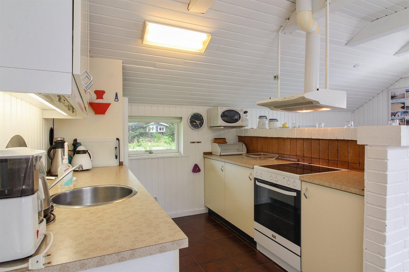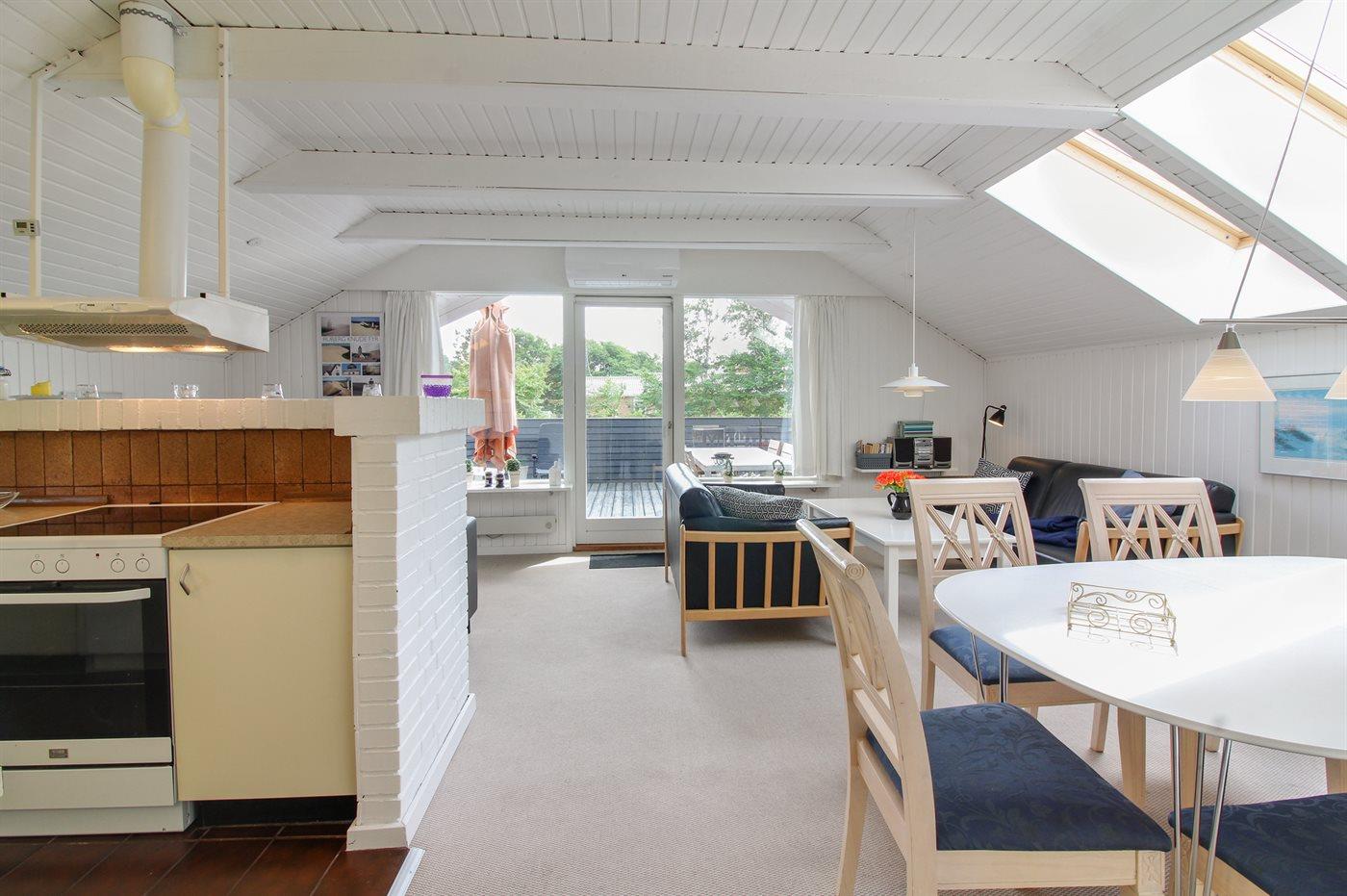 Køkkenet er udstyret med 1 køleskab. Der er 4 induktionskogeplader, varmluftovn, mikrobølgeovn samt opvaskemaskine.